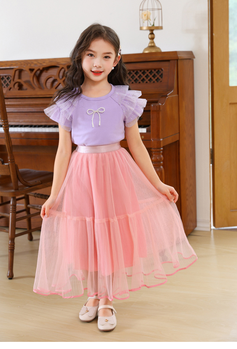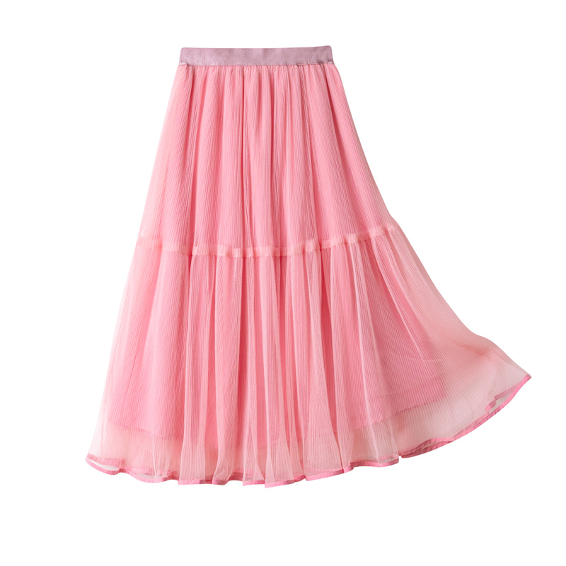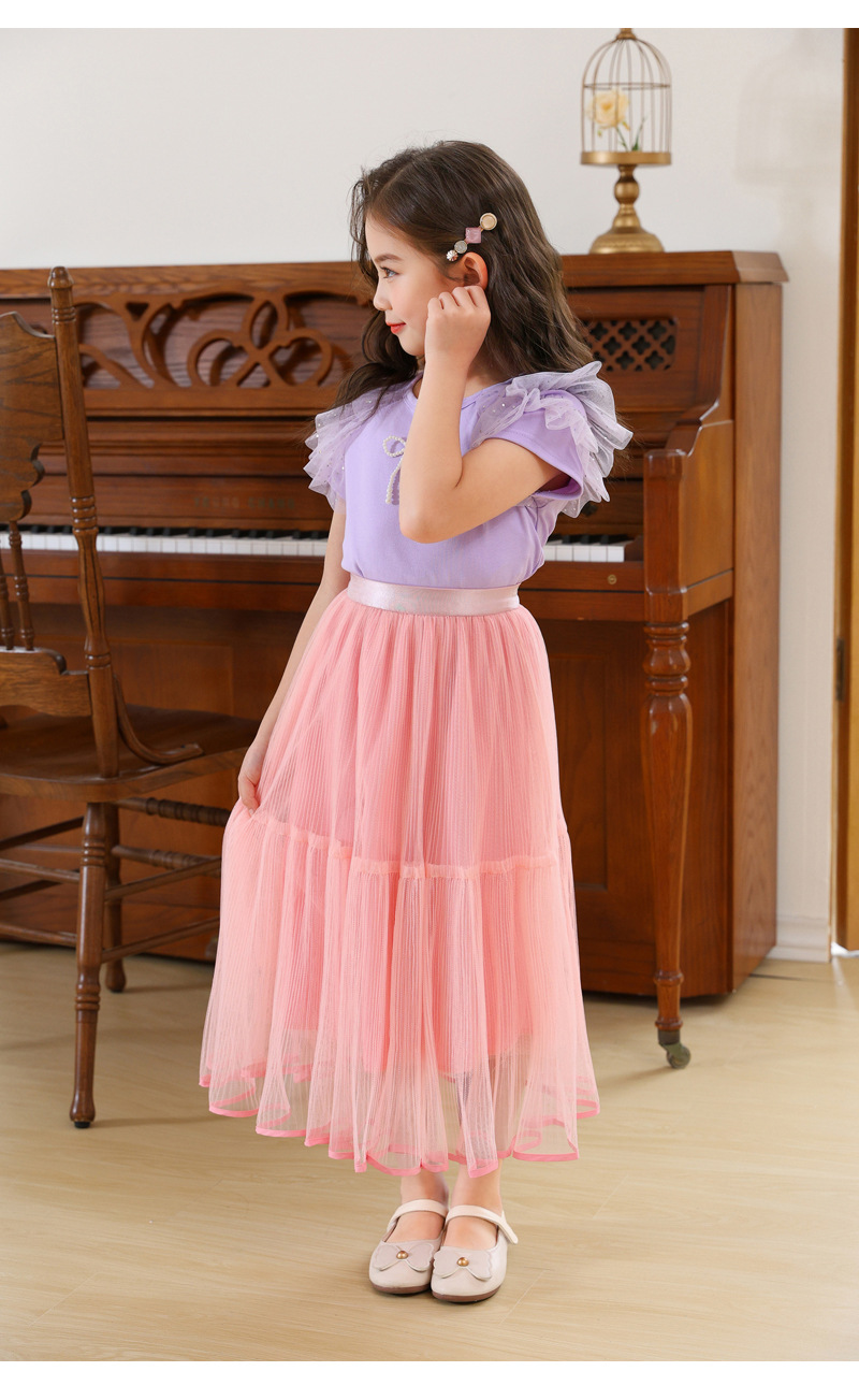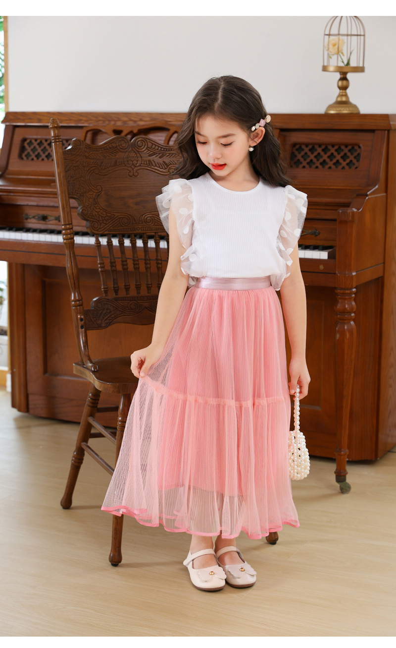여아 스커트 2023 새로운 한국 스타일 봄과 가을 공주 스커트 큰 어린이 메쉬 모든 매치 달콤한 롱 스커트 큰 스커트