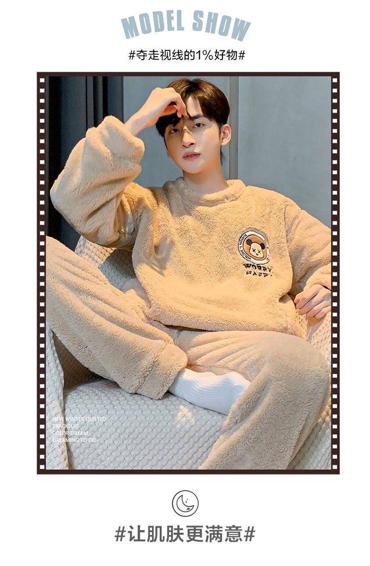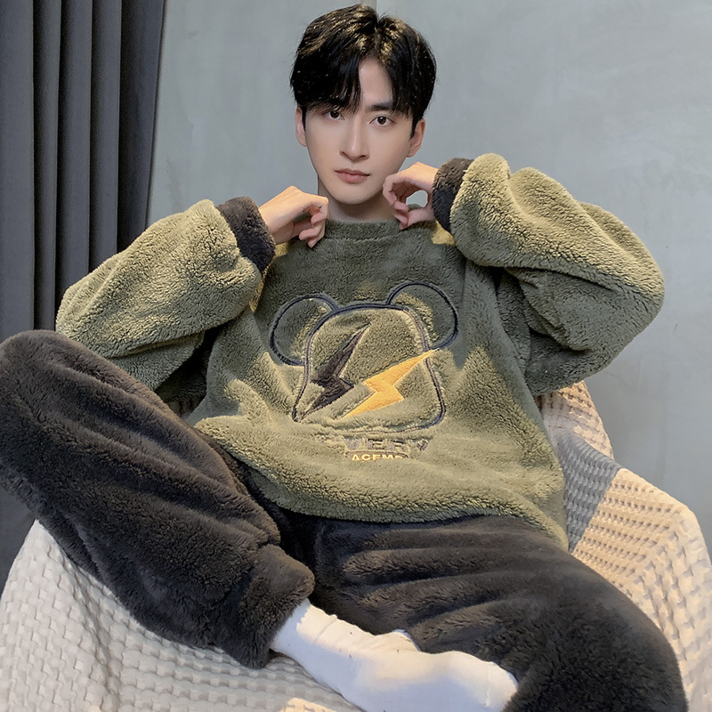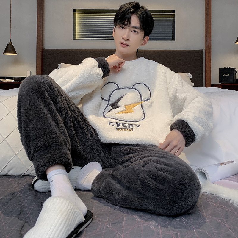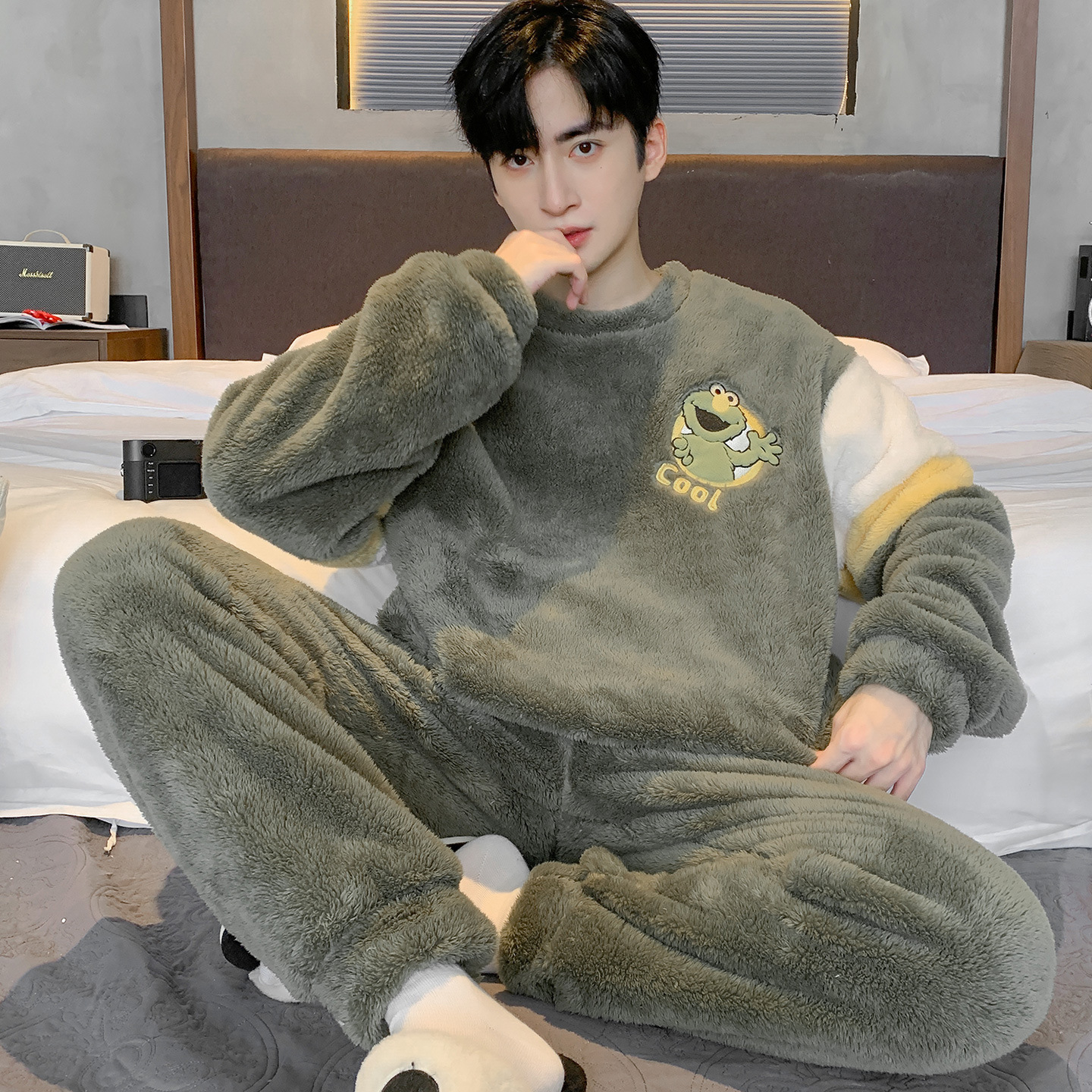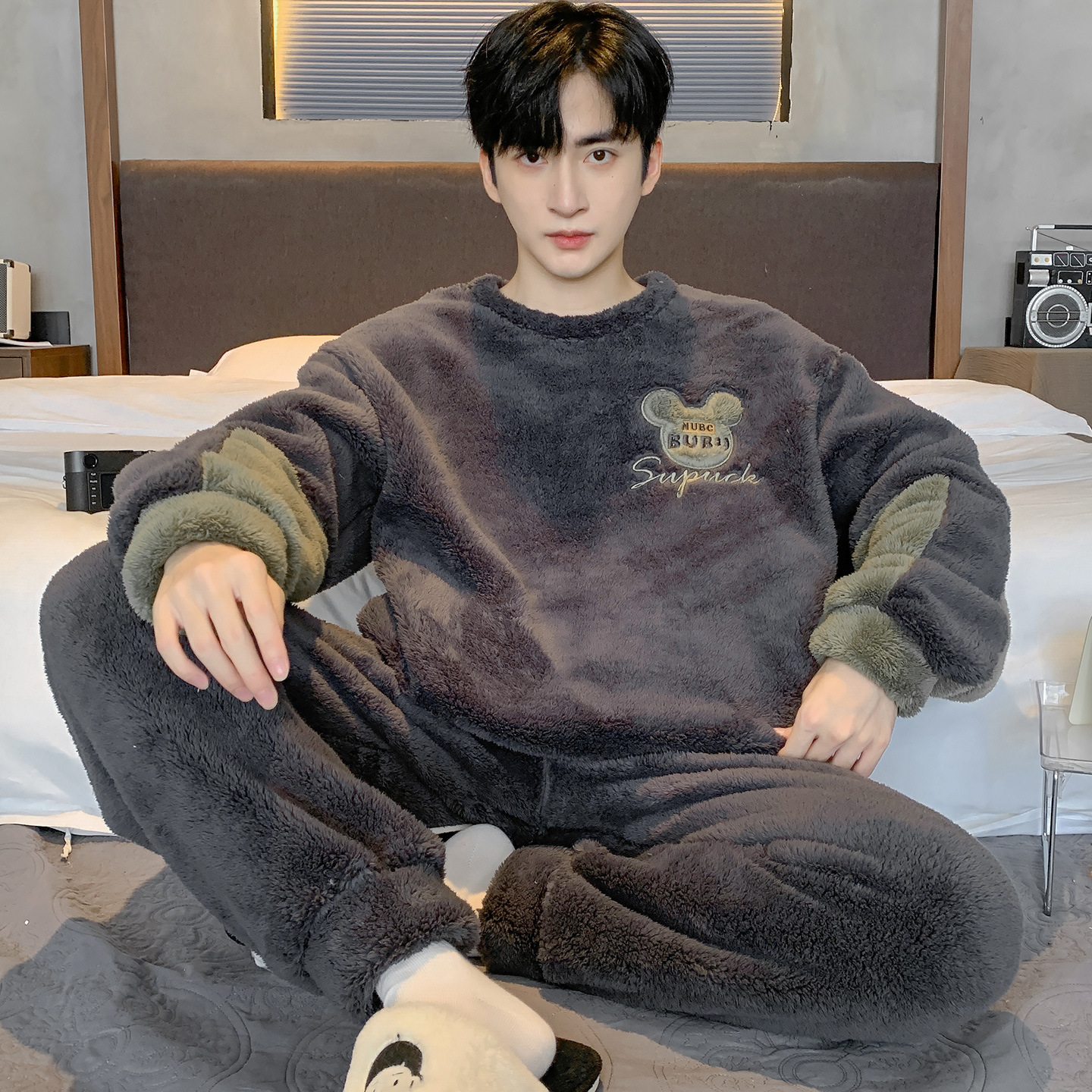 산호 양털 잠옷 남자 가을과 겨울 두꺼워 2024 새로운 플란넬 겨울 청소년 홈 의류 겨울스토어 가기