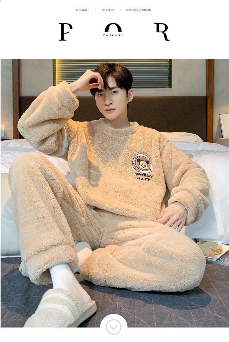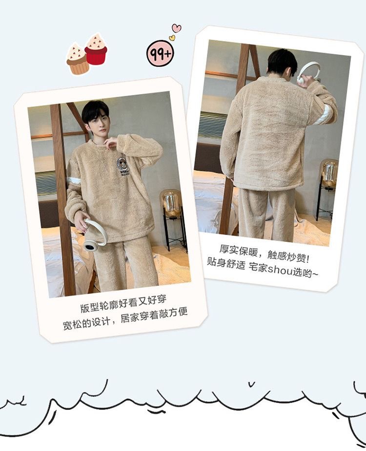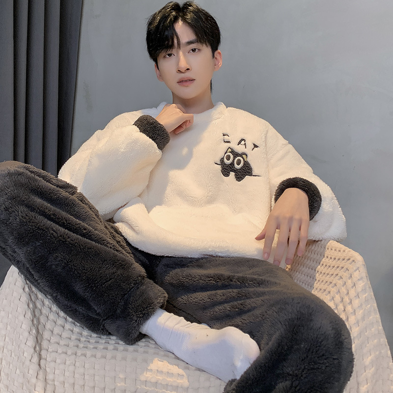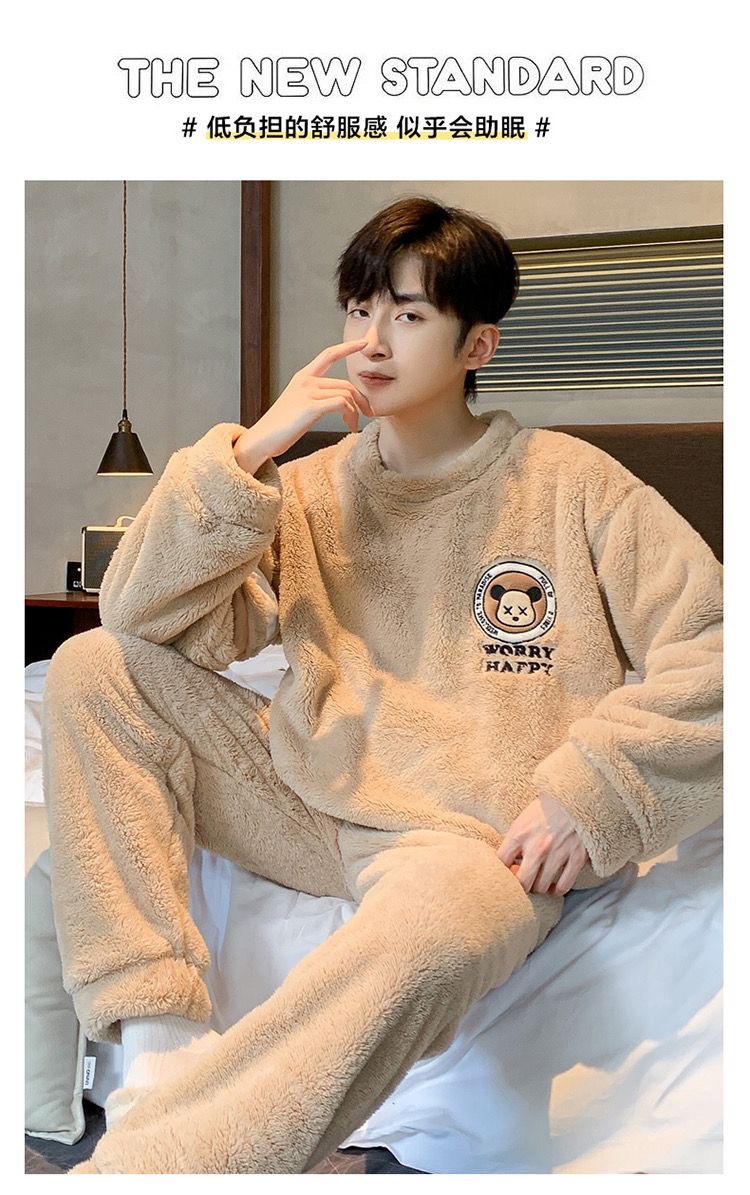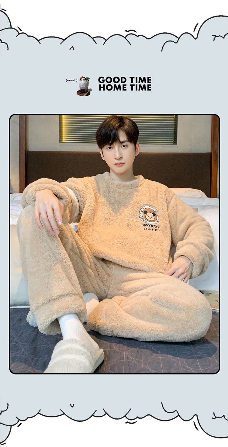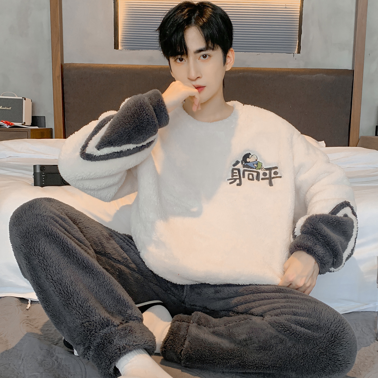 산호 양털 잠옷 남자 가을과 겨울 두꺼워 2024 새로운 플란넬 겨울 청소년 홈 의류 겨울스토어 가기