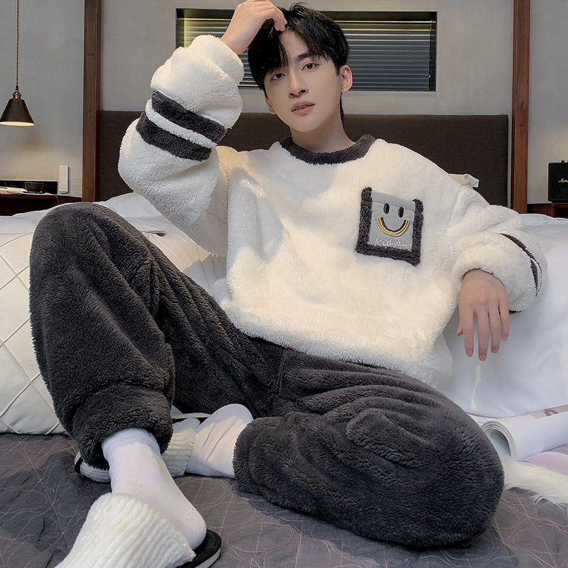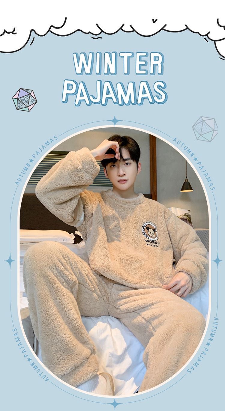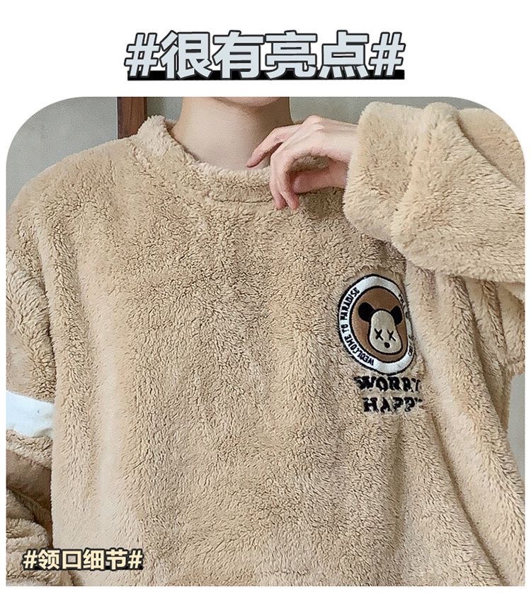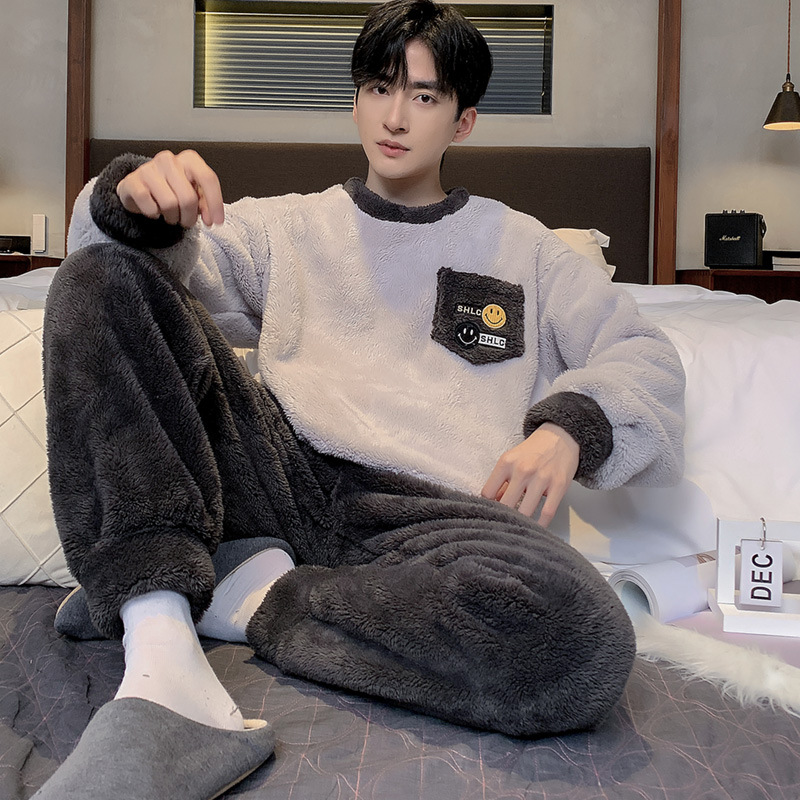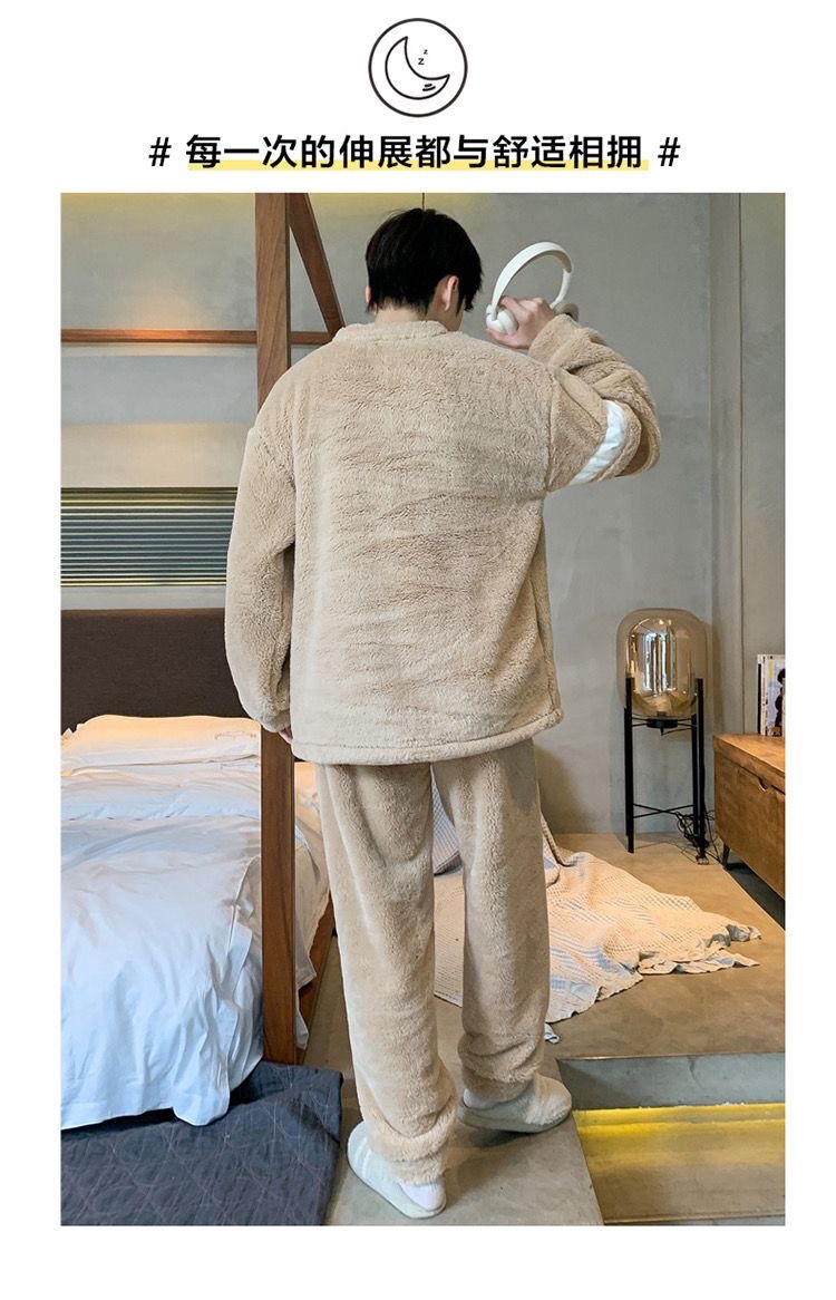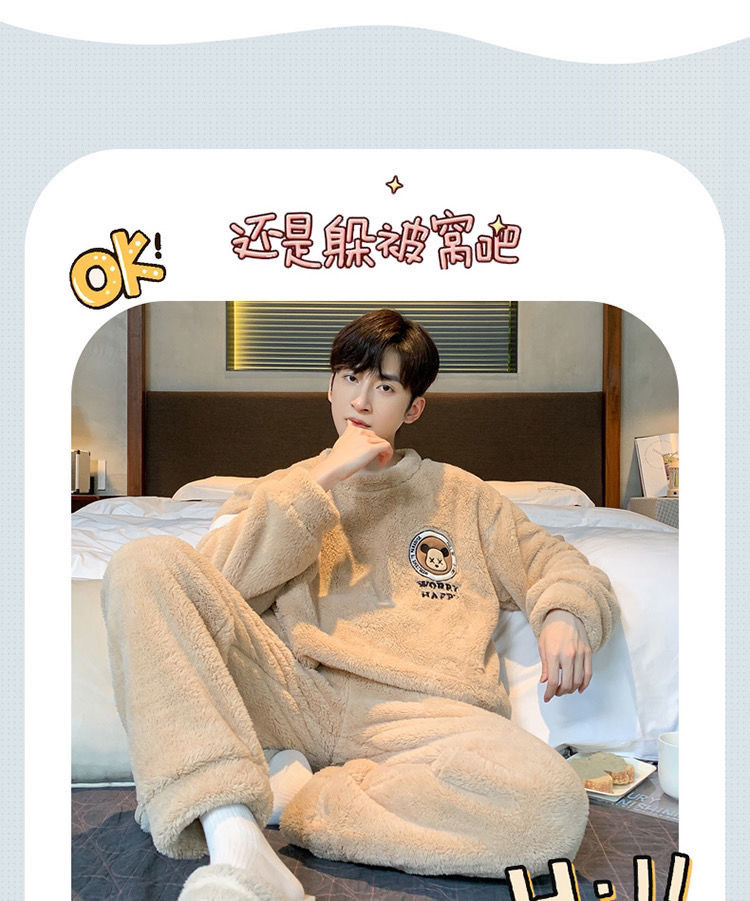 산호 양털 잠옷 남자 가을과 겨울 두꺼워 2024 새로운 플란넬 겨울 청소년 홈 의류 겨울스토어 가기