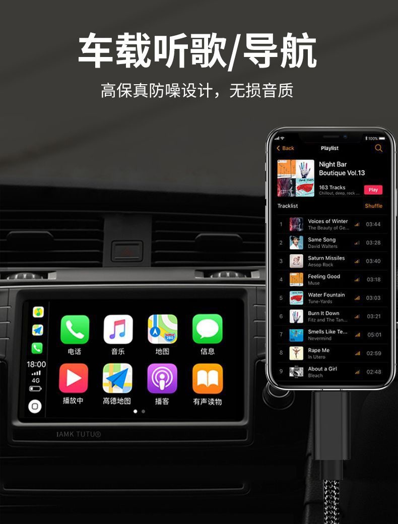 iPhone15 16promax에 적합 Apple usb-c 차량용 AUX 음악 듣기 오디오 케이블 1m 디지털 연결 케이블스토어 가기