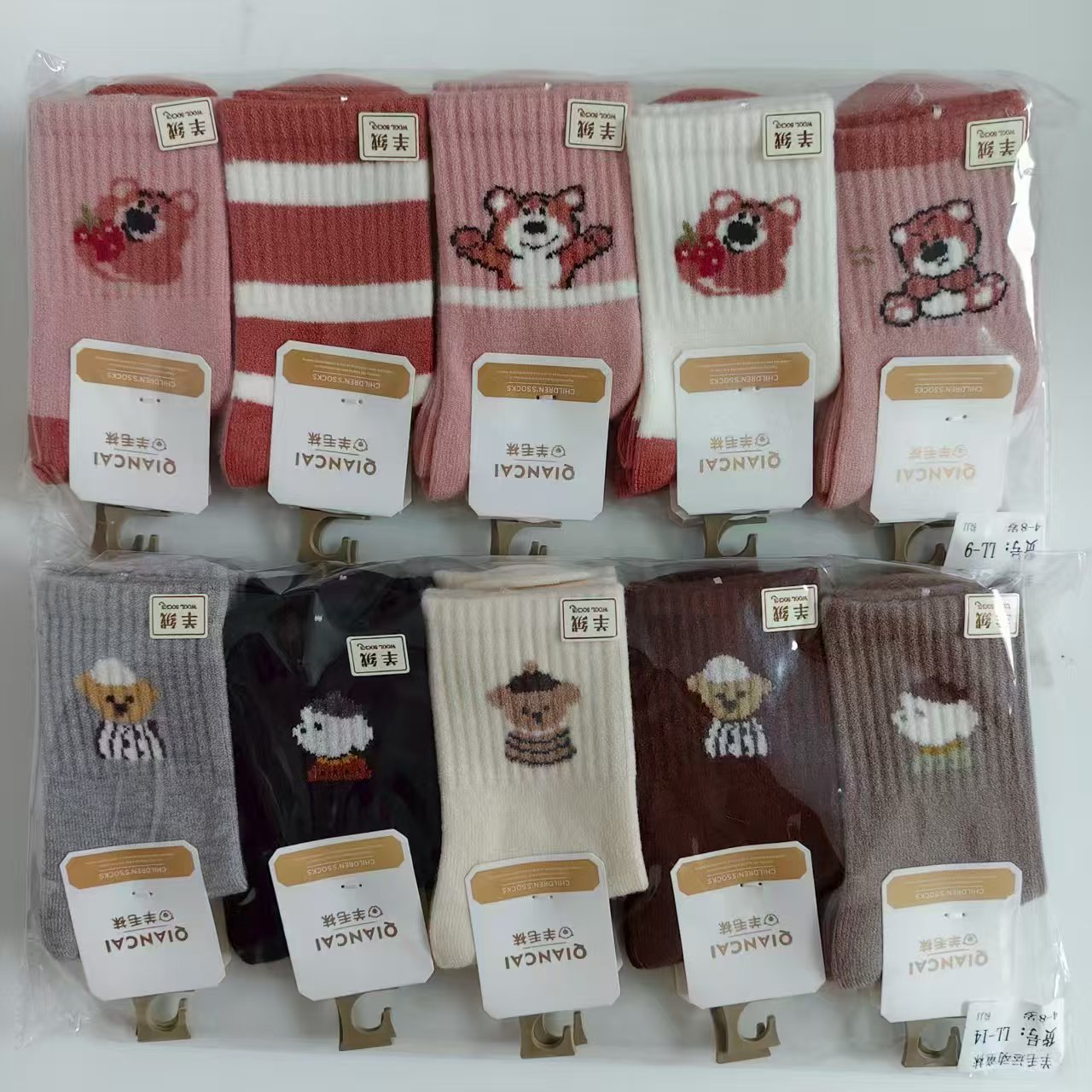 가을과 겨울 새로운 두꺼운 어린이 캐시미어 양말 높은 만화 꽃 동물 패턴 어린이 양말
