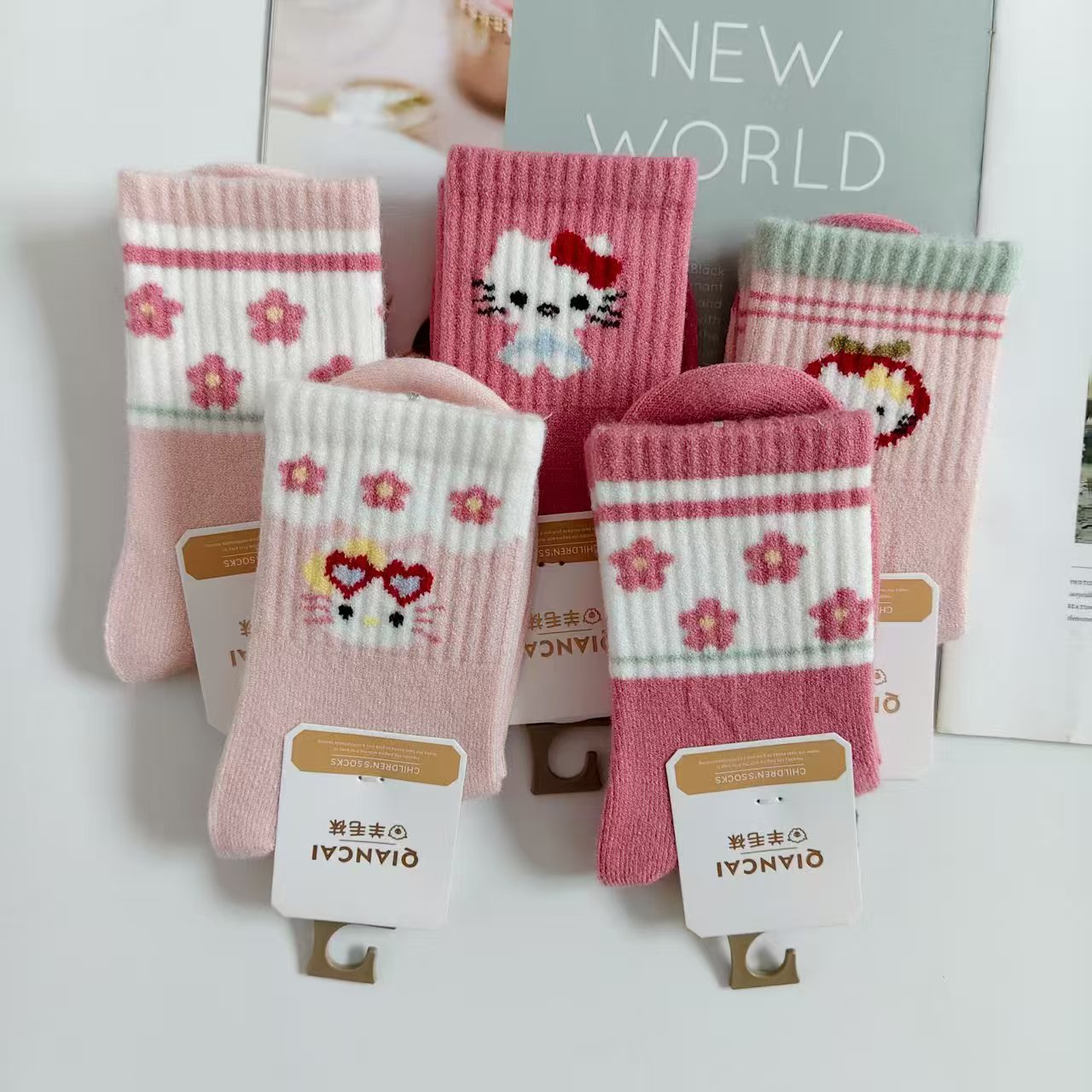 가을과 겨울 새로운 두꺼운 어린이 캐시미어 양말 높은 만화 꽃 동물 패턴 어린이 양말스토어 가기