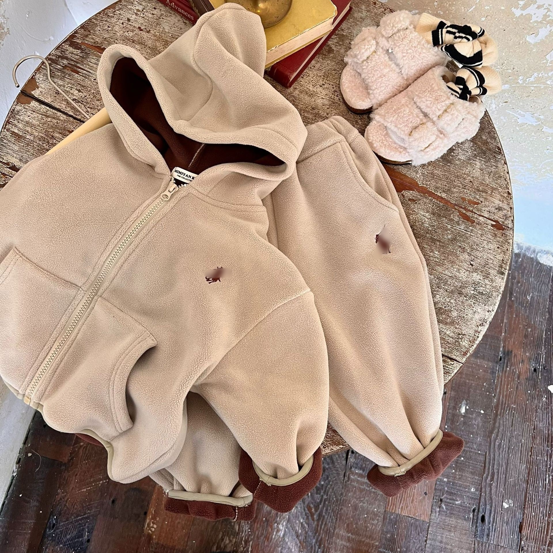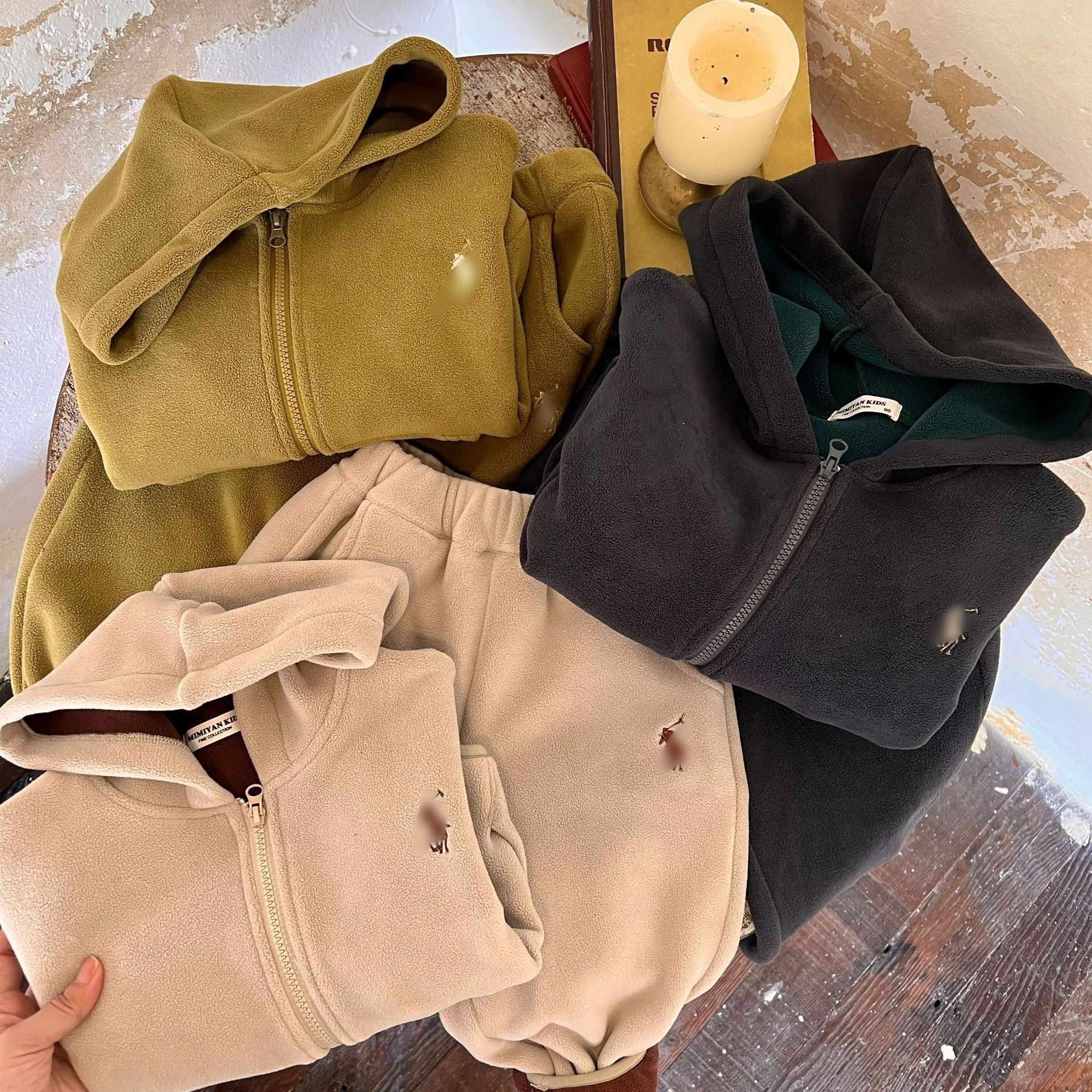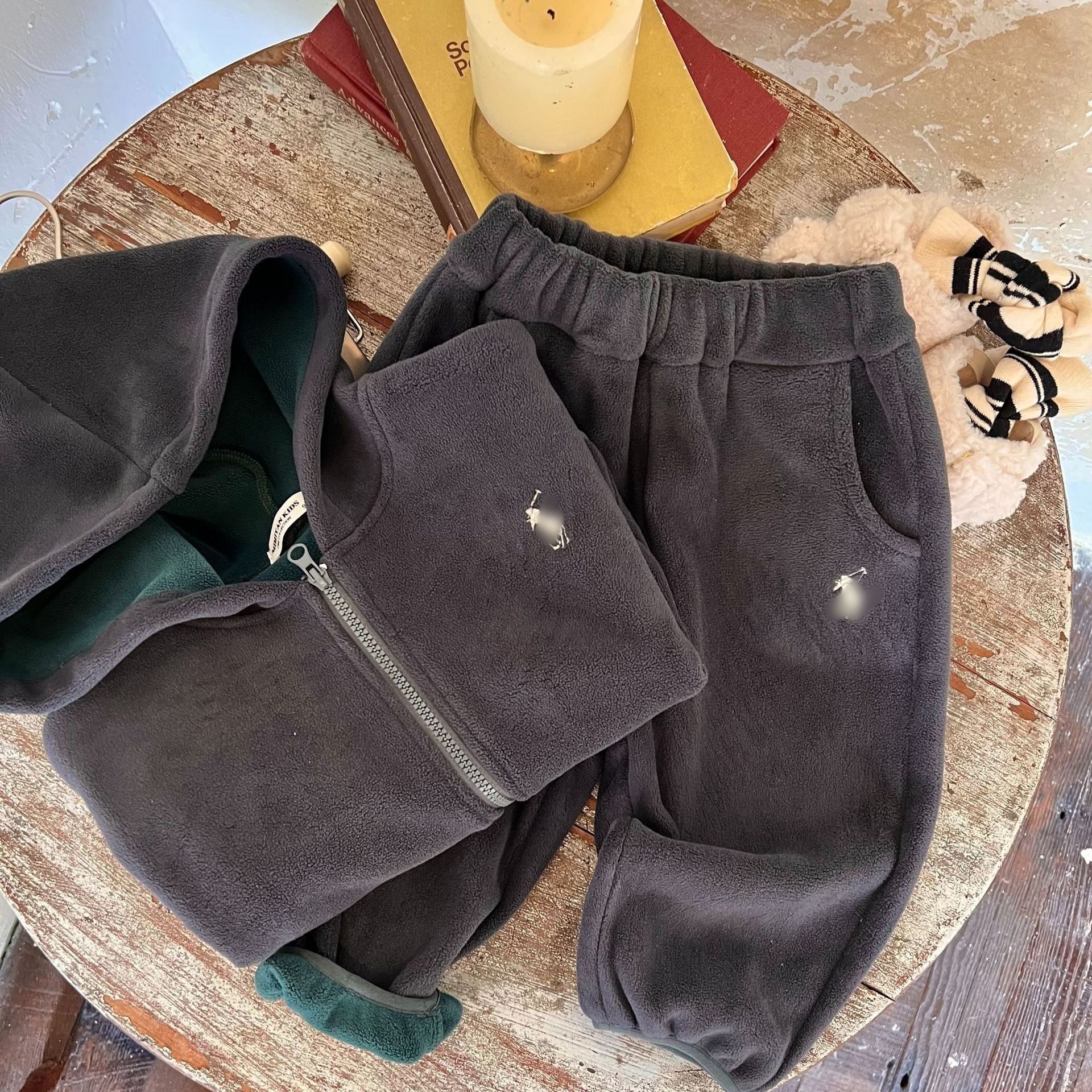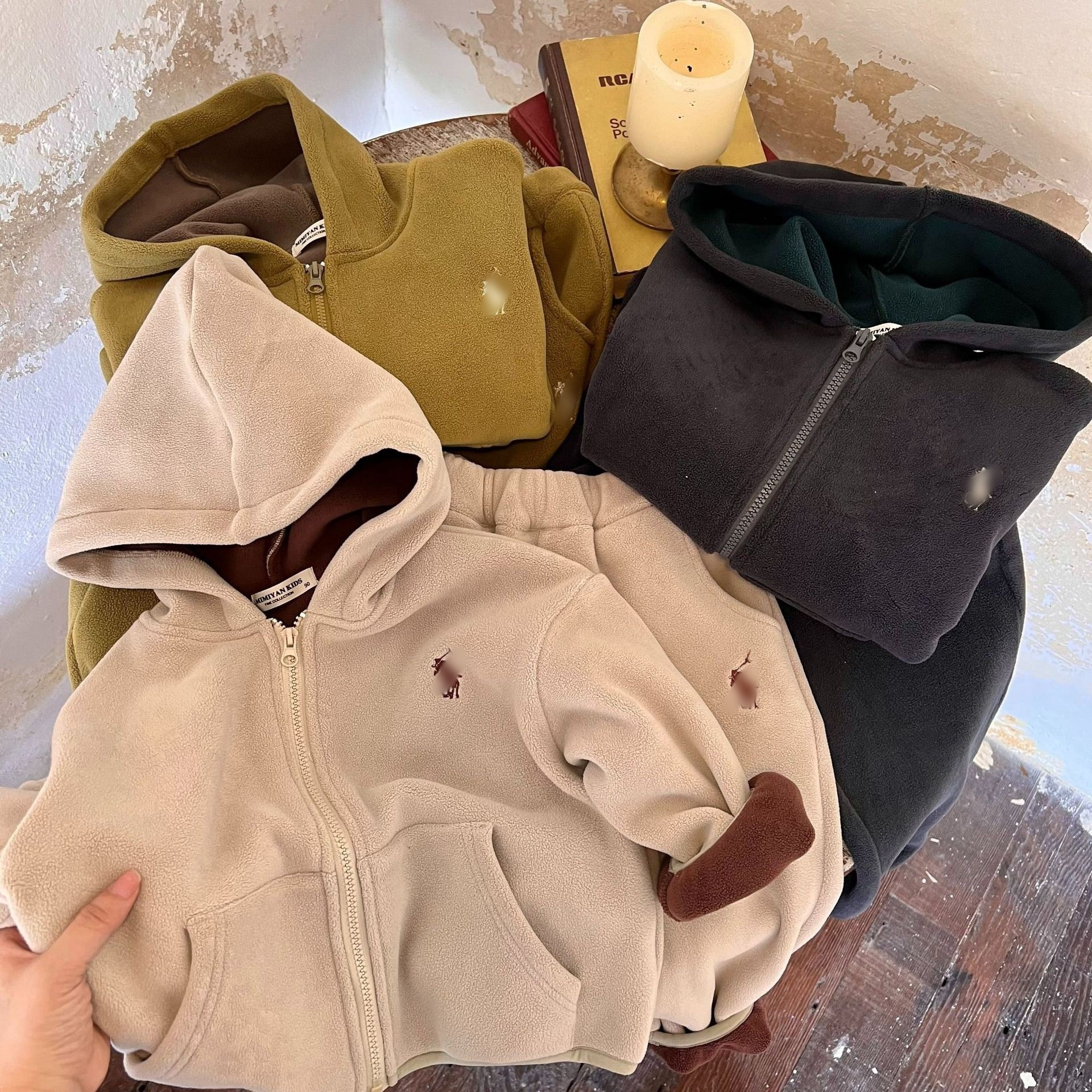 남아 여아 지퍼 재킷 겨울 새로운 어린이 후드 세트 바지 2 종 세트 두꺼운 기모 따뜻한스토어 가기