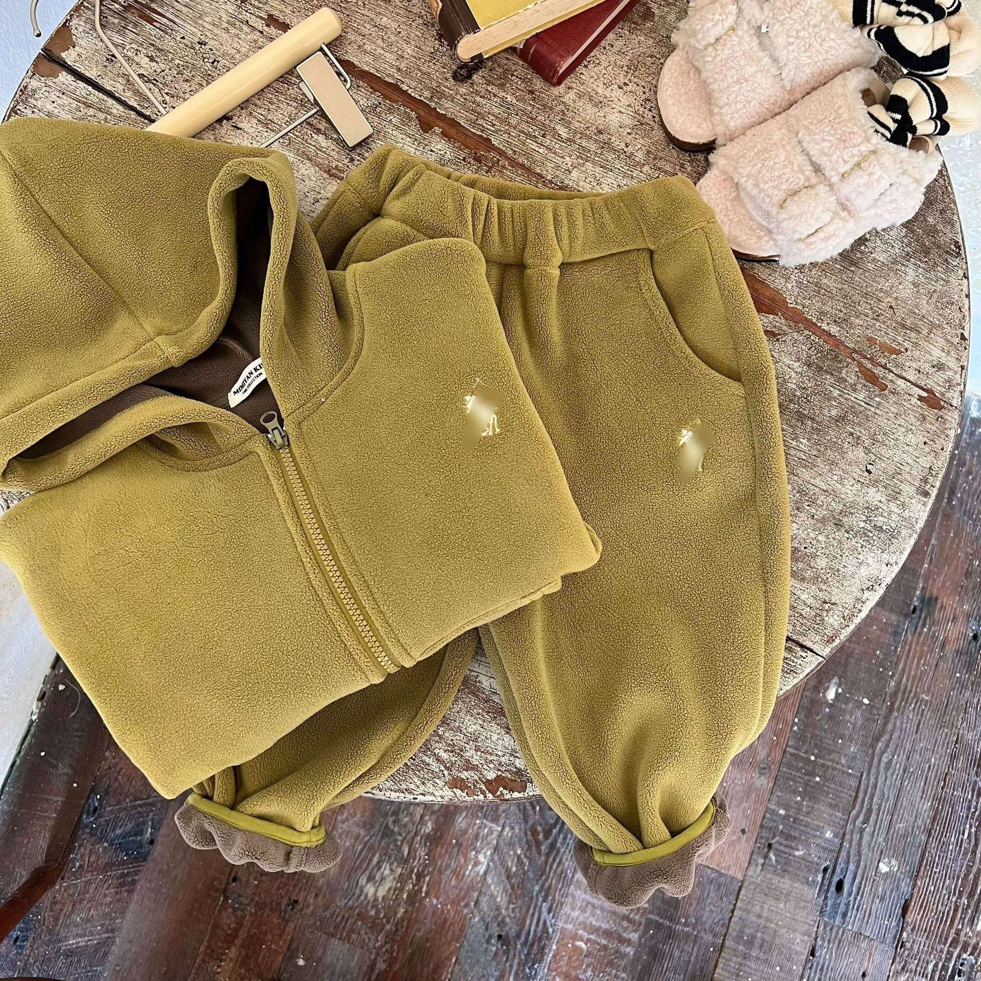 남아 여아 지퍼 재킷 겨울 새로운 어린이 후드 세트 바지 2 종 세트 두꺼운 기모 따뜻한