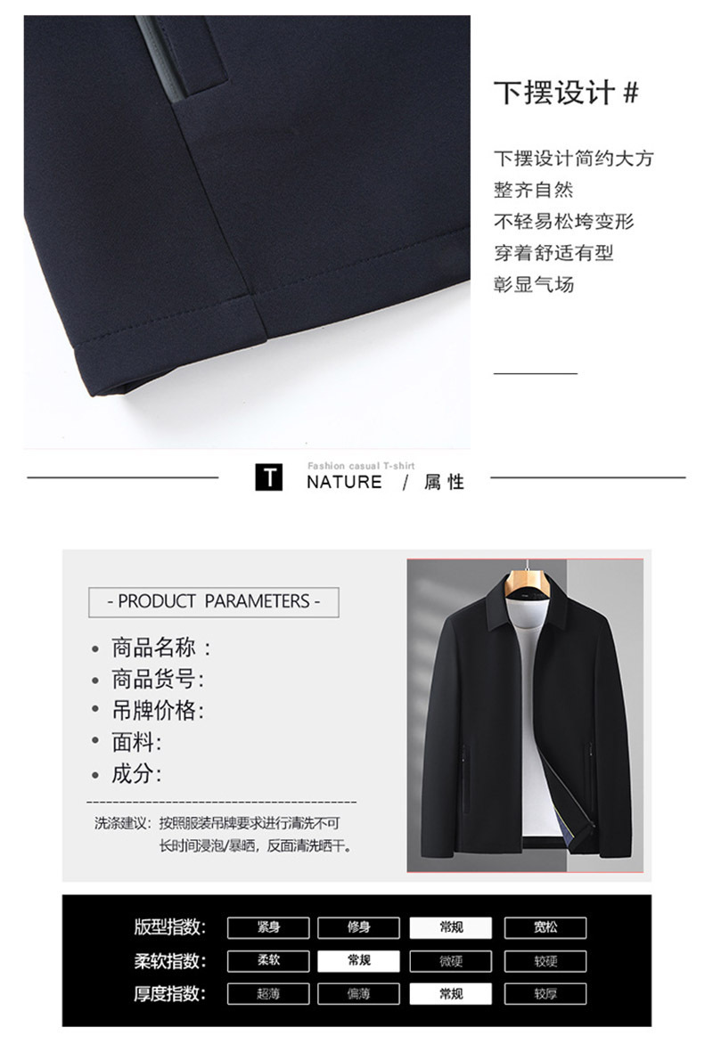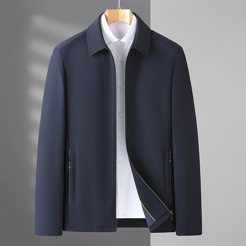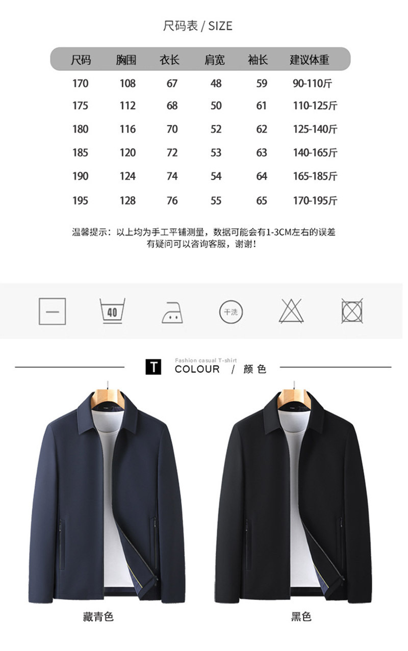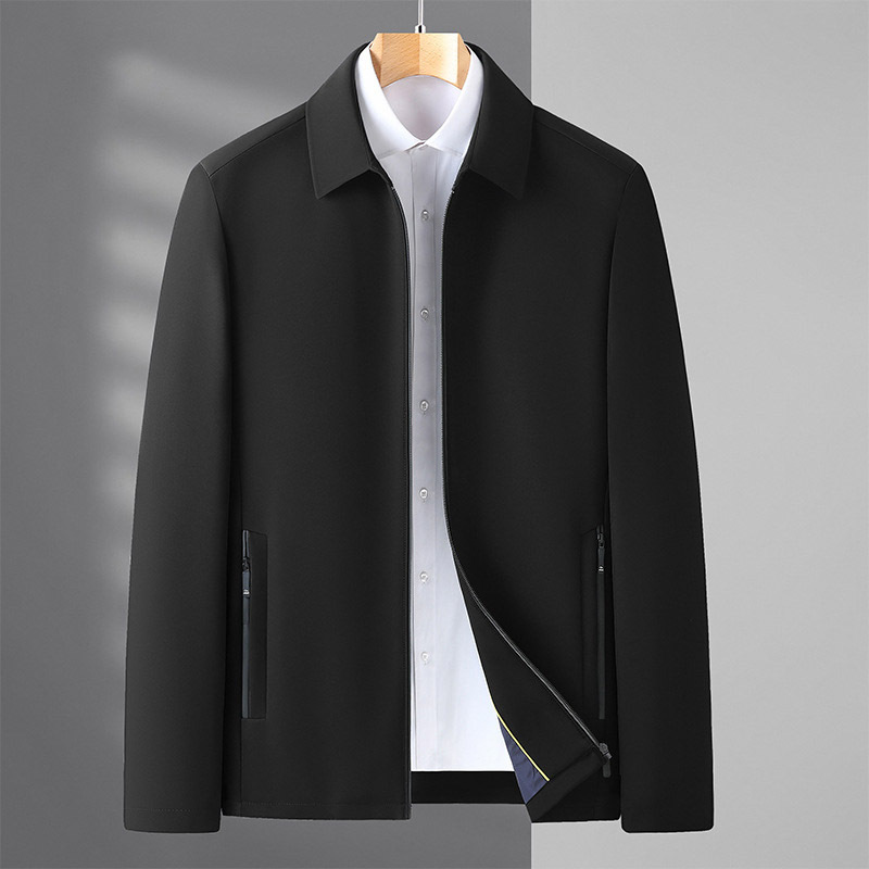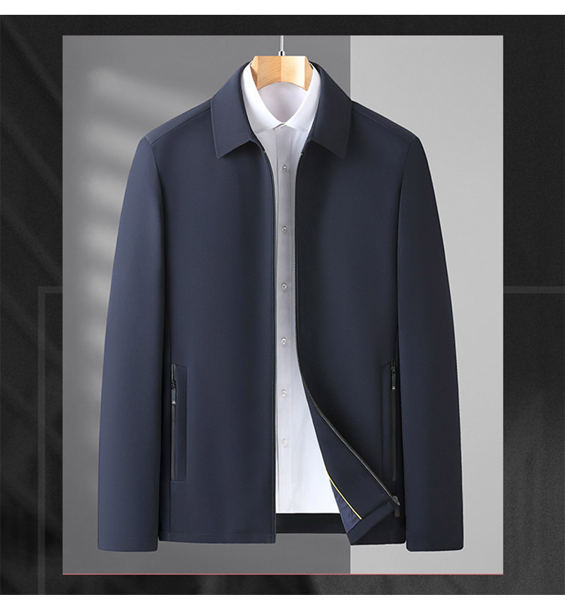 2023春季新款中年纯色修身夹克衫男 轻商务时尚翻领拉链开衫外套