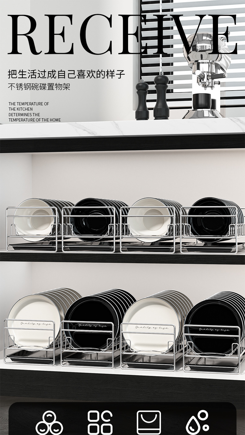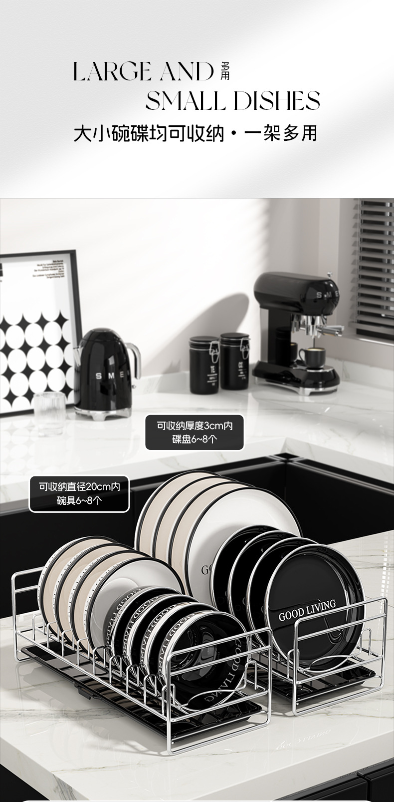가정용 스테인레스 스틸 접시 랙 주방 다층 분할 풀 아웃 배수 플레이트 멀티 그리드 분류 접시 랙 도매스토어 가기