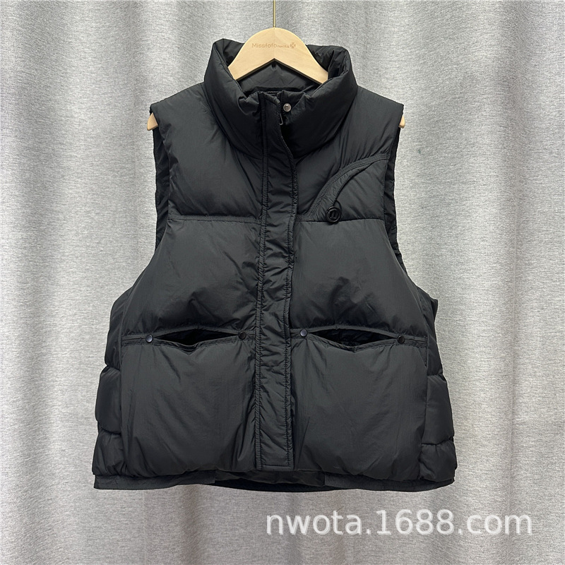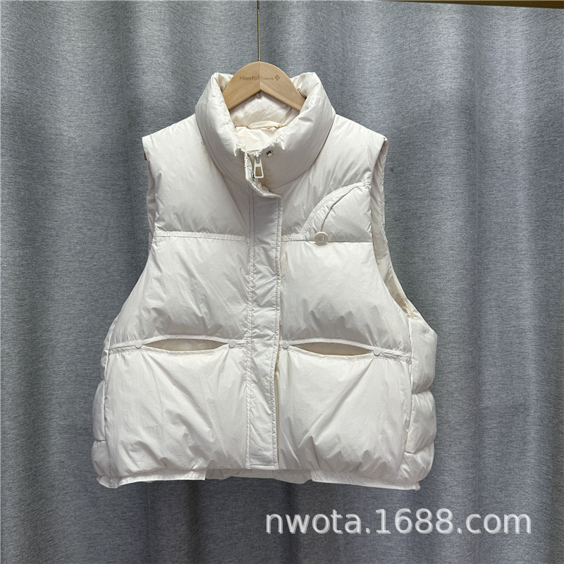 리벳 다운 조끼 여성용 숏 스타일 2025 가을 겨울 신상 한국판 두꺼운 스탠드 칼라 화이트 덕다운 조끼 보온 자켓스토어 가기