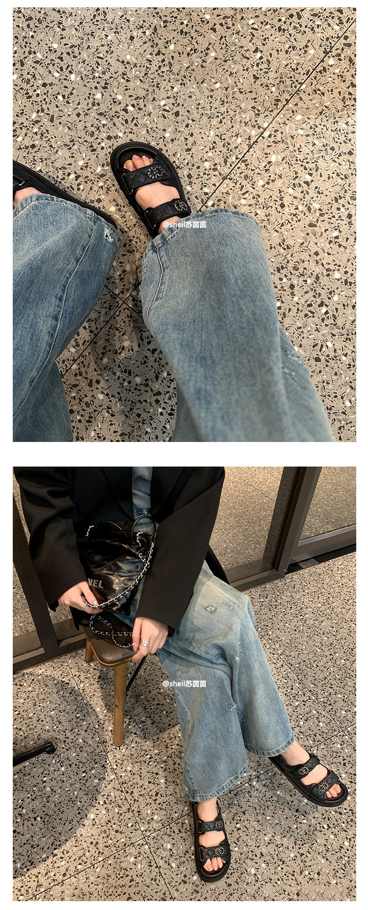 포도 어머니 스튜디오 아일랜드 휴가 ~ 여성을위한 후크 및 루프가있는 모든 매치 한 단어 두꺼운 밑창 비치 스포츠 샌들