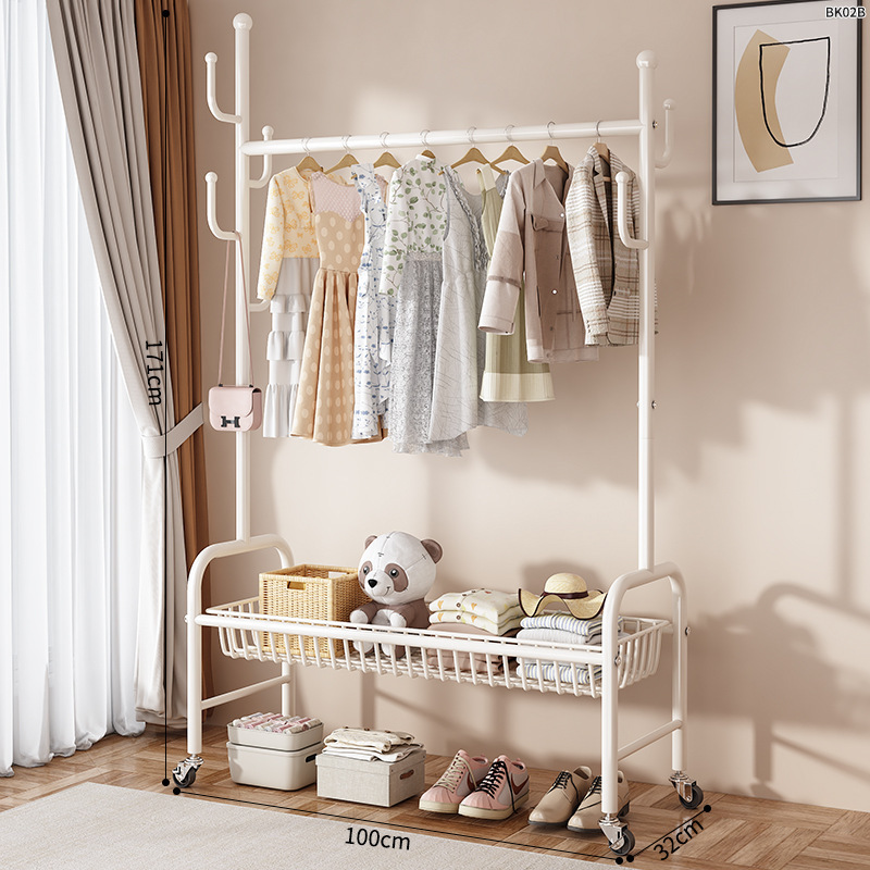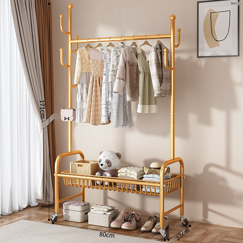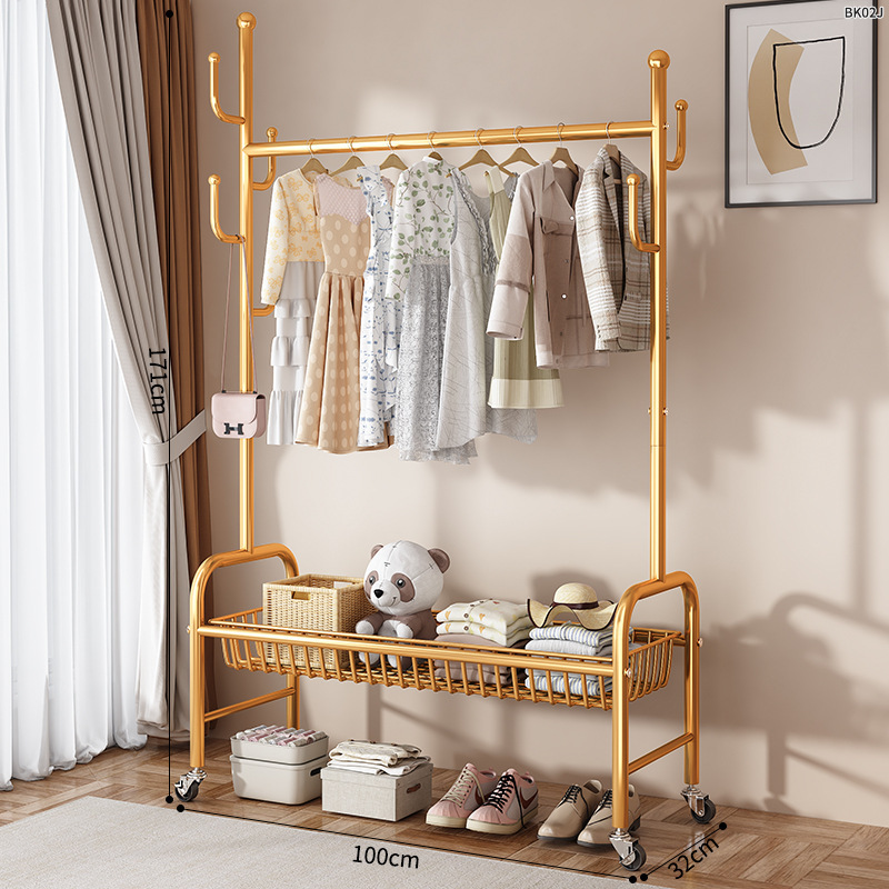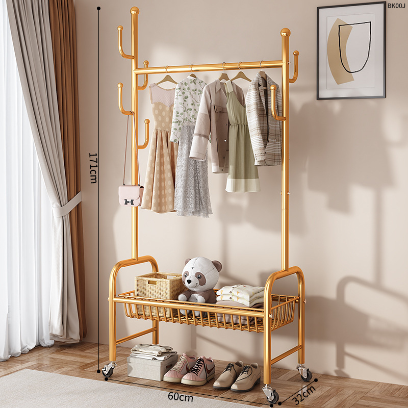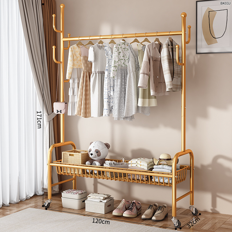 옷걸이 스탠드 침실용 가정용 선인장 옷걸이 두꺼운 건조대 실내 막대형 이동식 옷걸이 수납