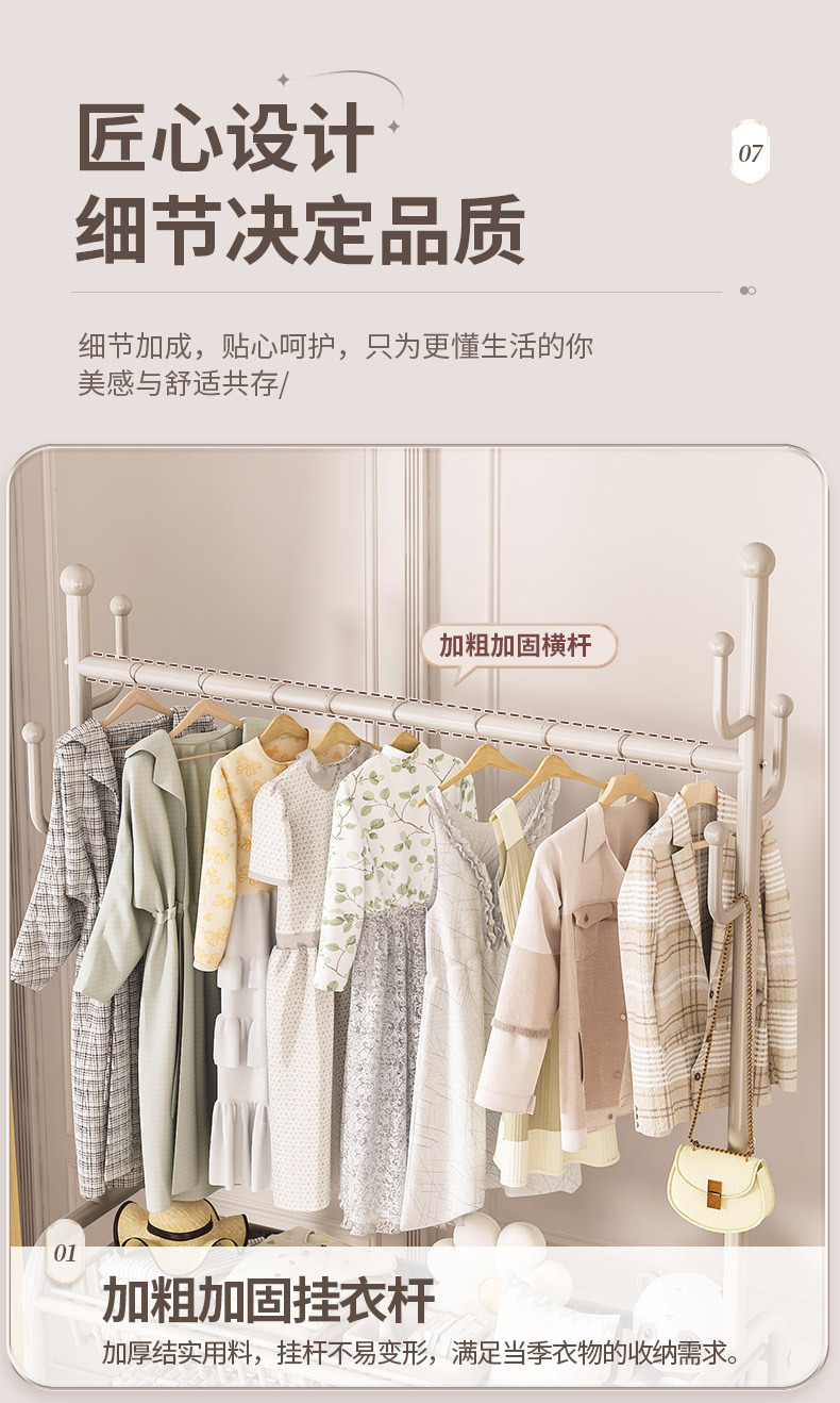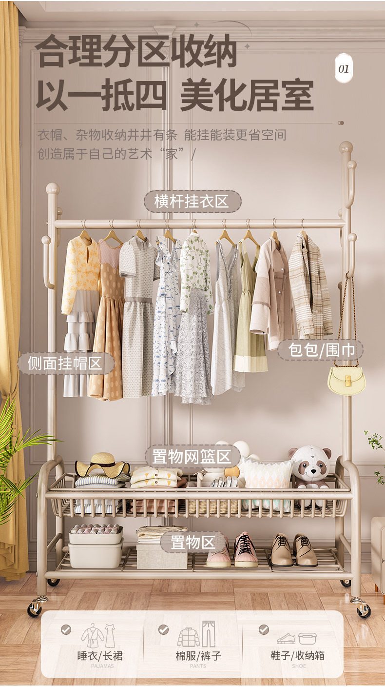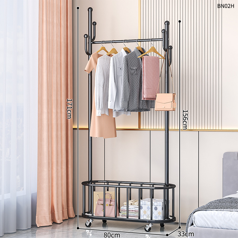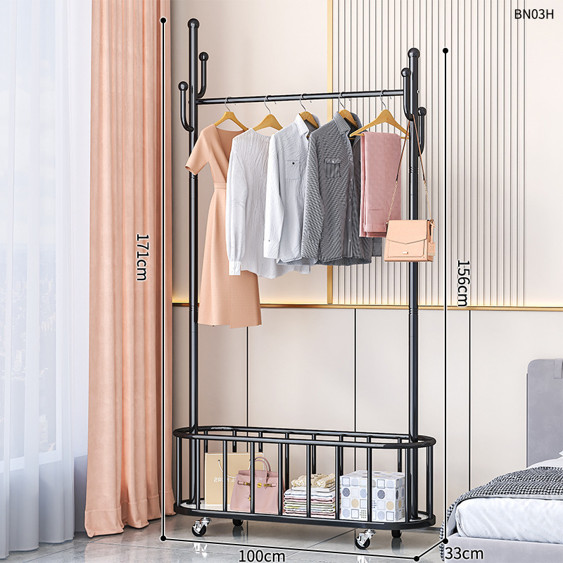 옷걸이 스탠드 침실용 가정용 선인장 옷걸이 두꺼운 건조대 실내 막대형 이동식 옷걸이 수납