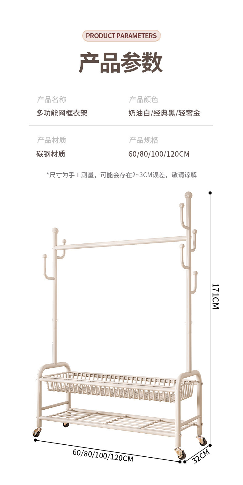 • BN01B-cactus 그물 바구니 코트 랙 18CM 아이언 휠 60 화이트