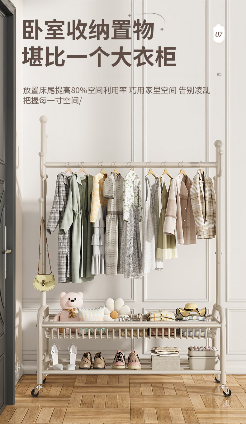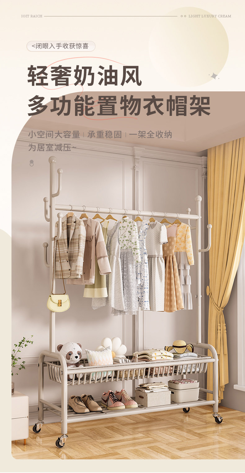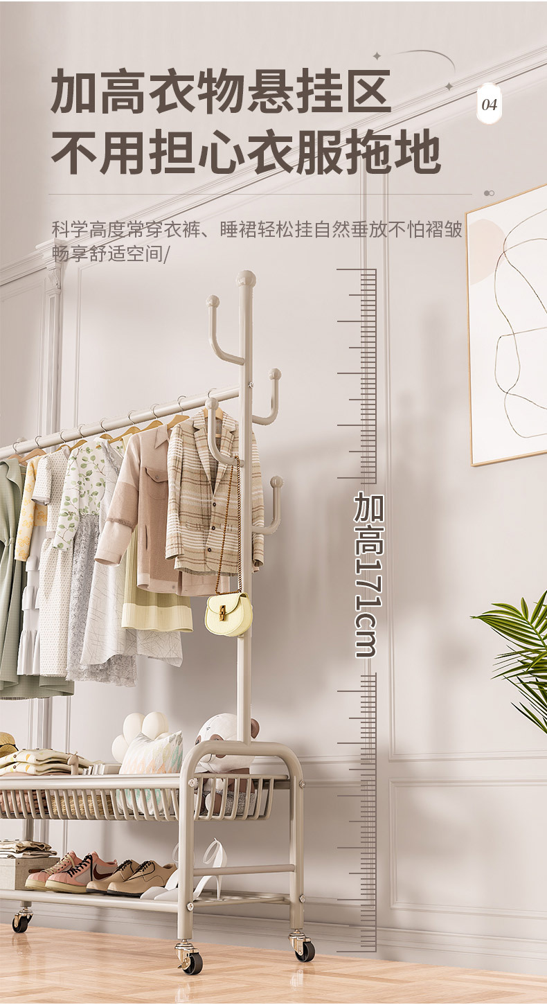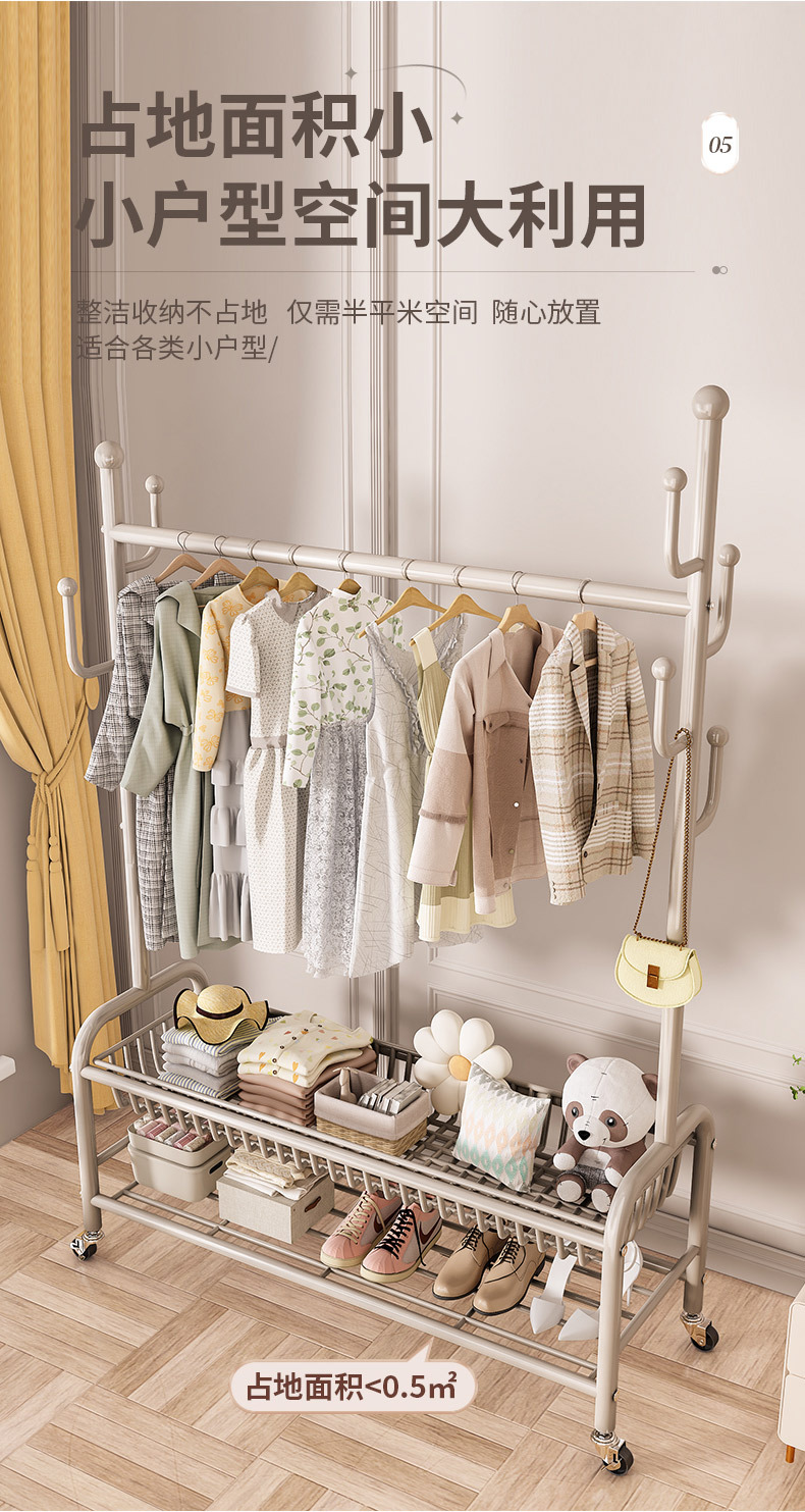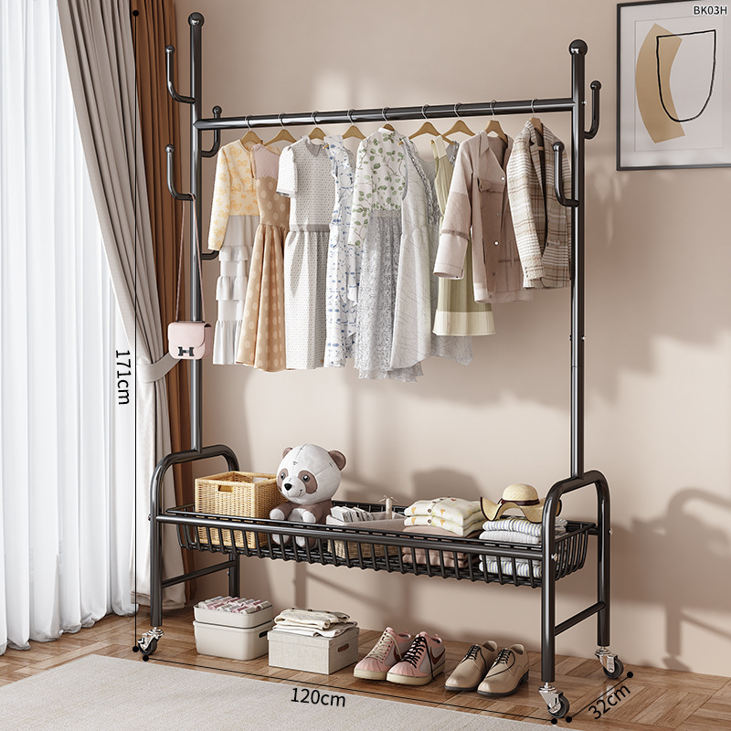 옷걸이 스탠드 침실용 가정용 선인장 옷걸이 두꺼운 건조대 실내 막대형 이동식 옷걸이 수납스토어 가기