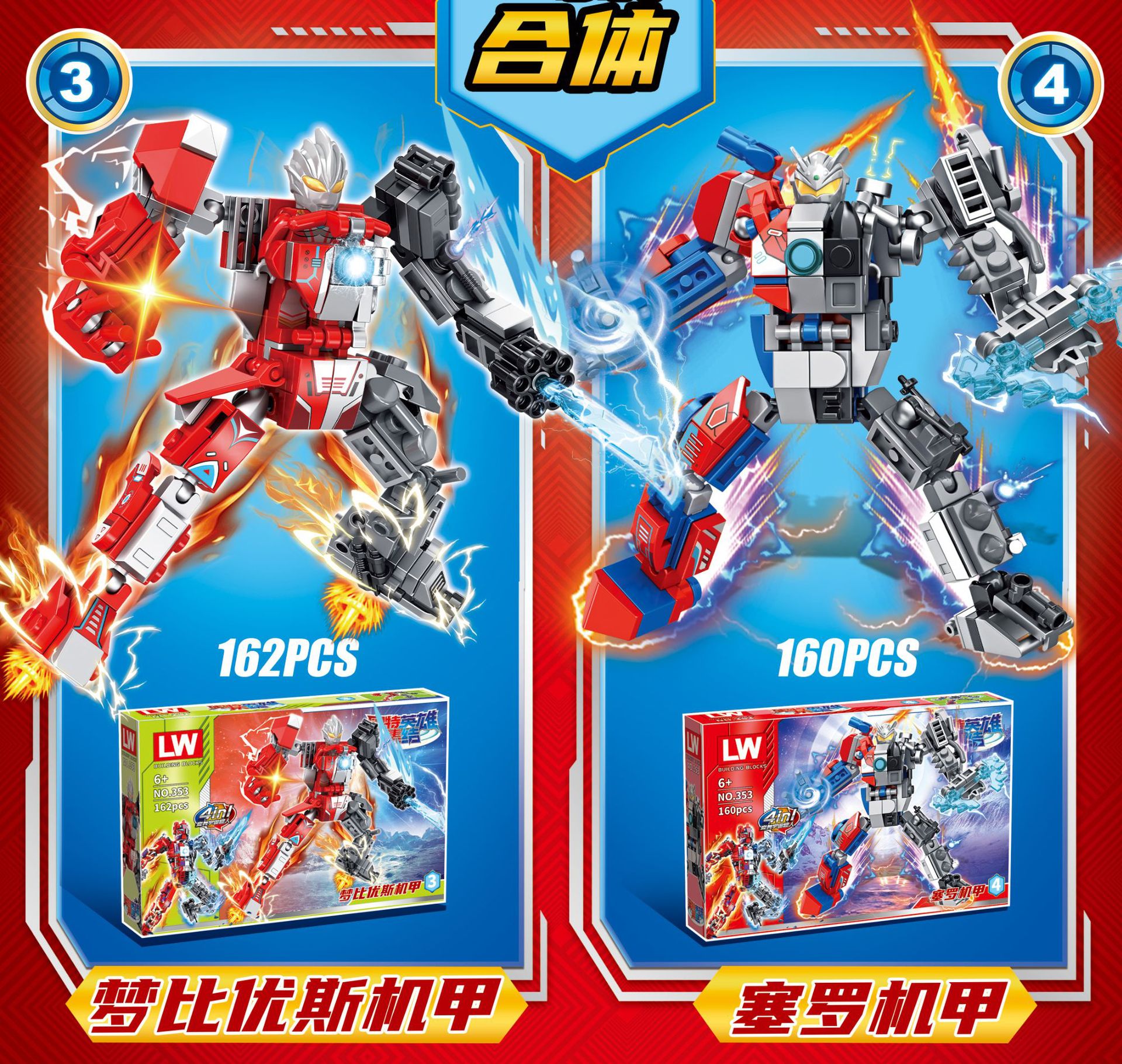 해피 플레이 353 Ott 히어로 메카 슈퍼맨 빌딩 블록 어린이 교육 조립 로봇 장난감 소년 선물스토어 가기