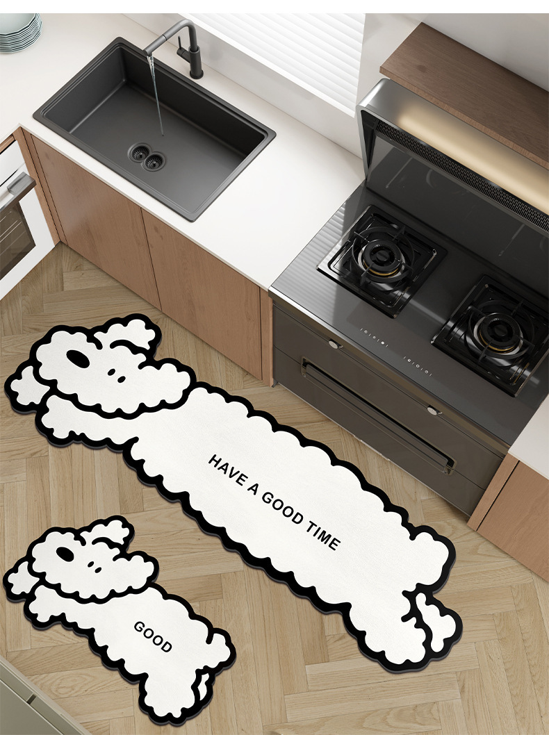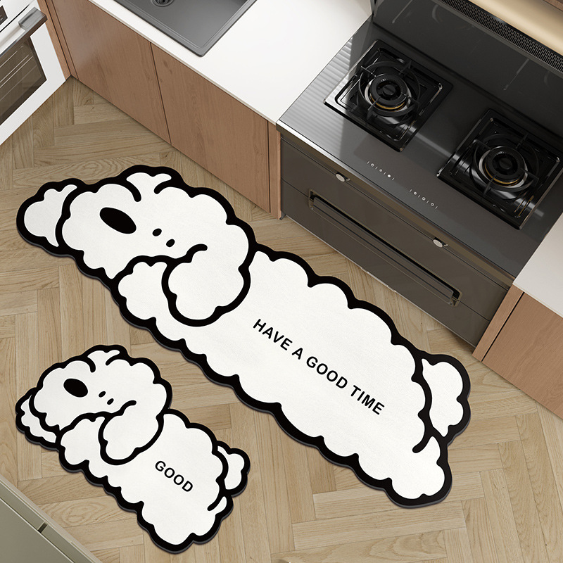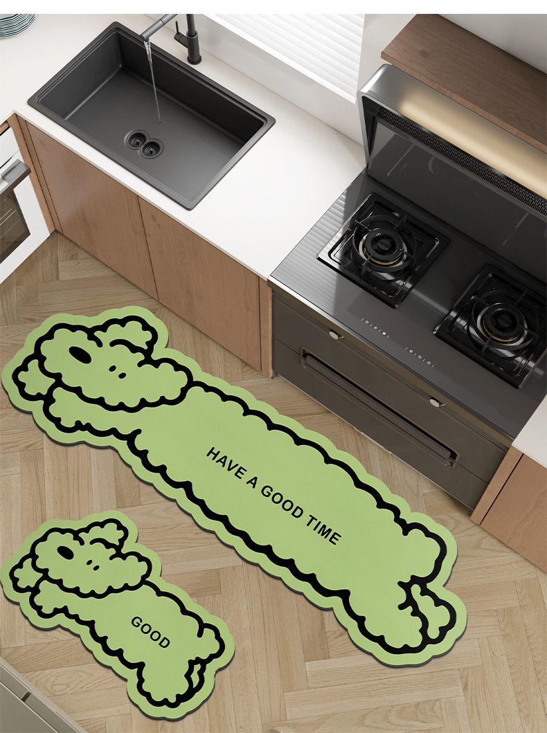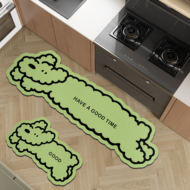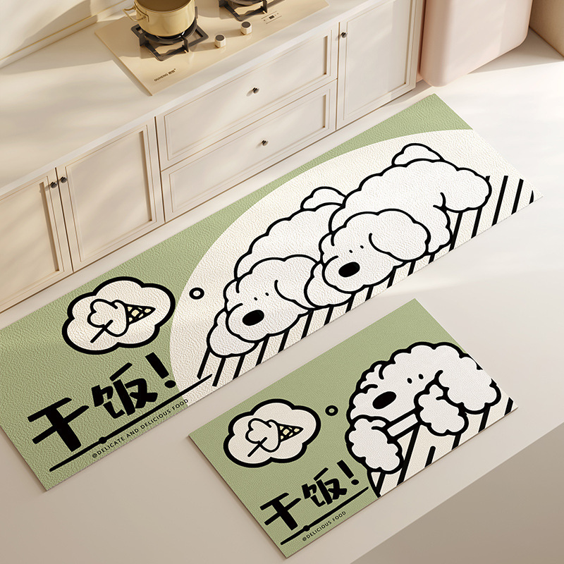 만화 강아지 가죽 주방 바닥 매트 가정용 내유성 바닥 매트 먼지 방지 내마모성 미끄럼 방지 매트 절단 가능한 가죽 카펫스토어 가기