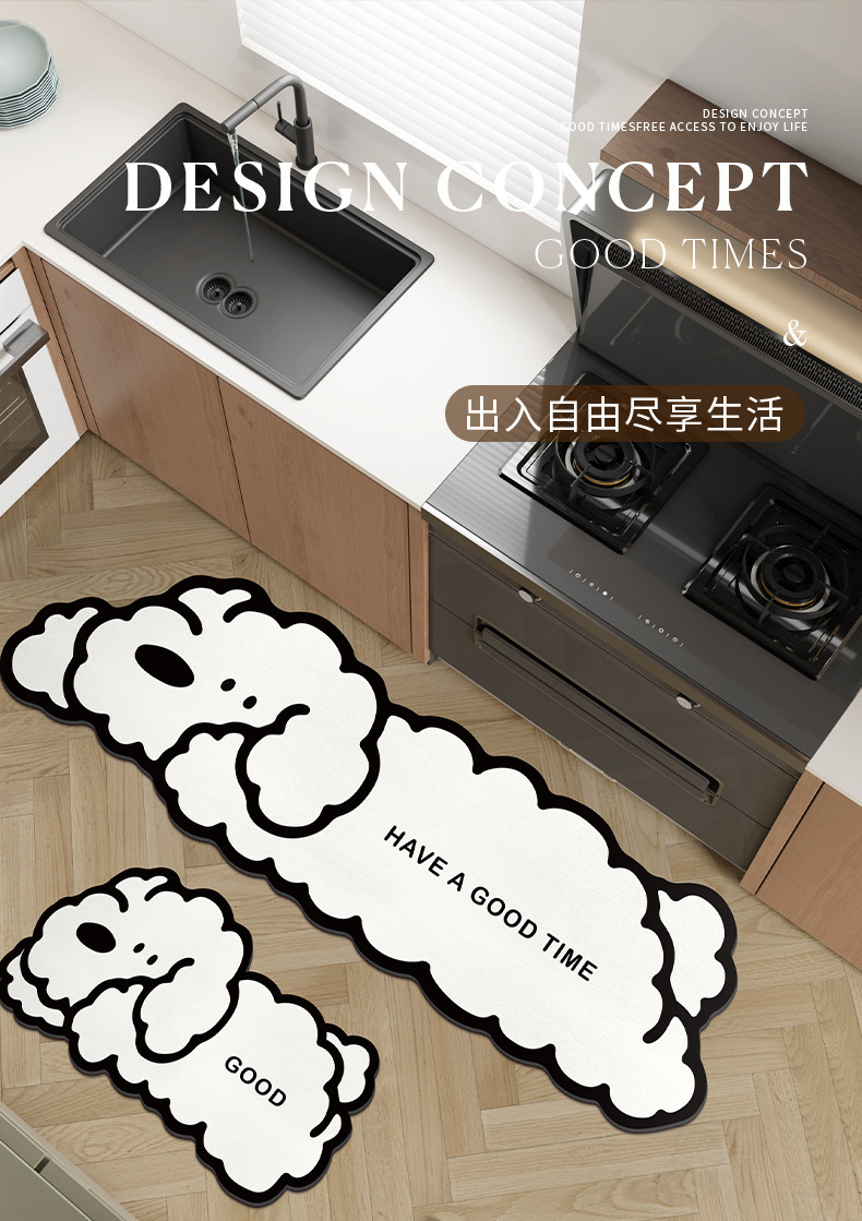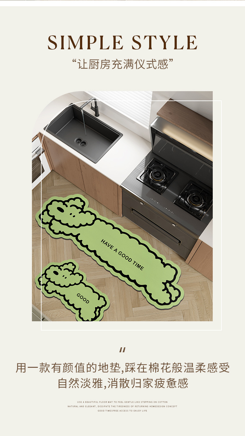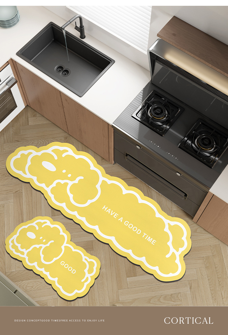 만화 강아지 가죽 주방 바닥 매트 가정용 내유성 바닥 매트 먼지 방지 내마모성 미끄럼 방지 매트 절단 가능한 가죽 카펫스토어 가기