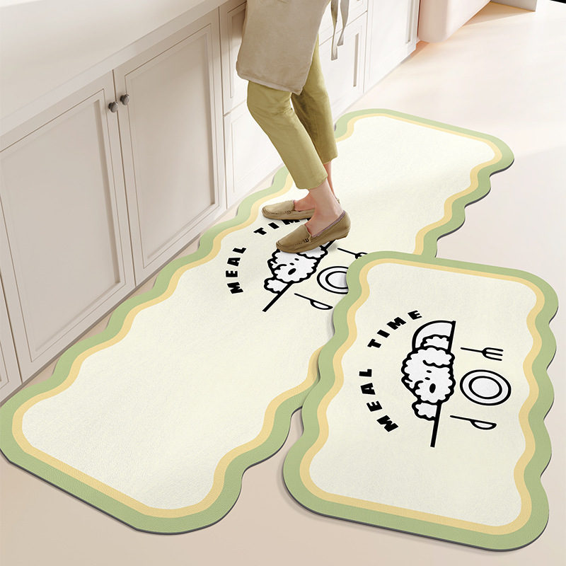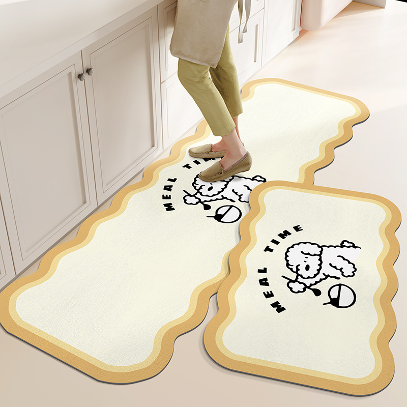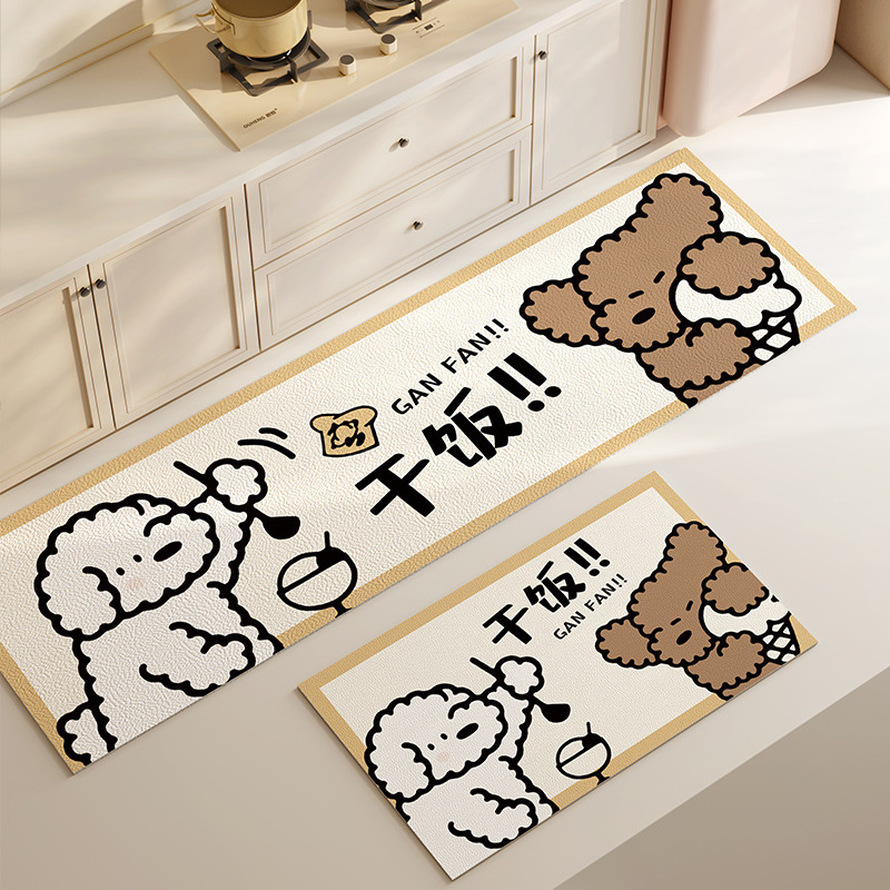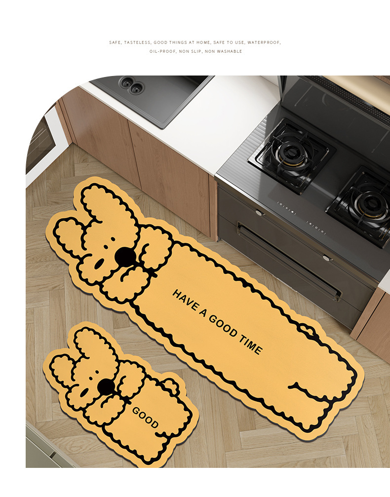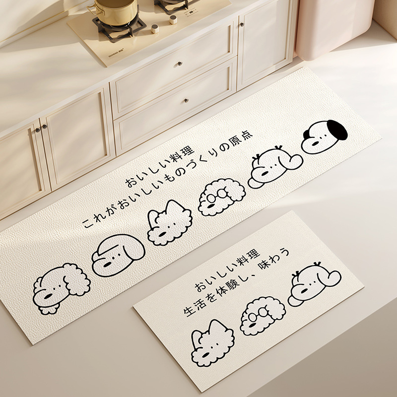 만화 강아지 가죽 주방 바닥 매트 가정용 내유성 바닥 매트 먼지 방지 내마모성 미끄럼 방지 매트 절단 가능한 가죽 카펫
