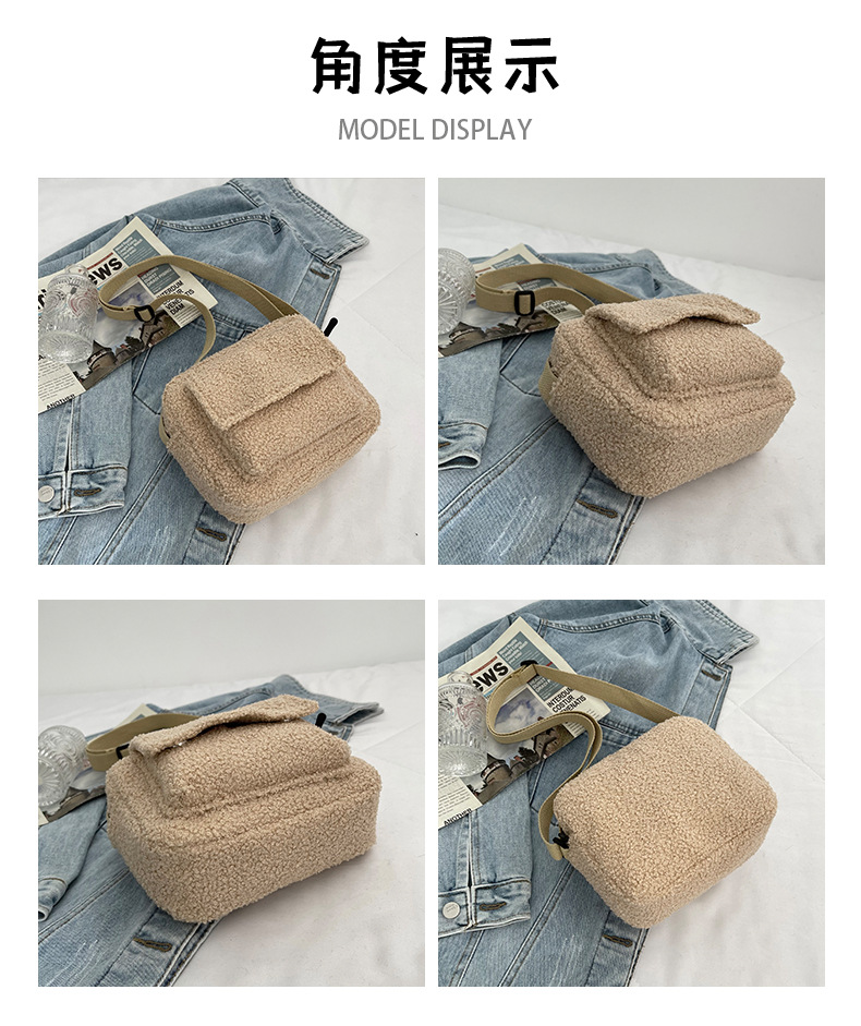 양털 가방 여성용 가방 2024 겨울 새로운 스타일 심플 패션 외국 스타일 여성용 어깨 크로스 바디 백 모피 가방스토어 가기