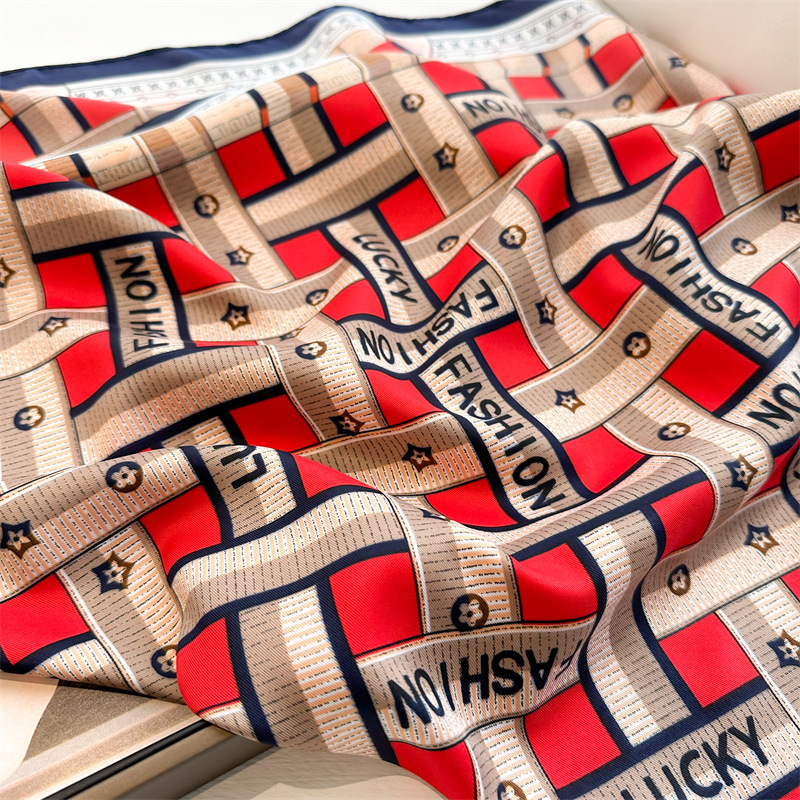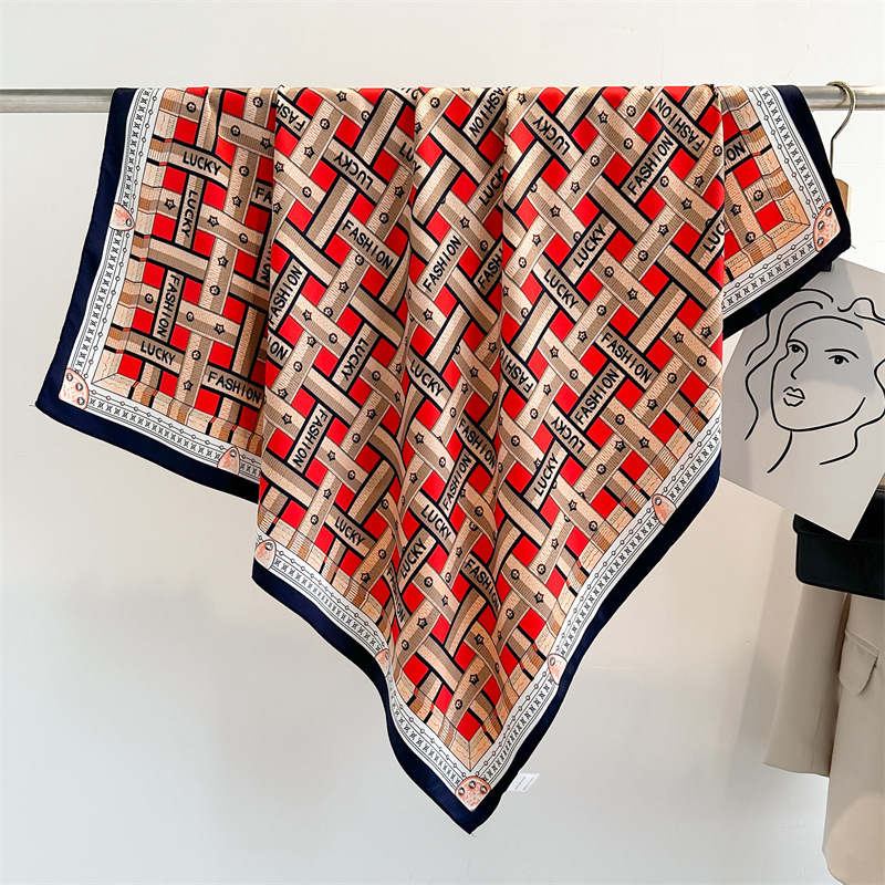 새로운 스타일 헤링본 패턴 패션 인쇄 편지 스카프 90cm 대형 사각 스카프 능직 실크 머리 스카프 우아한 모든 일치 숄 여성