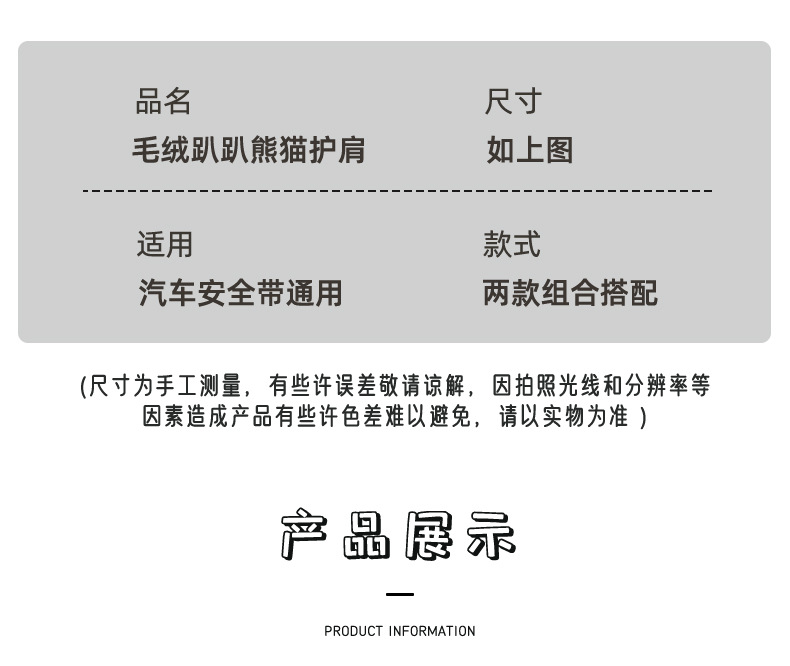 만화 자동차 안전 벨트 어깨 패드 귀여운 플러시 팬더 자동차 안티 마모 어깨 패드 자동차 인테리어 용품 여성스토어 가기