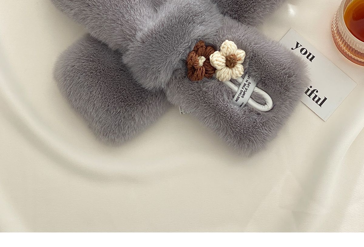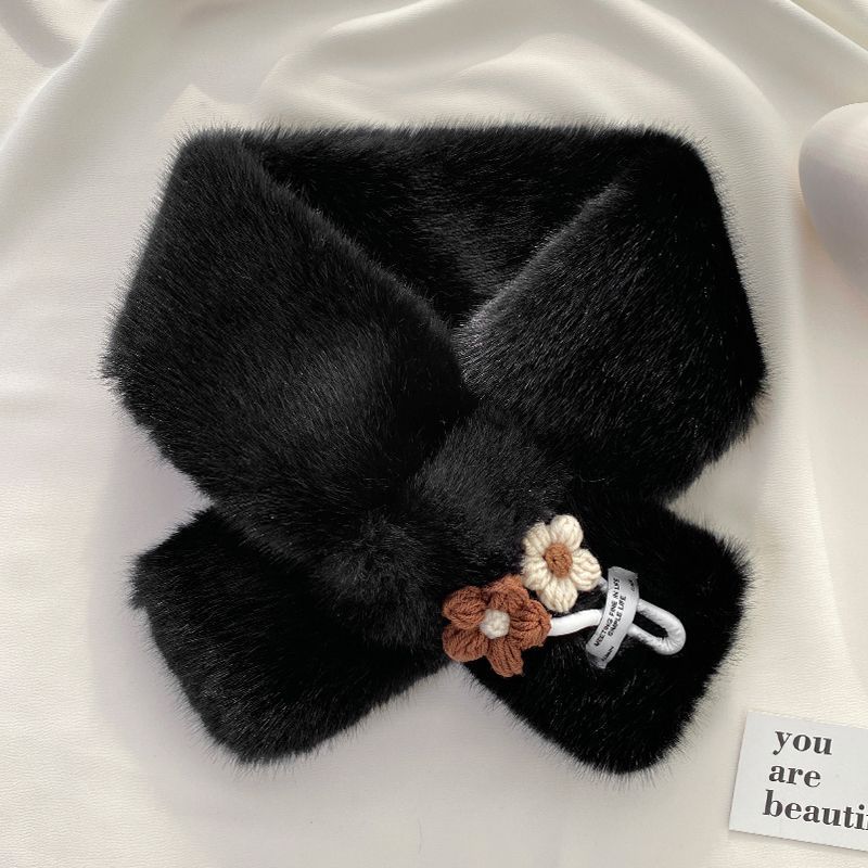 일본식 귀여운 작은 꽃 렉스 토끼 푹신한 스카프 소녀 모든 일치 학생을위한 따뜻한 두꺼운 크로스 플러시 목