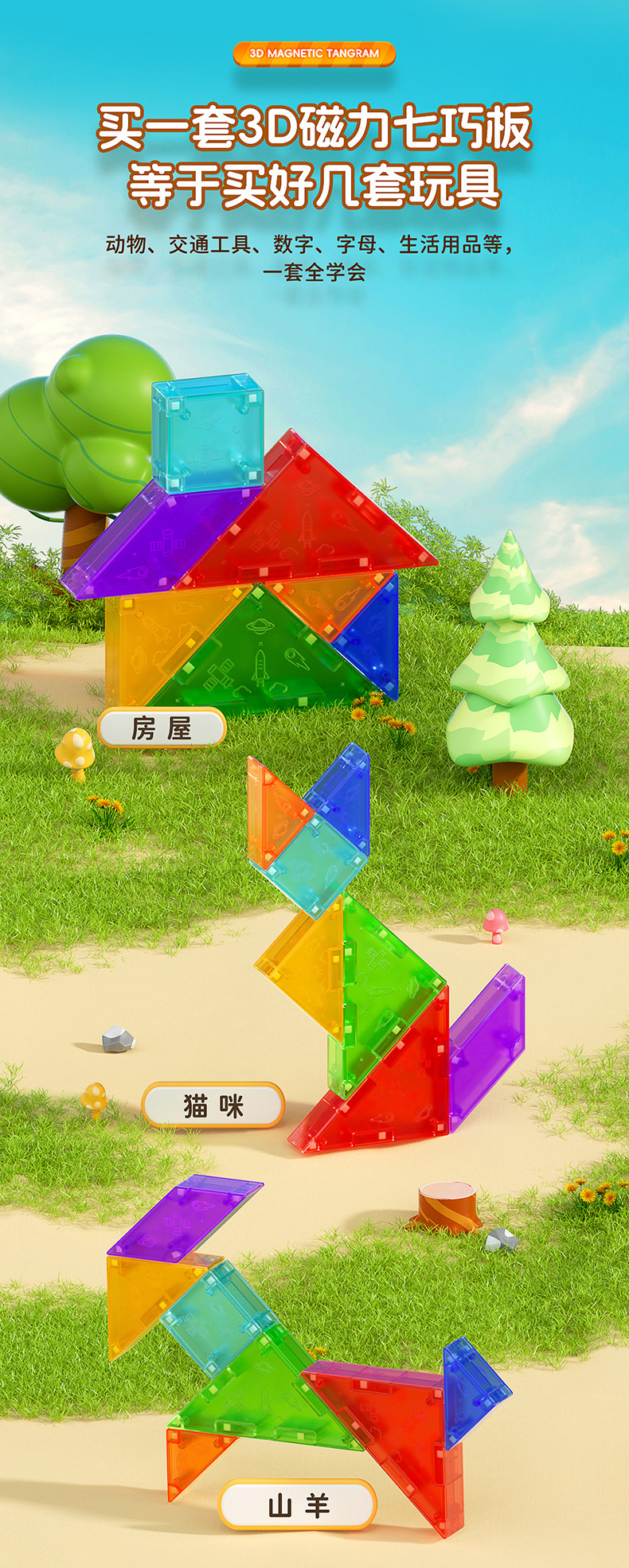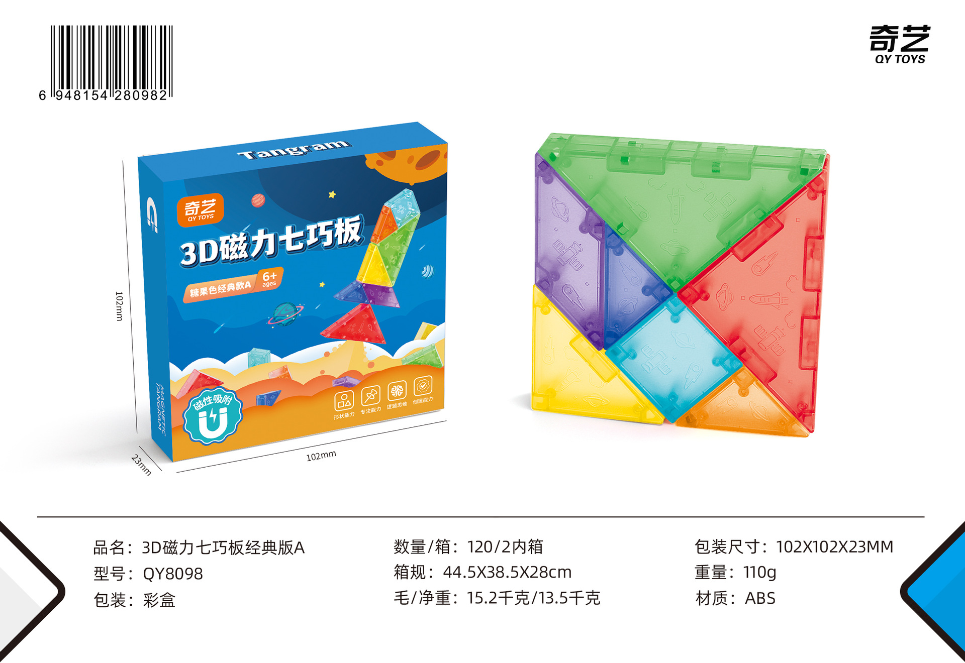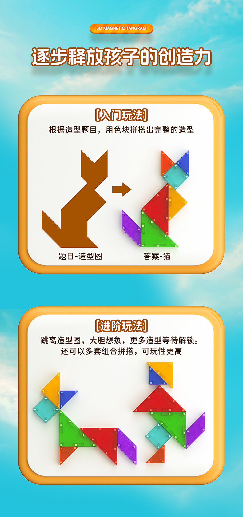 Qiyi 자기 Tangram 3D 입체 퍼즐 사고 훈련 어린이 조기 교육 조립 자기 3D Tangram 장난감