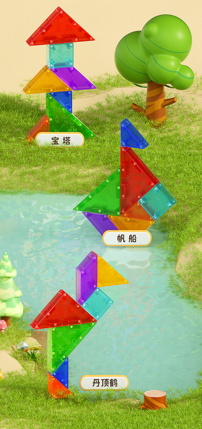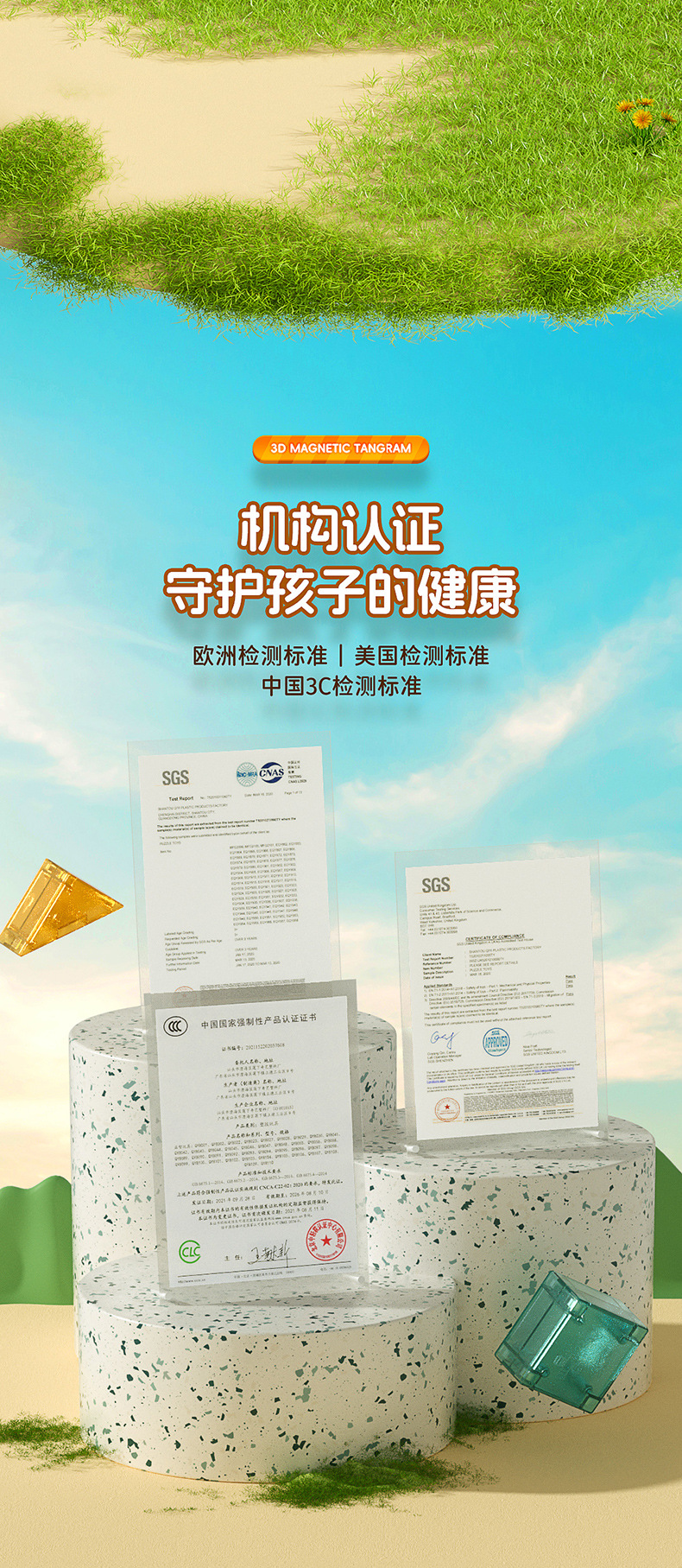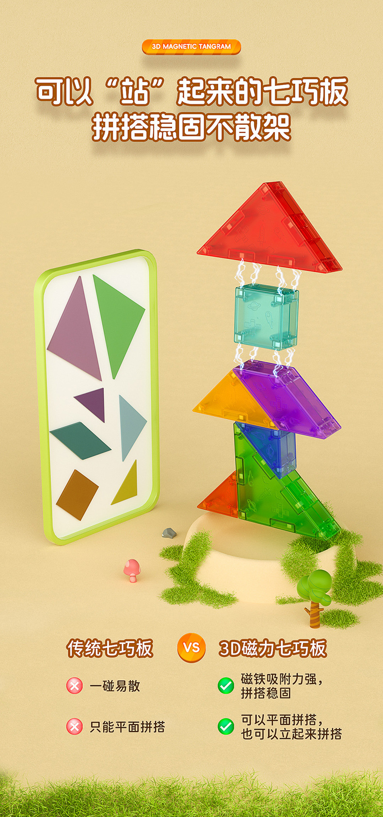 Qiyi 자기 Tangram 3D 입체 퍼즐 사고 훈련 어린이 조기 교육 조립 자기 3D Tangram 장난감