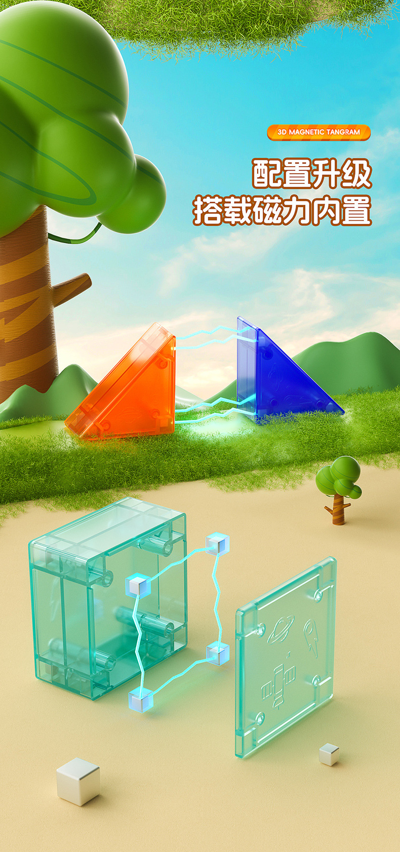 Qiyi 자기 Tangram 3D 입체 퍼즐 사고 훈련 어린이 조기 교육 조립 자기 3D Tangram 장난감스토어 가기