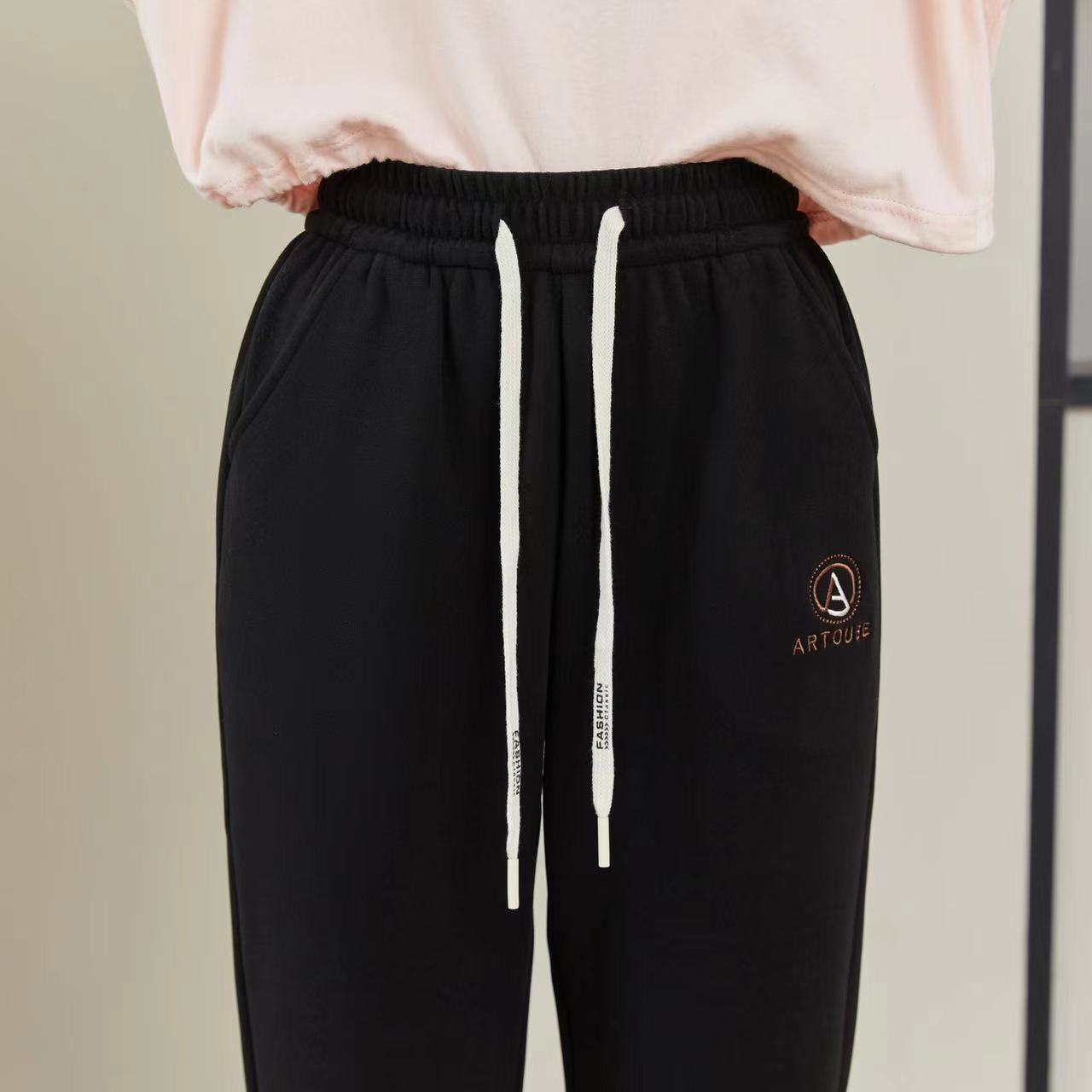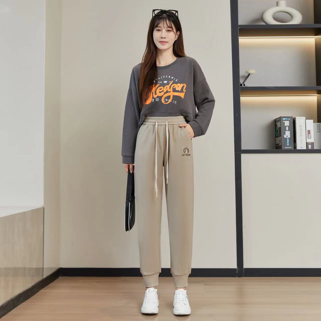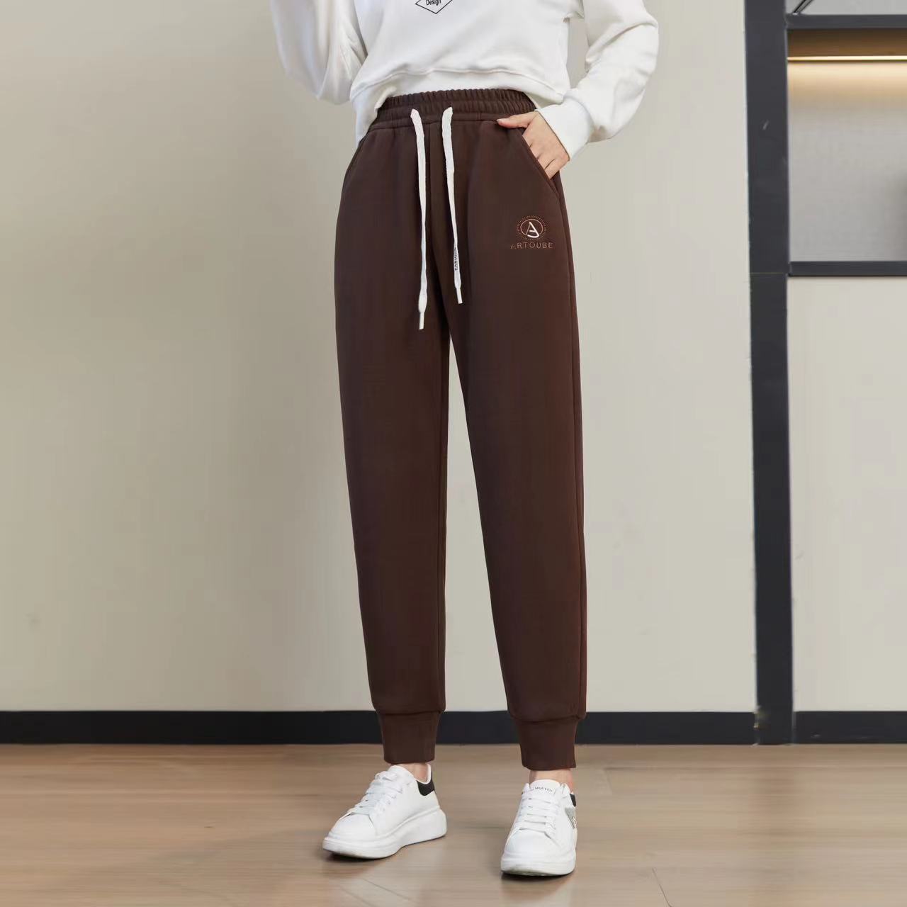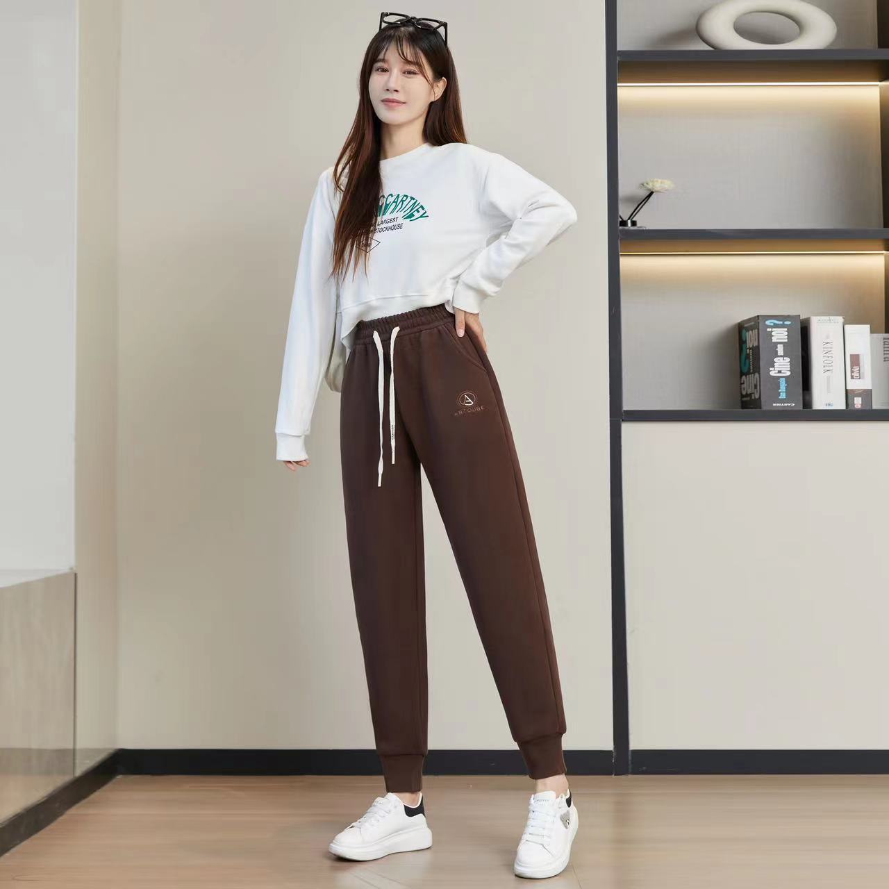 가을과 겨울 기모 두꺼운 방풍 바지 하이 웨이스트 나노 방풍 바지 캐주얼 따뜻한 바지 스포츠 바지 발목 바지 겉옷