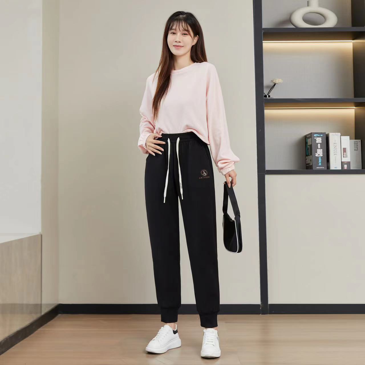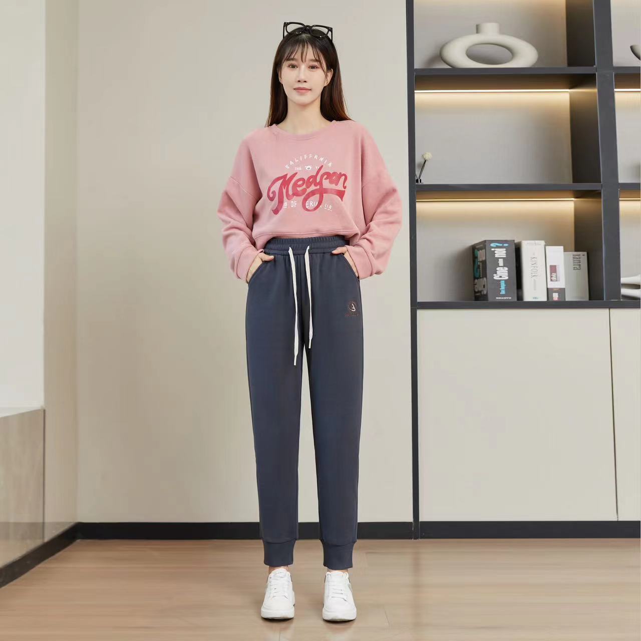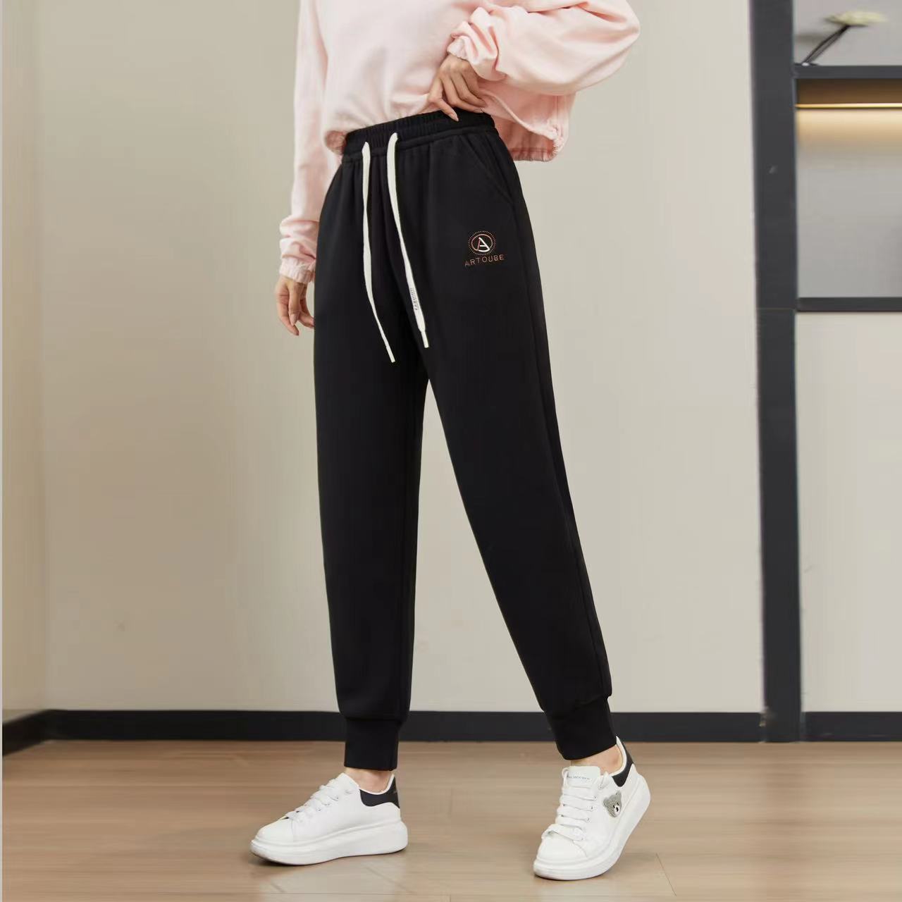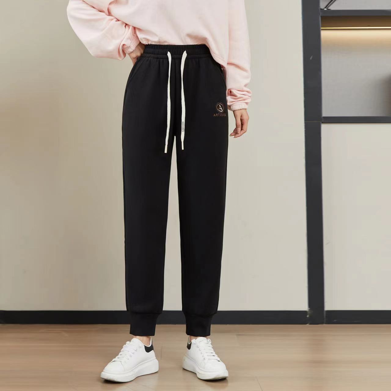 가을과 겨울 기모 두꺼운 방풍 바지 하이 웨이스트 나노 방풍 바지 캐주얼 따뜻한 바지 스포츠 바지 발목 바지 겉옷