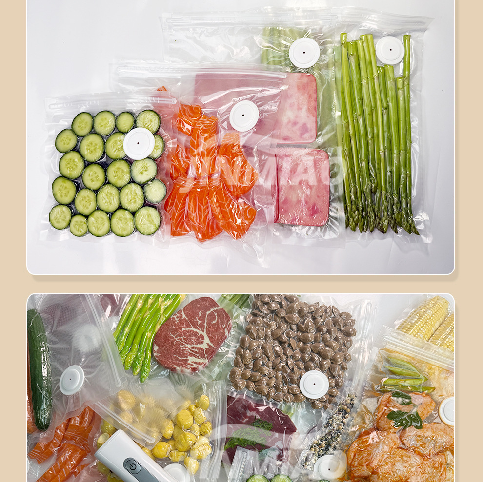 식품 등급 진공 질감 가방 두꺼운 조리 식품 밀봉 양각 신선 유지 가정용 상업용 흰색 플라스틱 공기 밸브 압축 가방