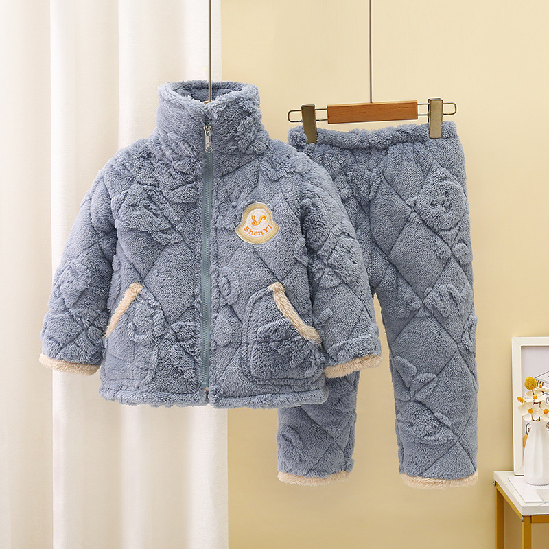 어린이 플란넬 잠옷 겨울 면 두꺼운 아기 세트 소녀 잠옷 산호 양털 소년 가정 옷스토어 가기