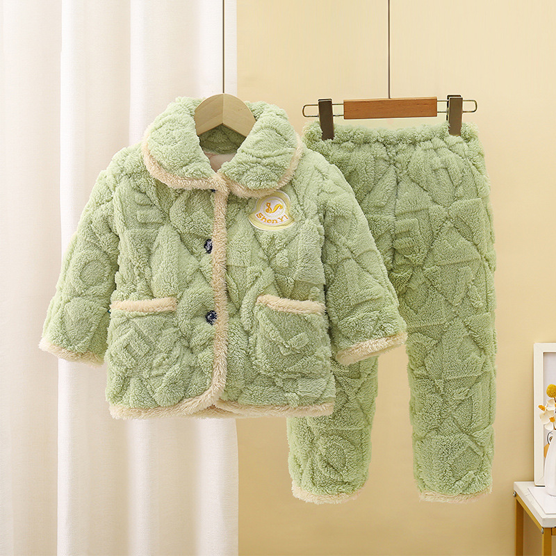 어린이 플란넬 잠옷 겨울 면 두꺼운 아기 세트 소녀 잠옷 산호 양털 소년 가정 옷