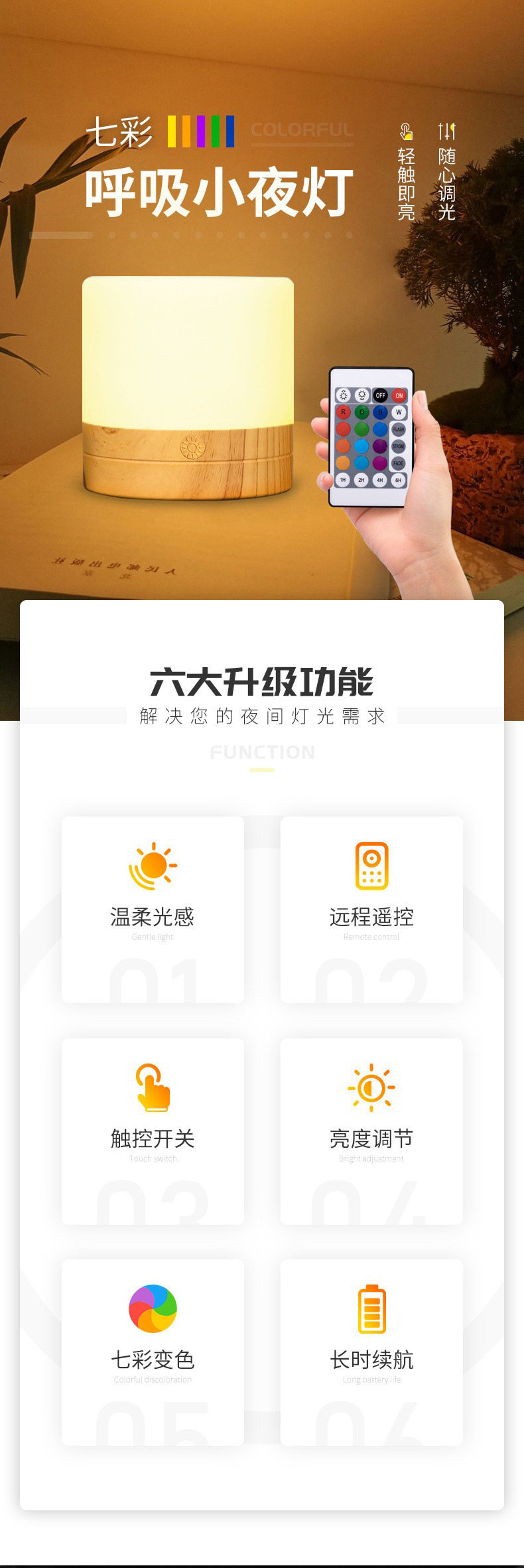 맞춤형 크로스 보더 선호 스마트 충전 다채로운 분위기 조명 산모 및 유아 눈 보호 야외 캠핑 다채로운 야간 조명스토어 가기