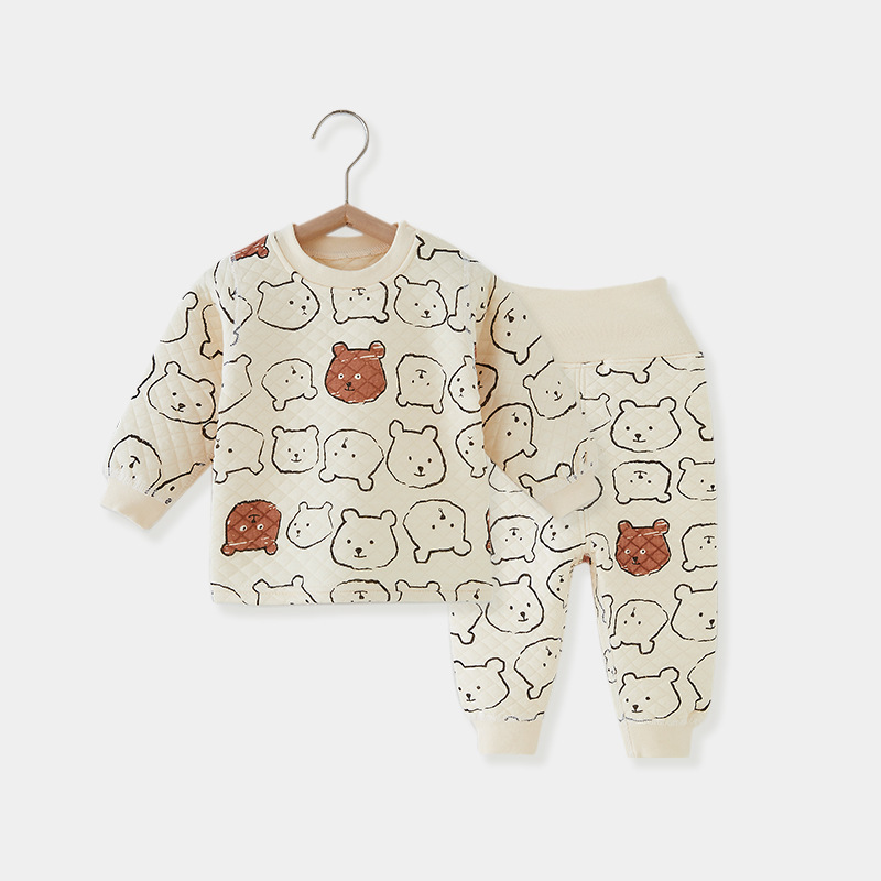 아기 속옷 세트 아기 하이 웨이스트 배꼽 보호 가을 옷 가을 바지 어린이 퀼트 따뜻한 옷 잠옷 두꺼운 가정 옷