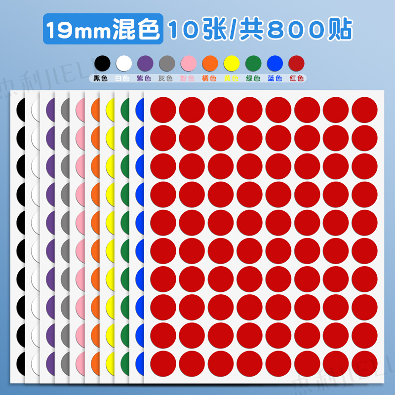 • 19mm 혼합 색상/10 색 총 800 스티커