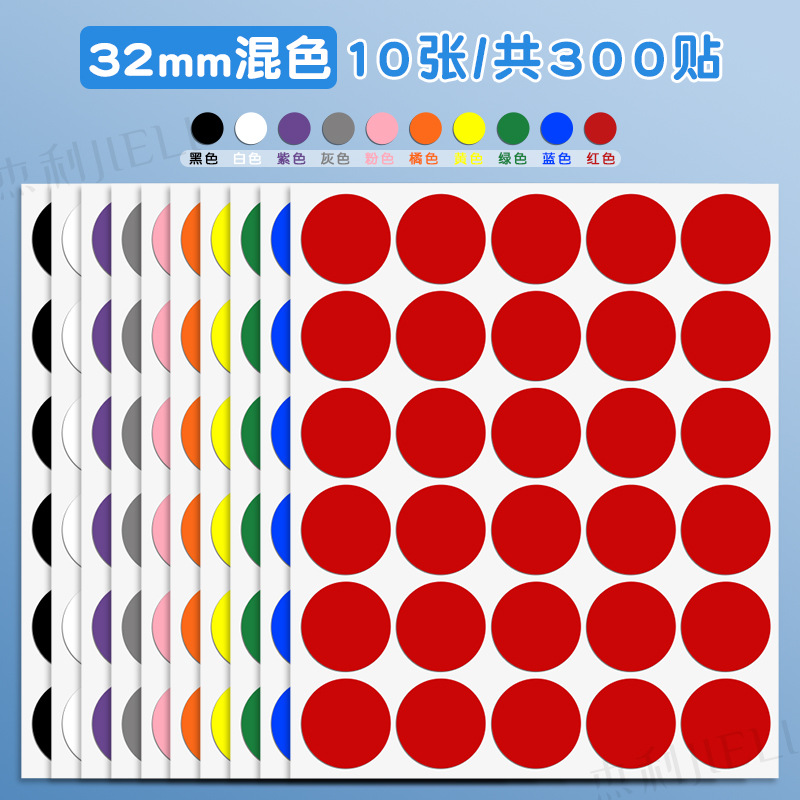 • 32mm 혼합 색상/10 색 총 300 스티커