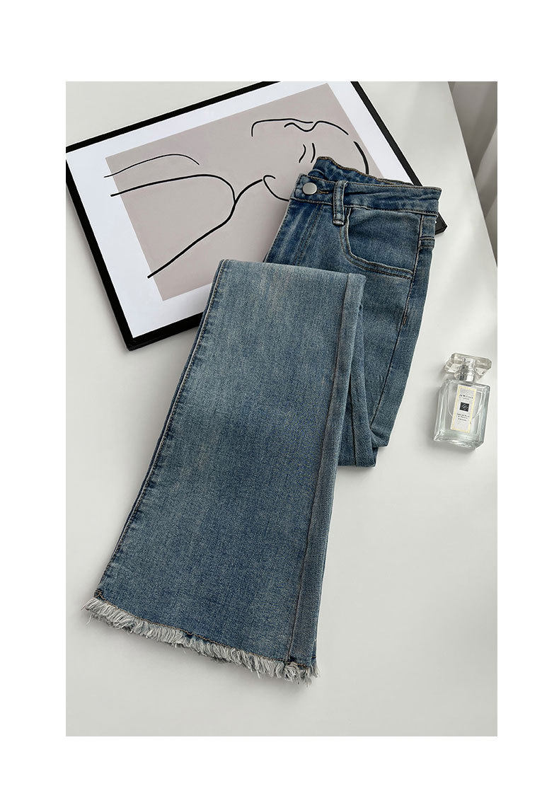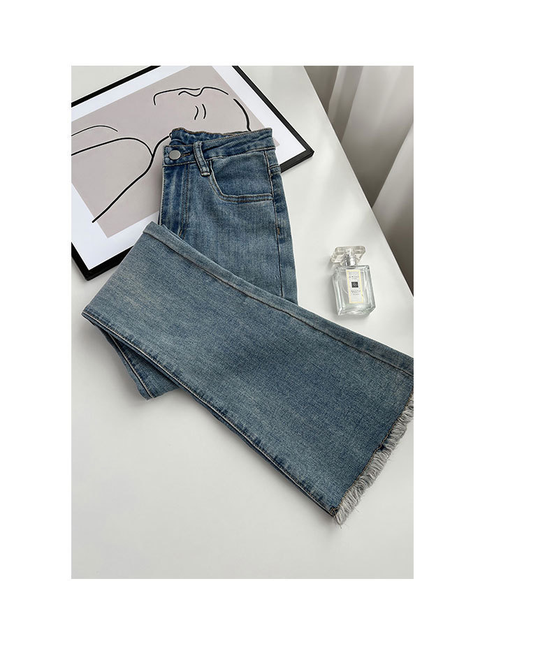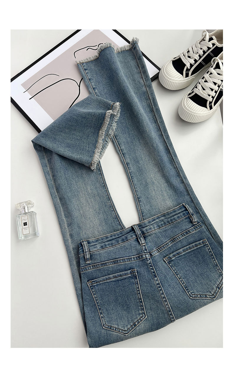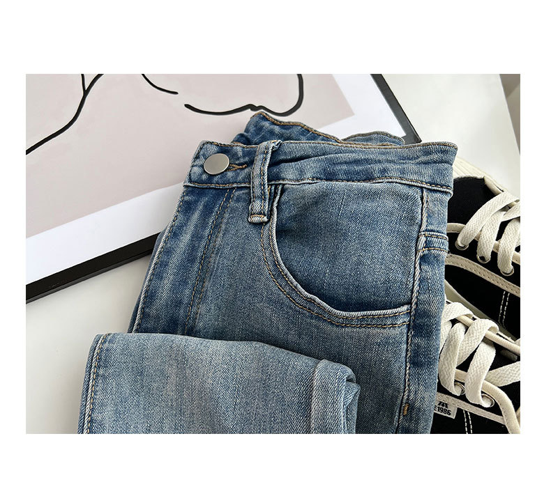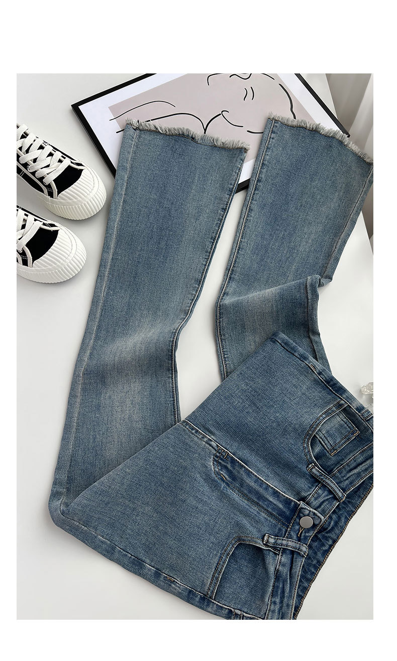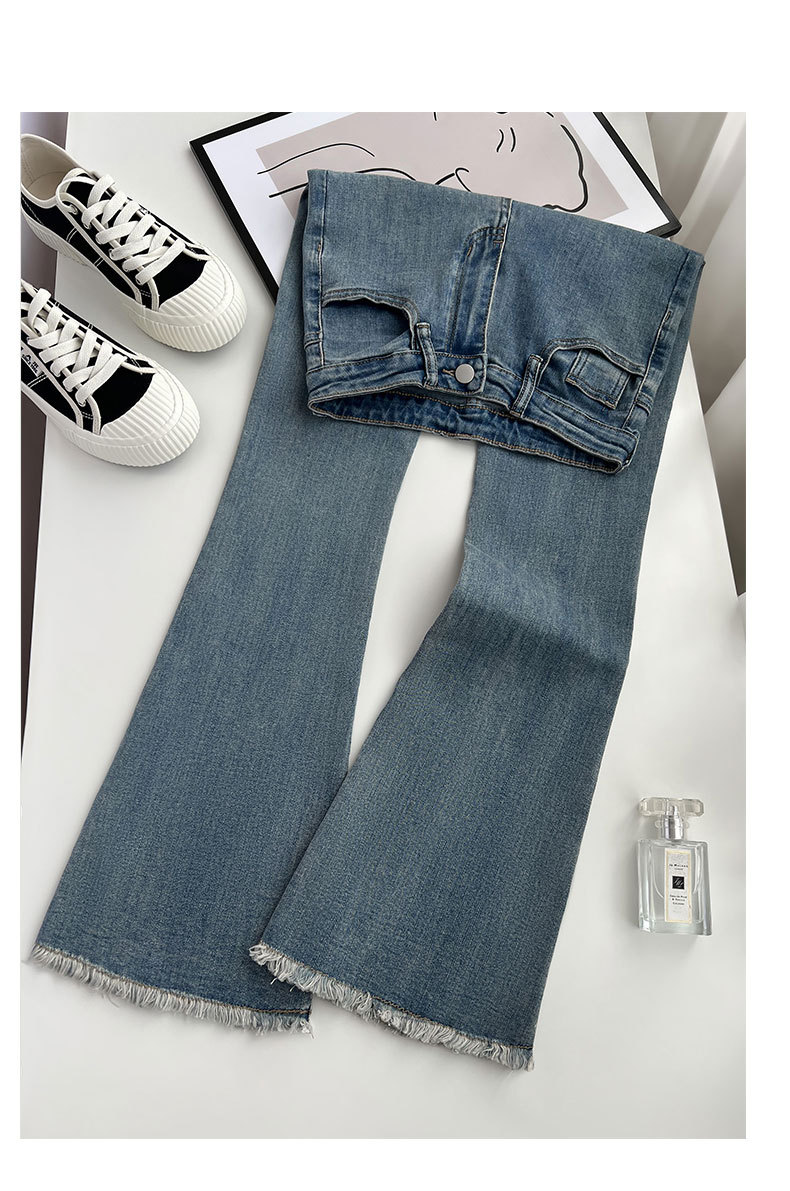 빈티지 마이크로 라르 진 여성용 아메리칸 스타일 하이 웨이스트 탄성 슬림 핏 스트레이트 말굽 바지스토어 가기