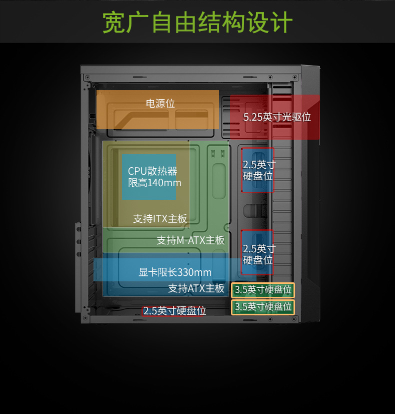Big Buffalo Ruixiang 3.0 데스크탑 컴퓨터 표준 섀시 비즈니스 오피스 간단한 ATX 섀시 [단일 섀시]스토어 가기