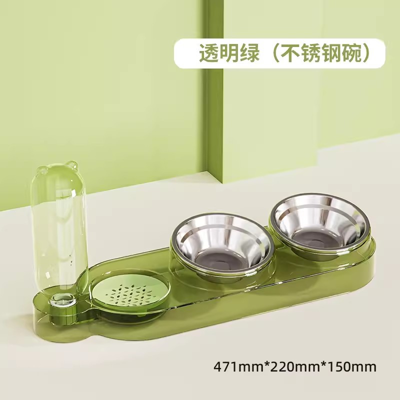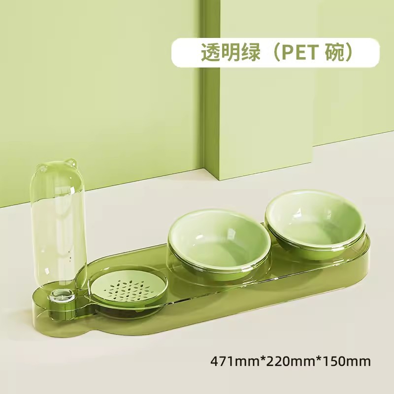 • 고양이 귀 3 그릇-플라스틱 (투명 녹색) 개와 고양이
