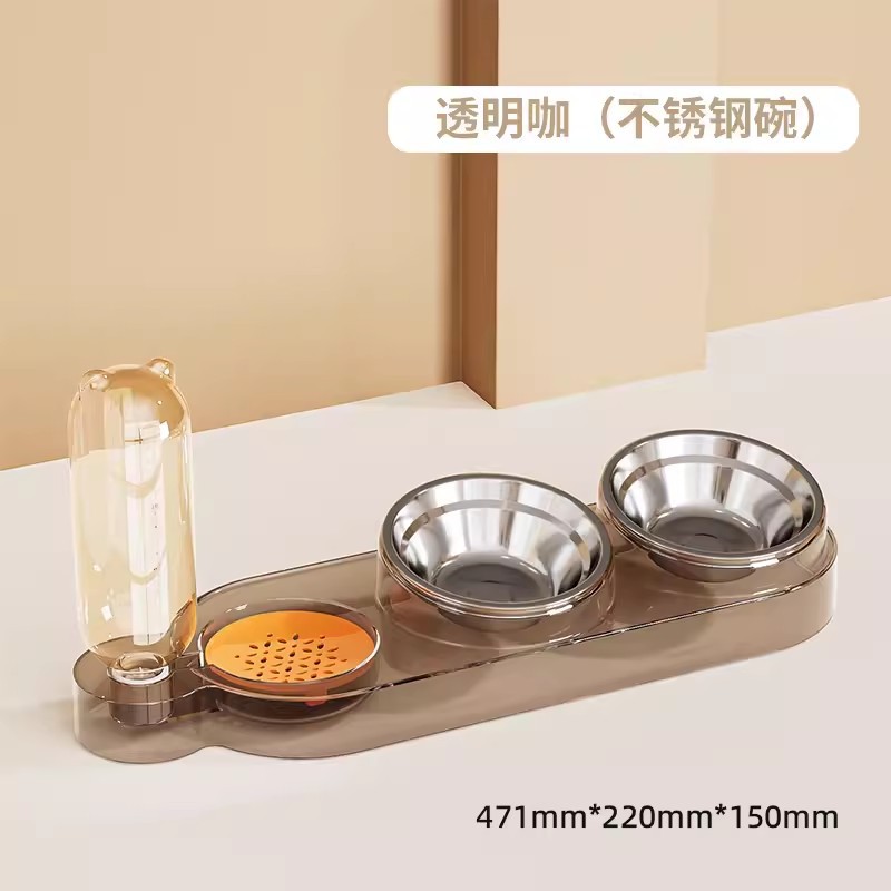• 고양이 귀 3 그릇-스테인레스 스틸 (투명 커피) 개 고양이 패스