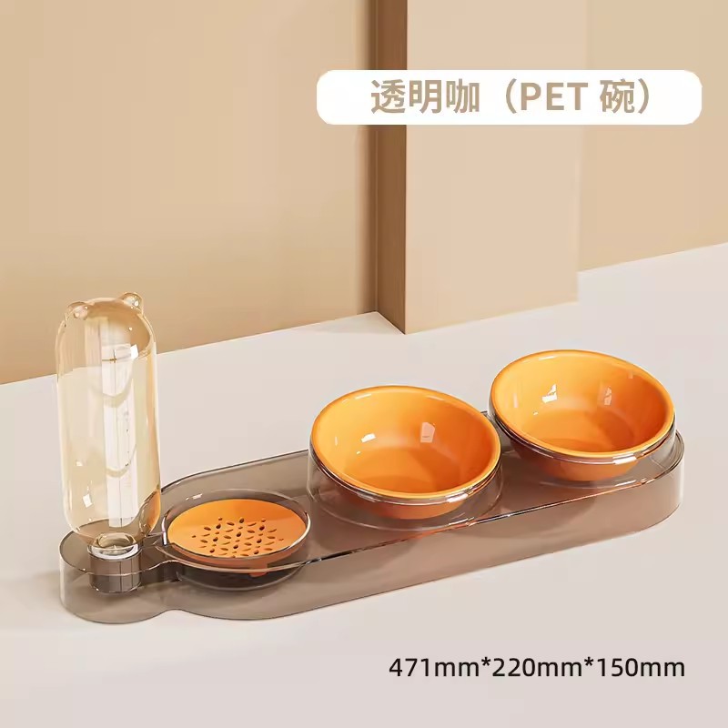 • 고양이 귀 3 그릇-개와 고양이를위한 플라스틱 (투명 커피)