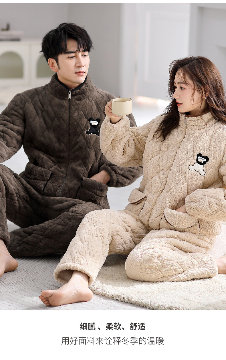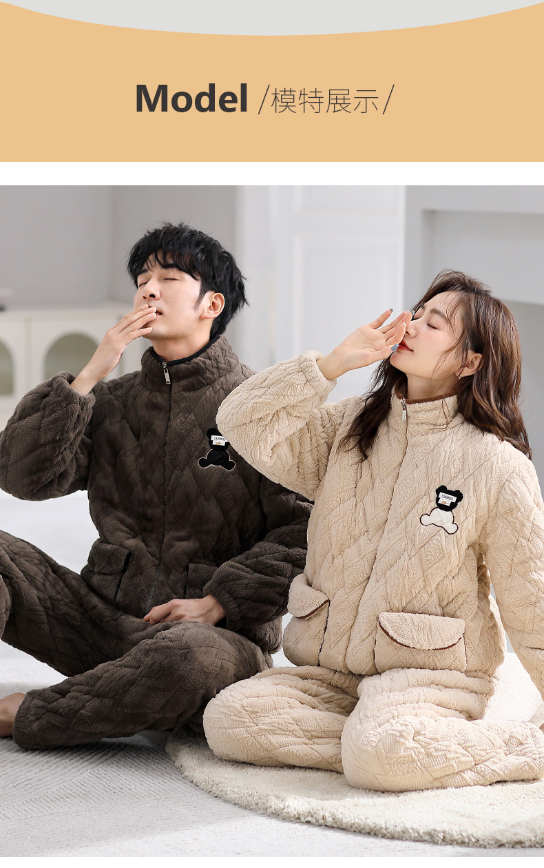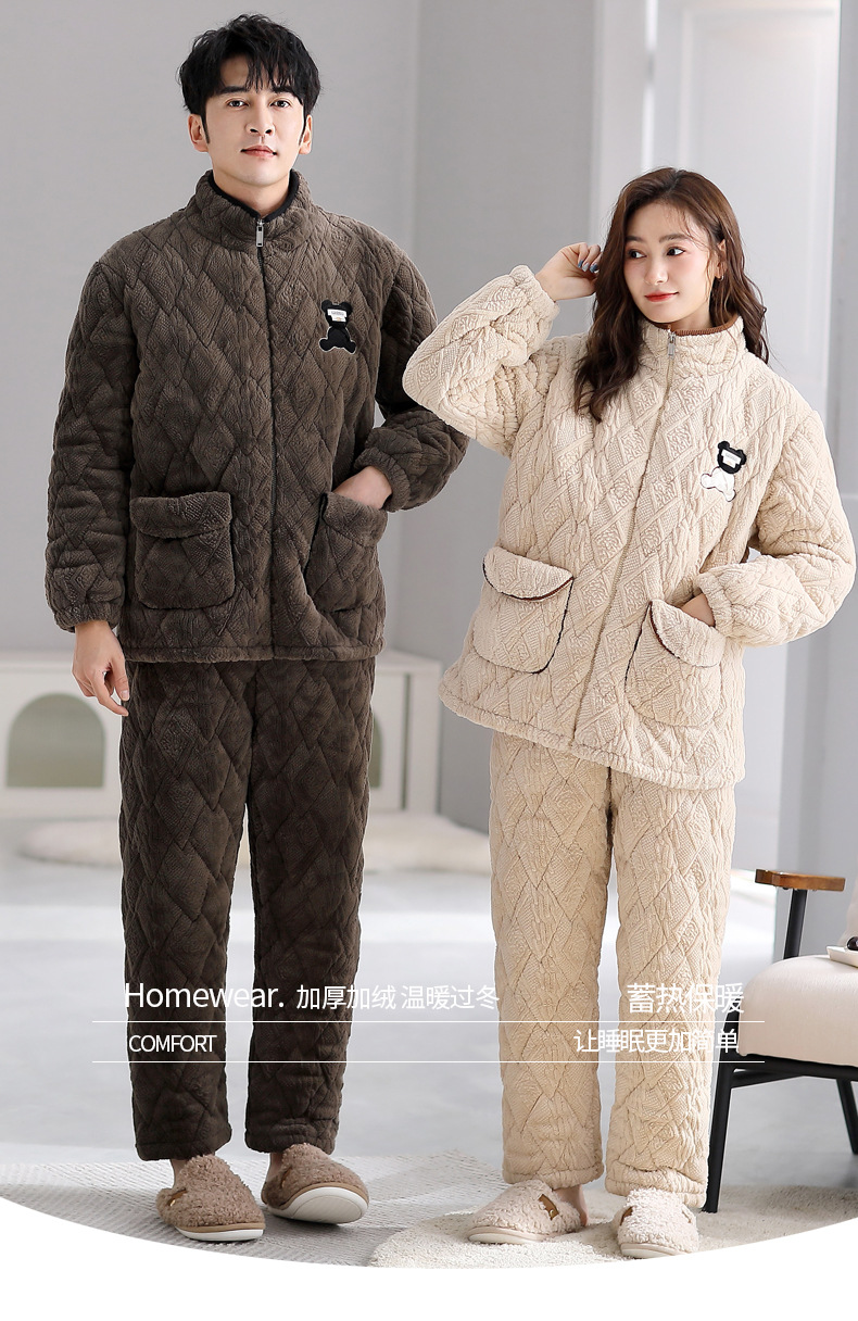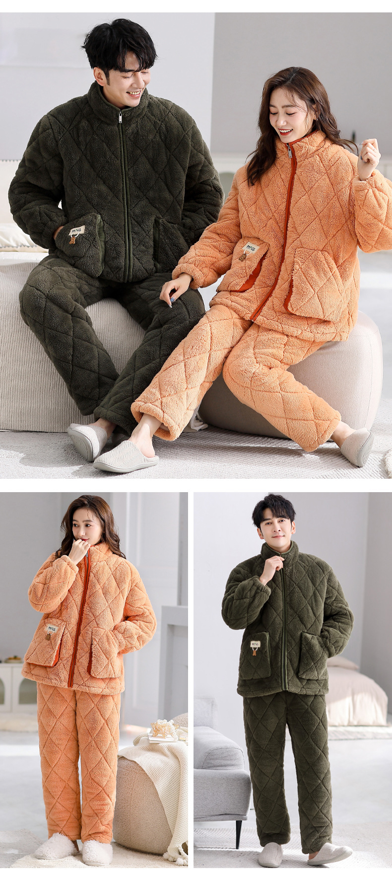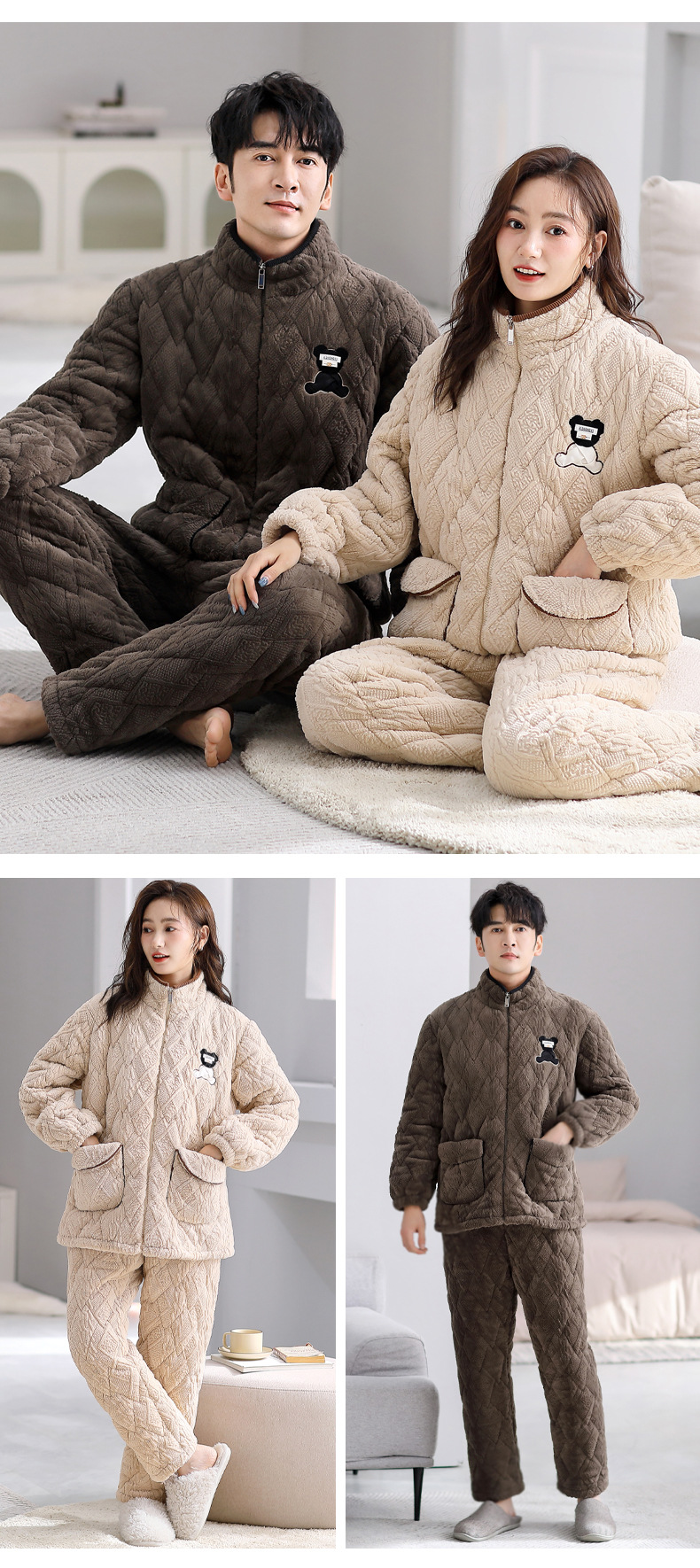 Longshijia 산호 양털 커플 파자마 여성 겨울 3 층 퀼트 기모 남성용 가을과 겨울 홈웨어 세트 두껍게스토어 가기