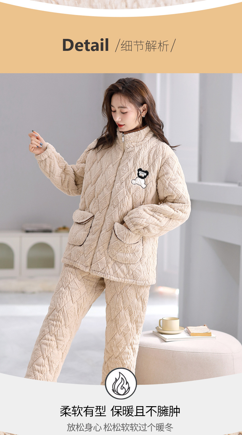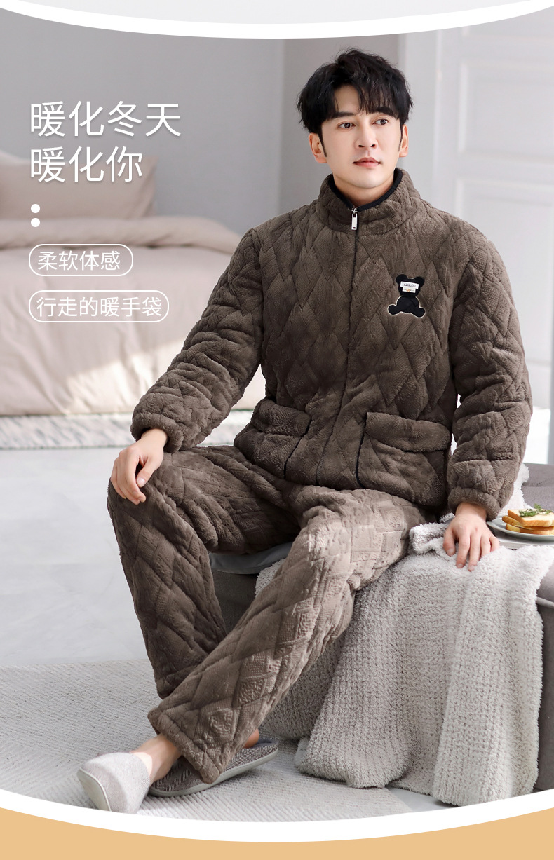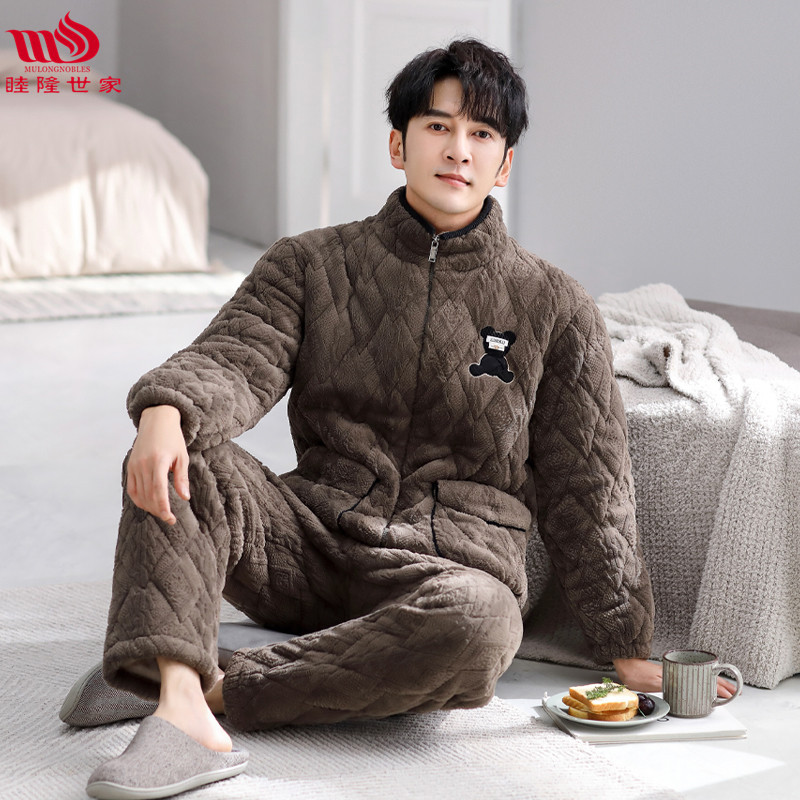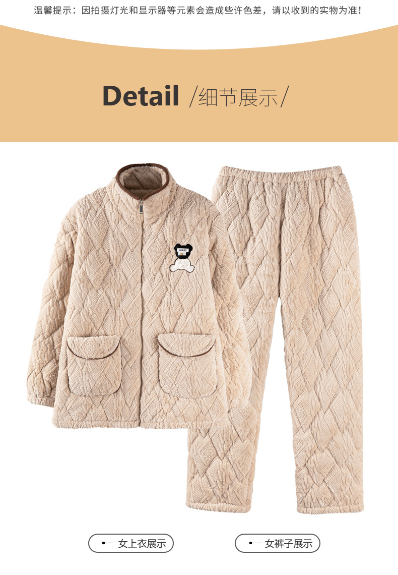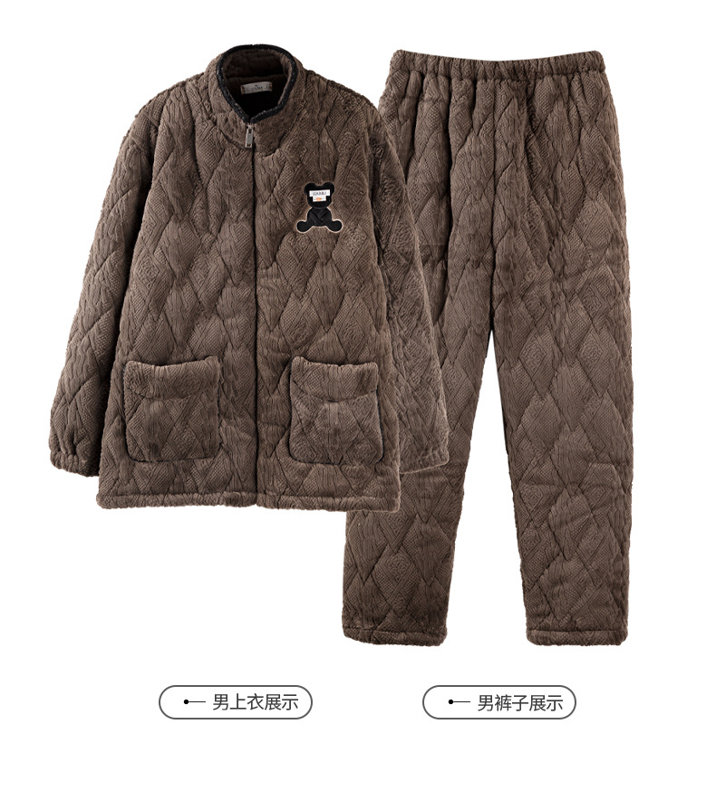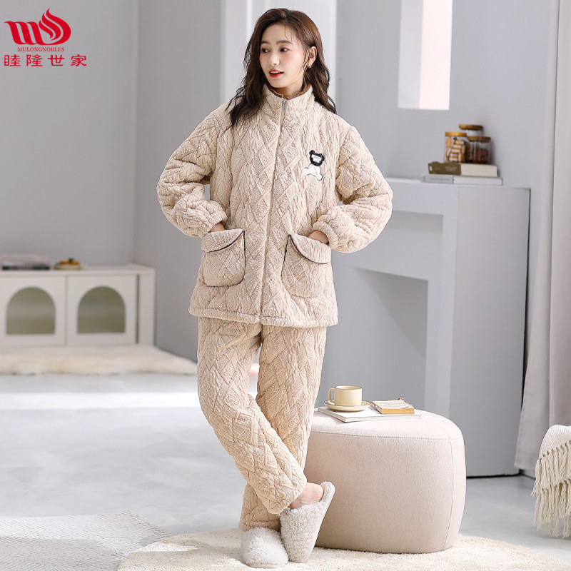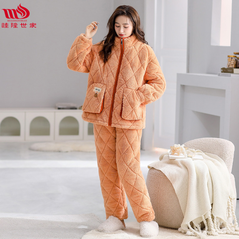 Longshijia 산호 양털 커플 파자마 여성 겨울 3 층 퀼트 기모 남성용 가을과 겨울 홈웨어 세트 두껍게스토어 가기