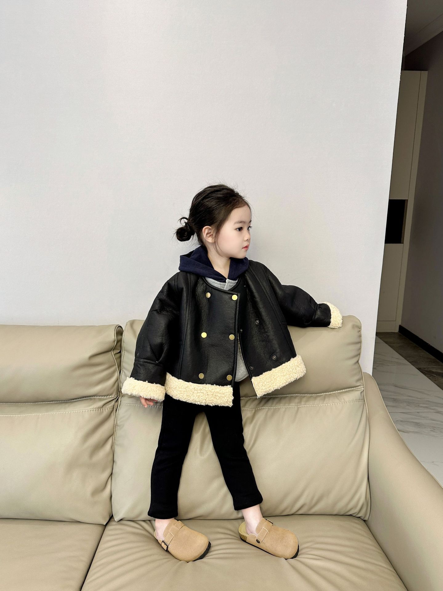 여아 기모 펜슬 팬츠 2023 가을 겨울 새 어린이 2-7 세 슬림핏 팬츠 어린이 한국 바지스토어 가기