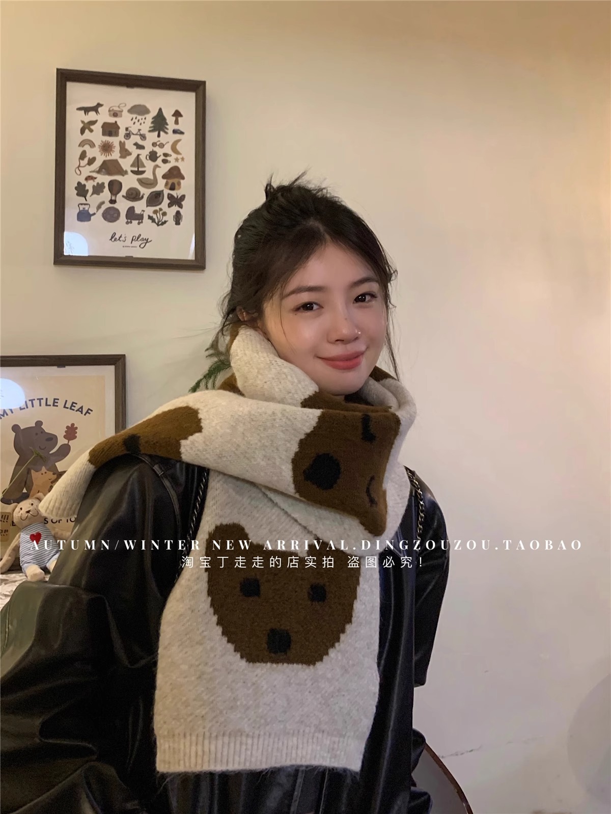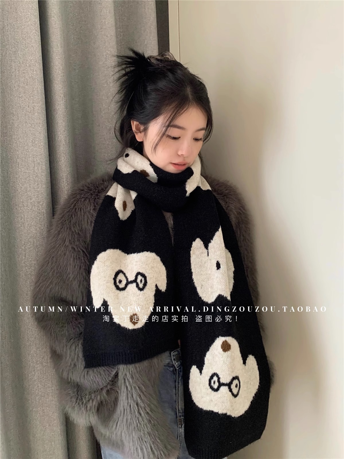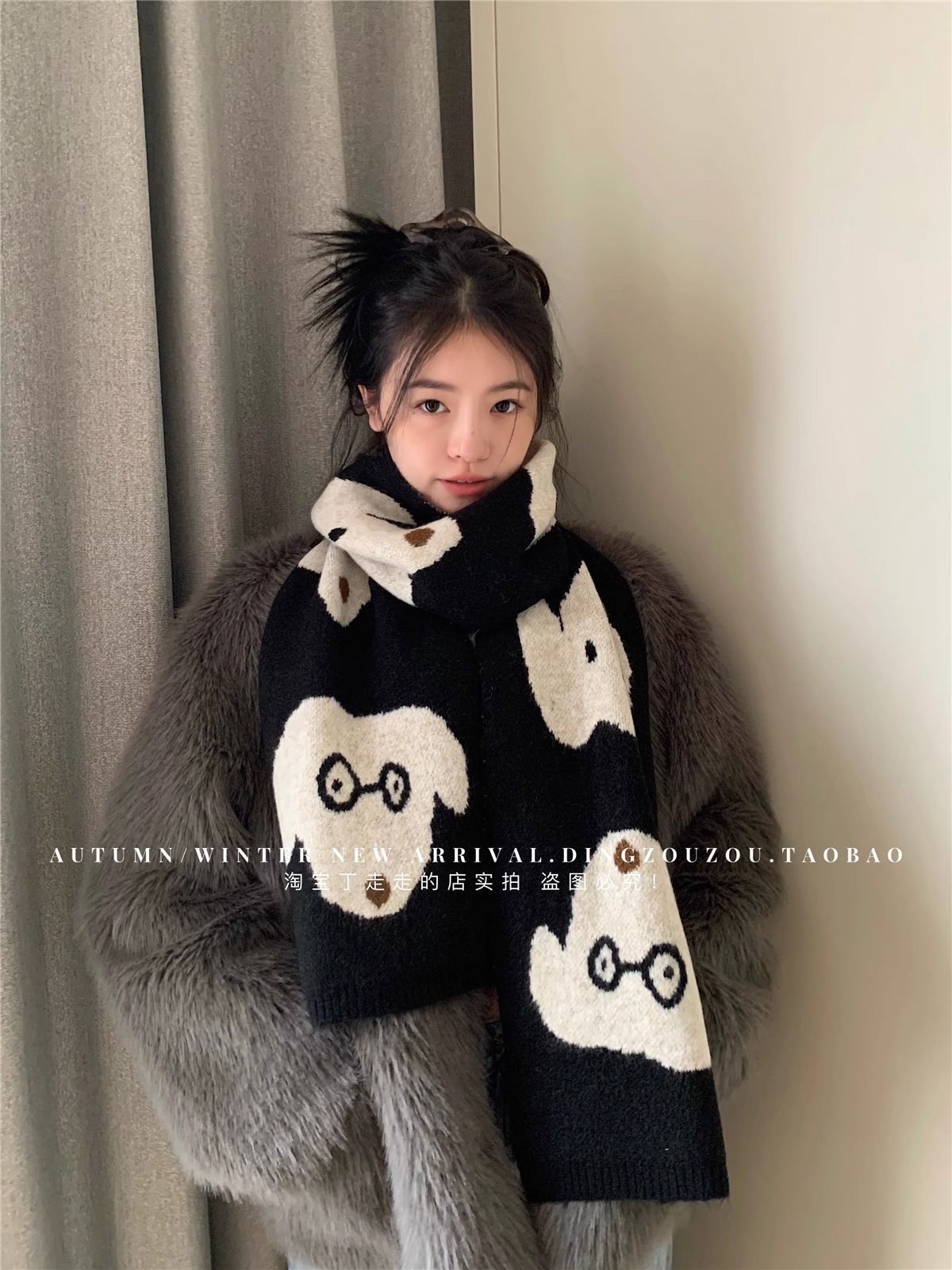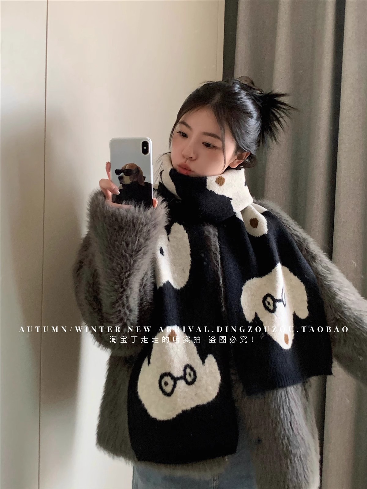 2023 겨울 두꺼운 스카프 학생 일본어 귀여운 강아지 짧은 니트 스카프 모든 일치 방한 따뜻한 스카프스토어 가기