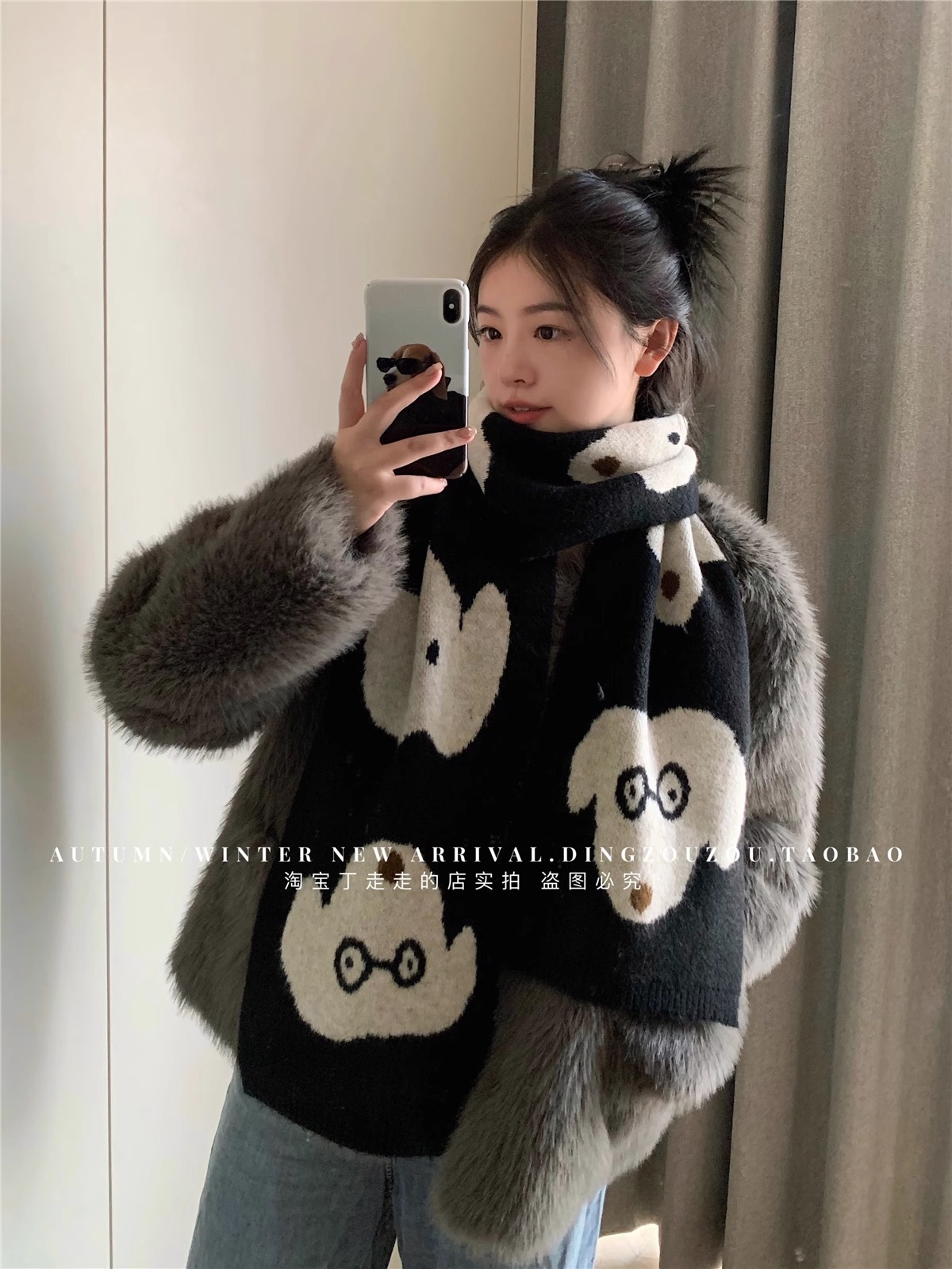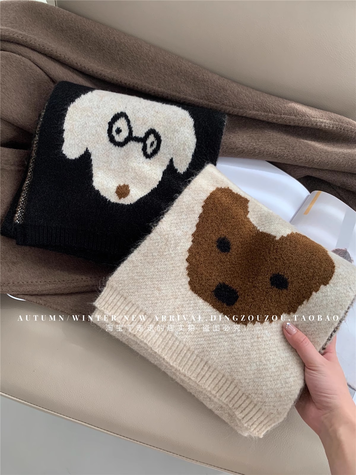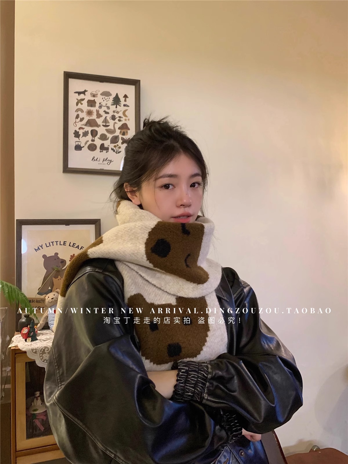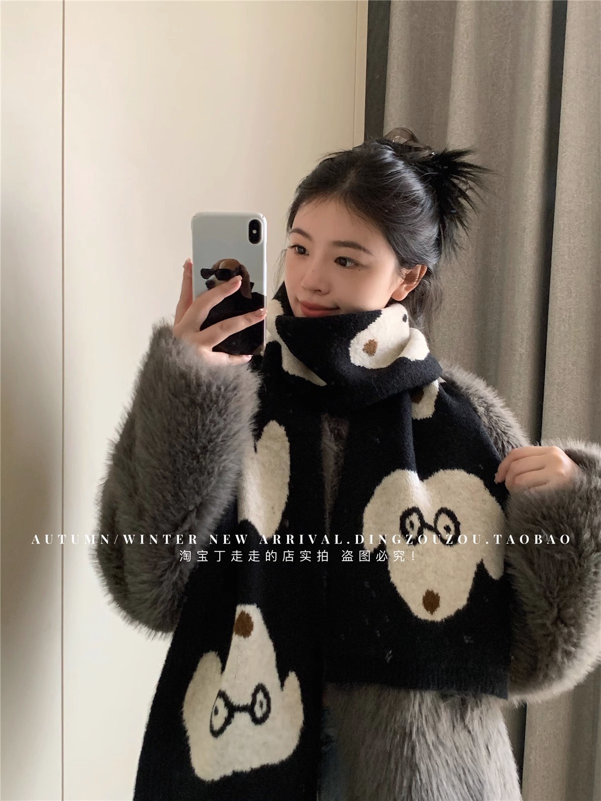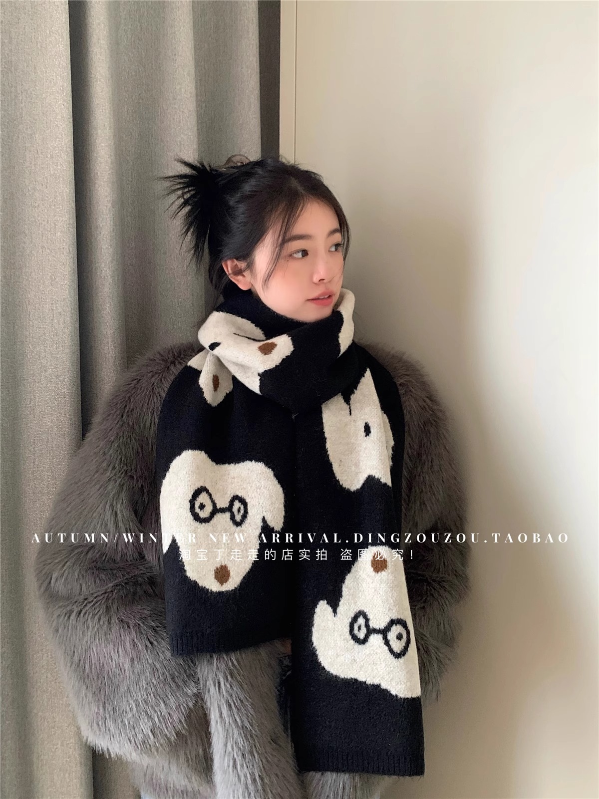 2023 겨울 두꺼운 스카프 학생 일본어 귀여운 강아지 짧은 니트 스카프 모든 일치 방한 따뜻한 스카프스토어 가기