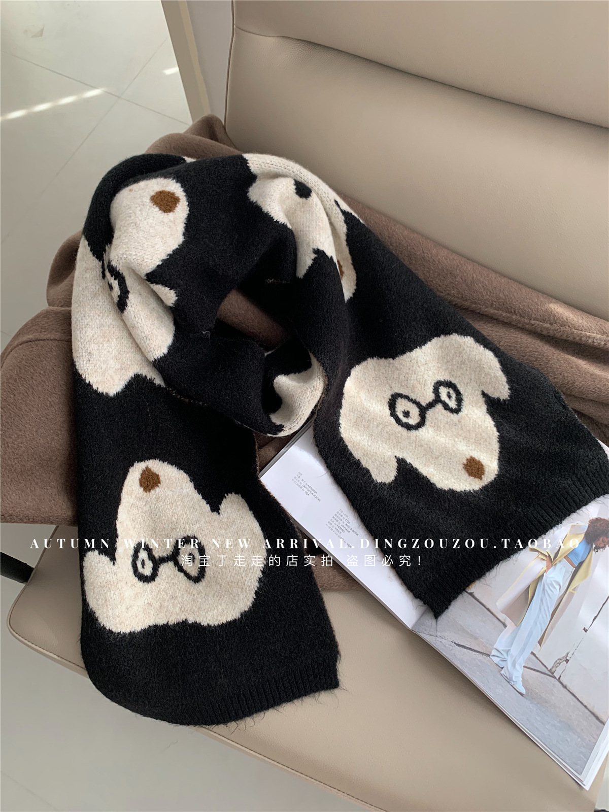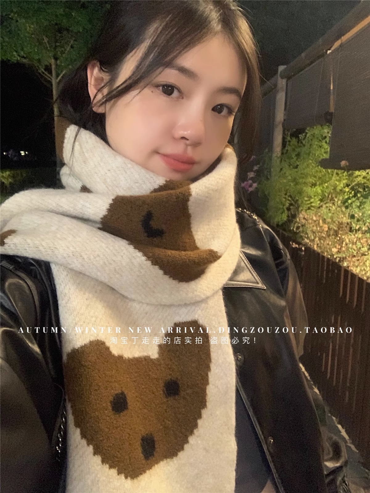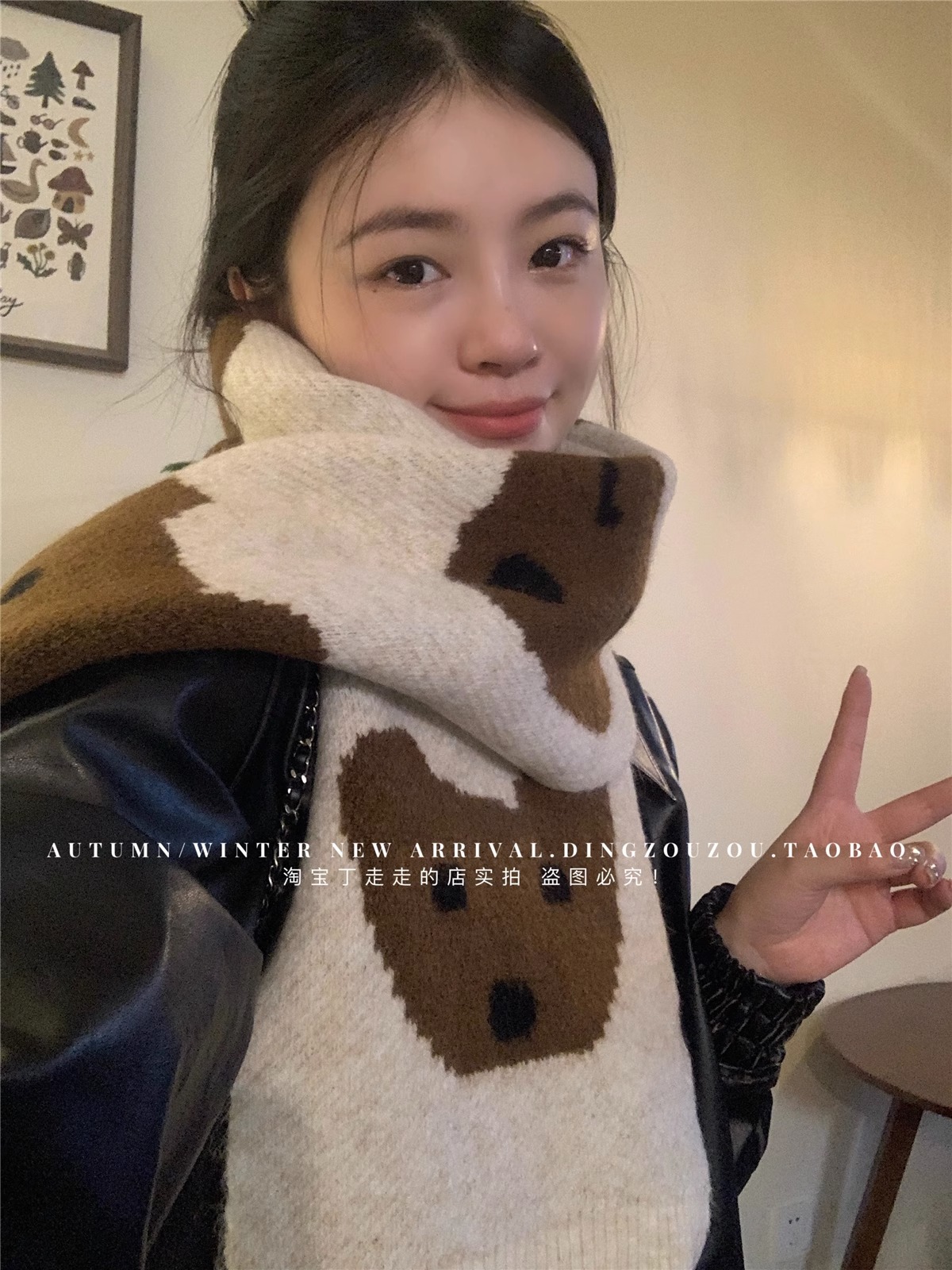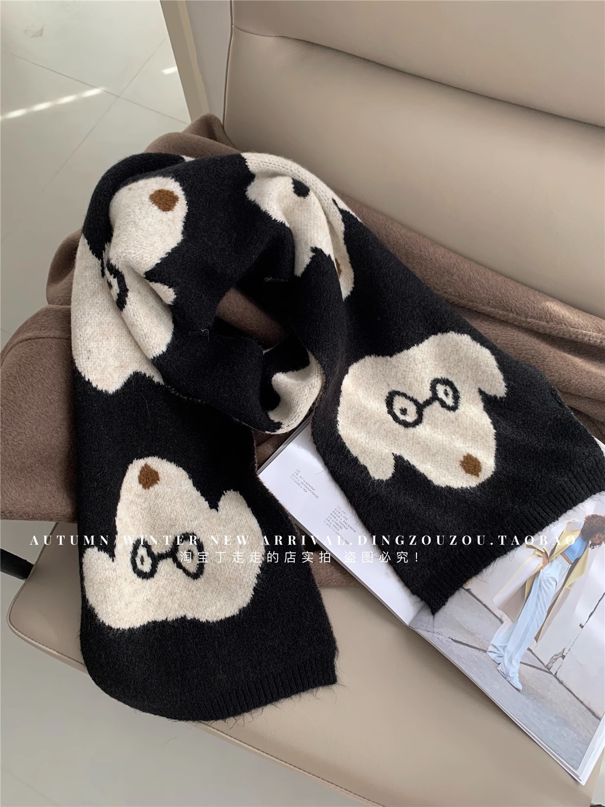2023 겨울 두꺼운 스카프 학생 일본어 귀여운 강아지 짧은 니트 스카프 모든 일치 방한 따뜻한 스카프스토어 가기