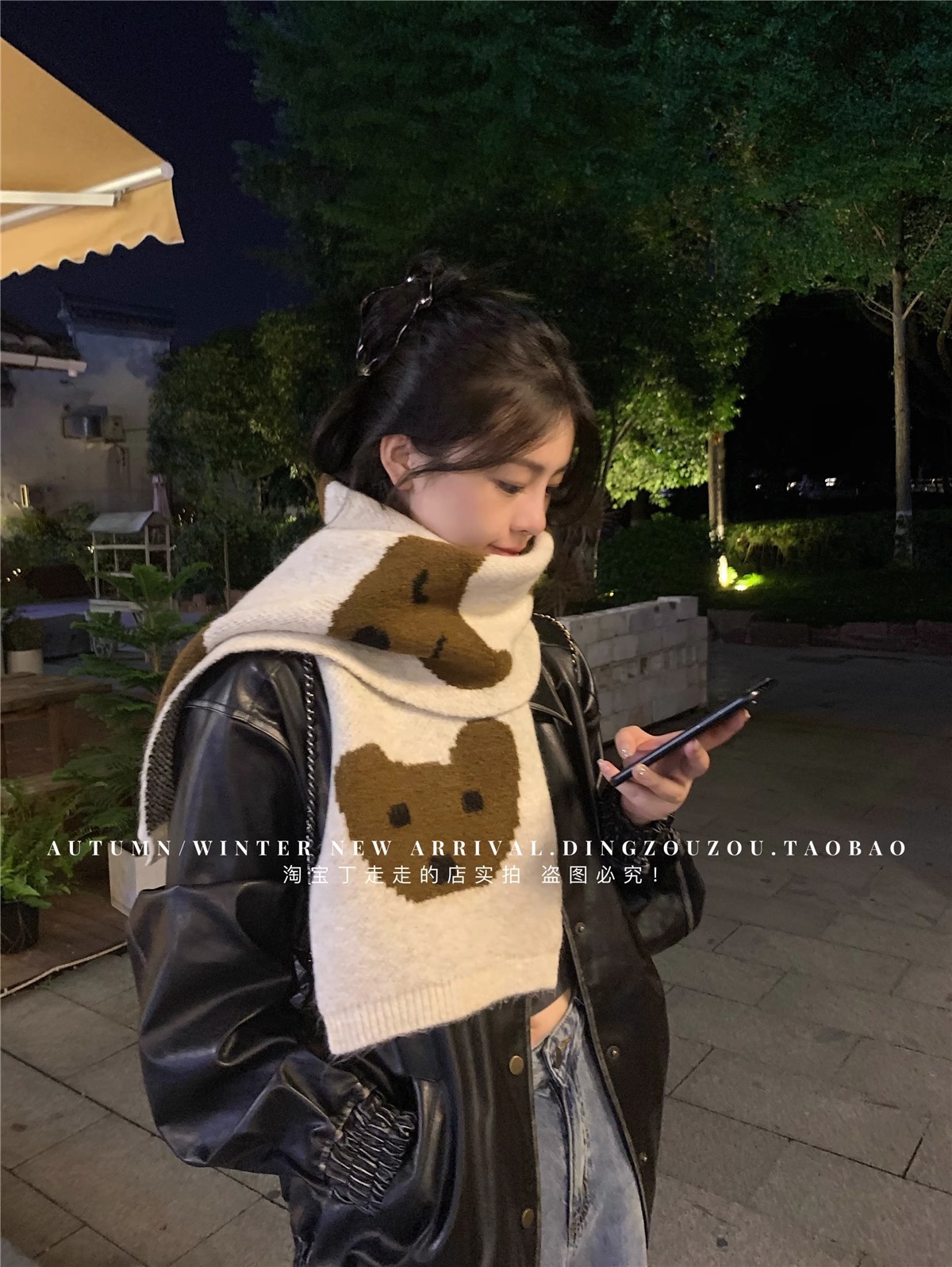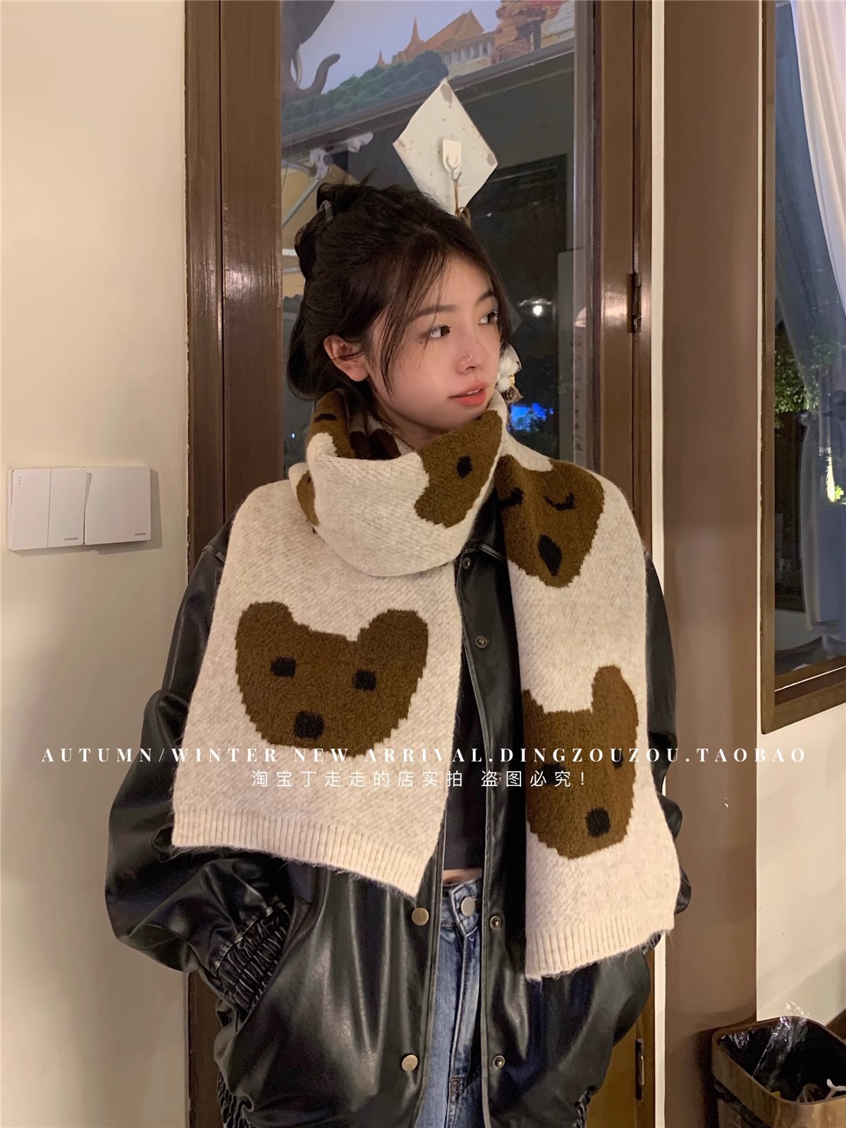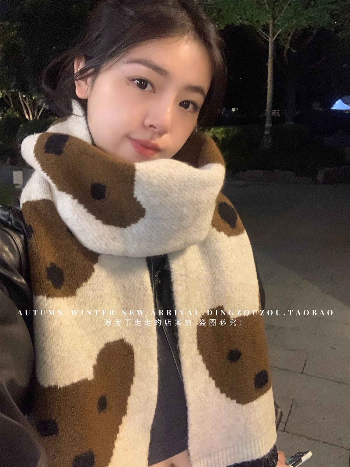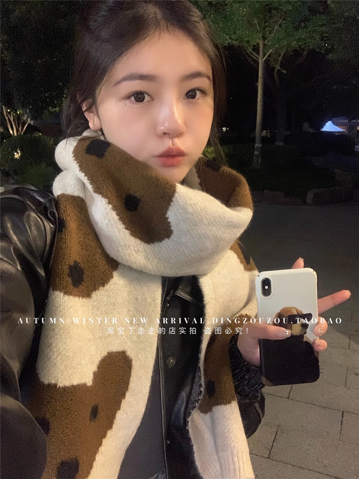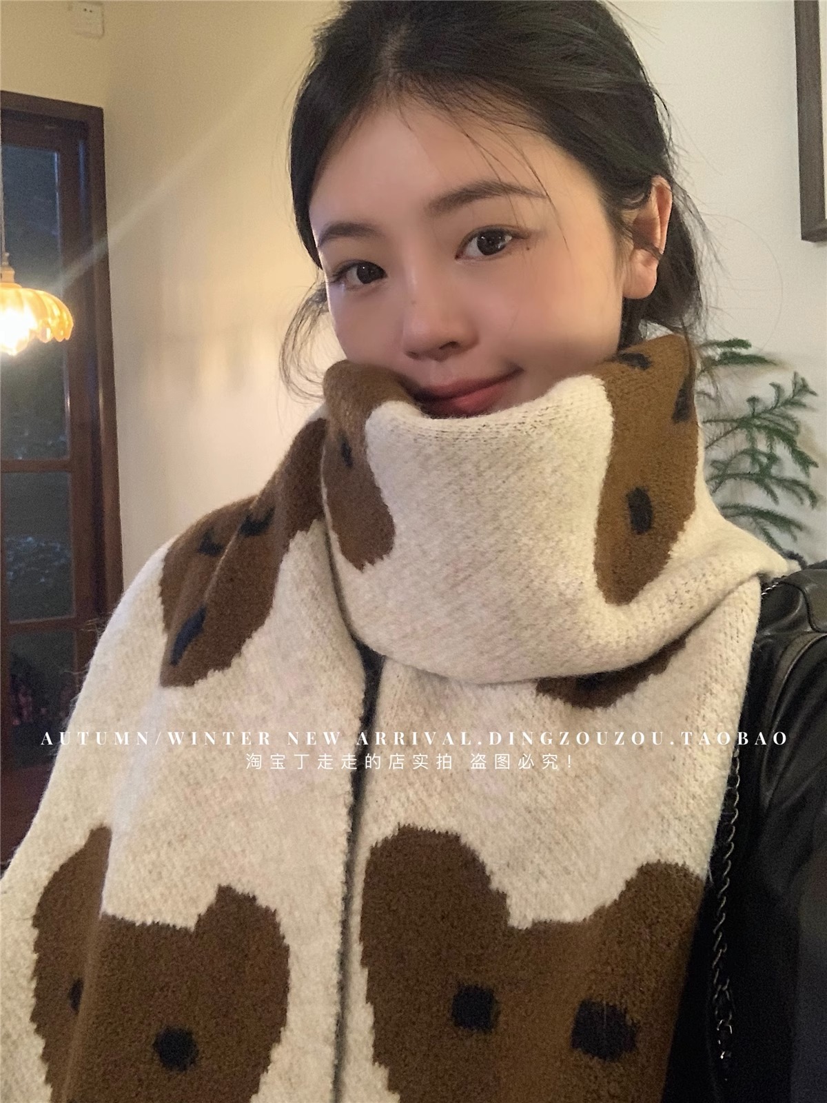 2023 겨울 두꺼운 스카프 학생 일본어 귀여운 강아지 짧은 니트 스카프 모든 일치 방한 따뜻한 스카프스토어 가기