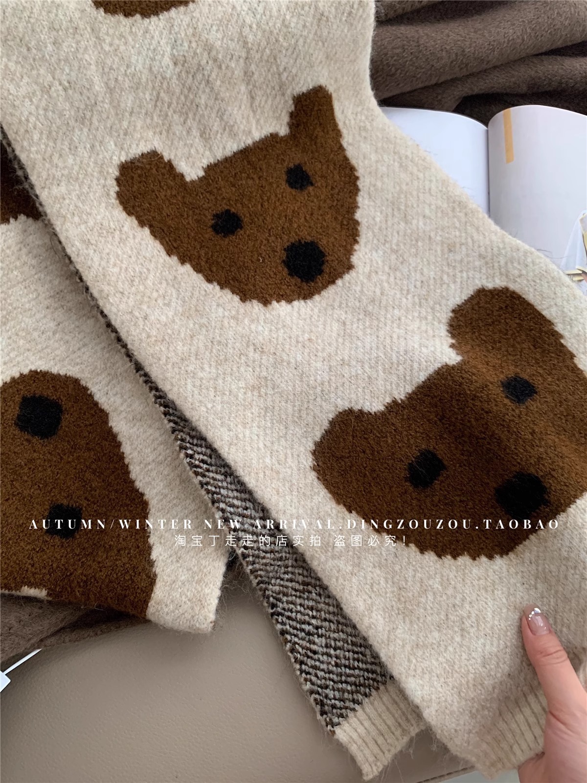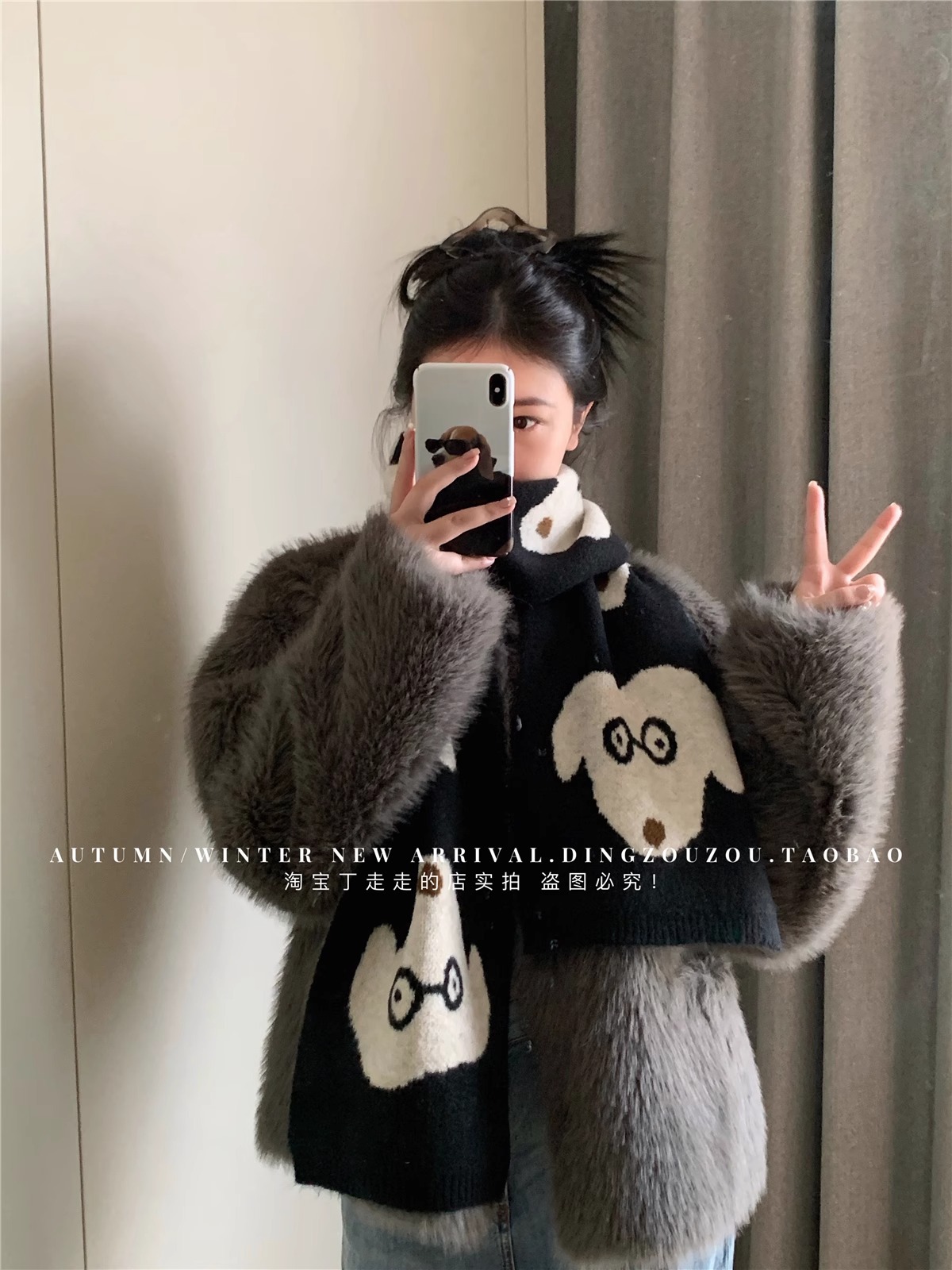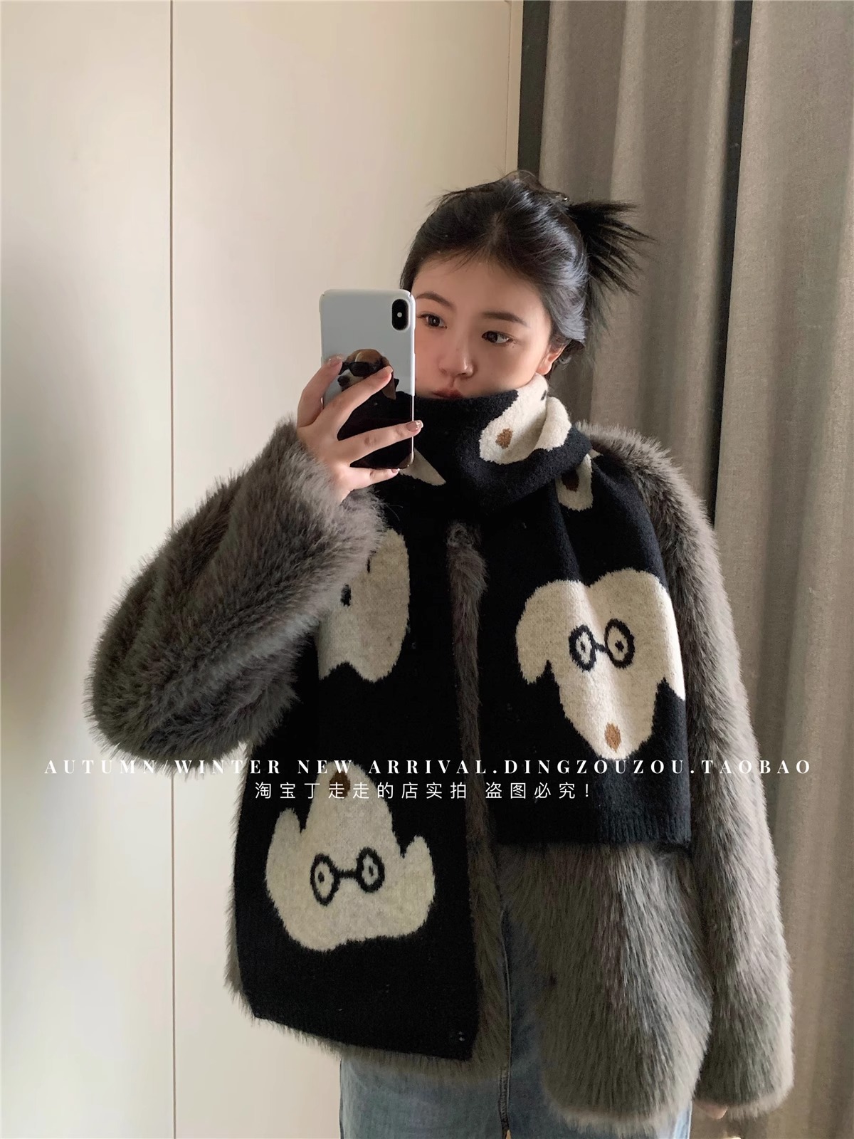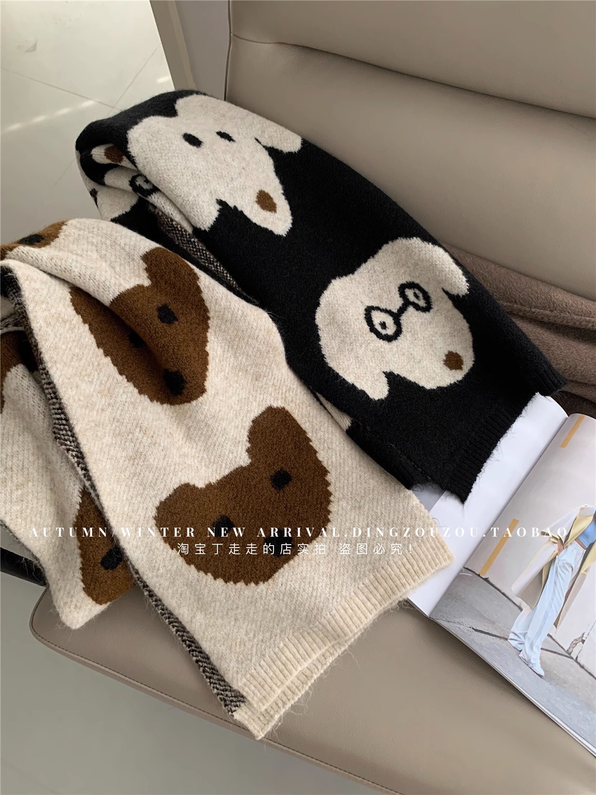 2023 겨울 두꺼운 스카프 학생 일본어 귀여운 강아지 짧은 니트 스카프 모든 일치 방한 따뜻한 스카프스토어 가기